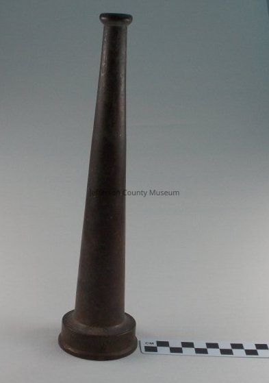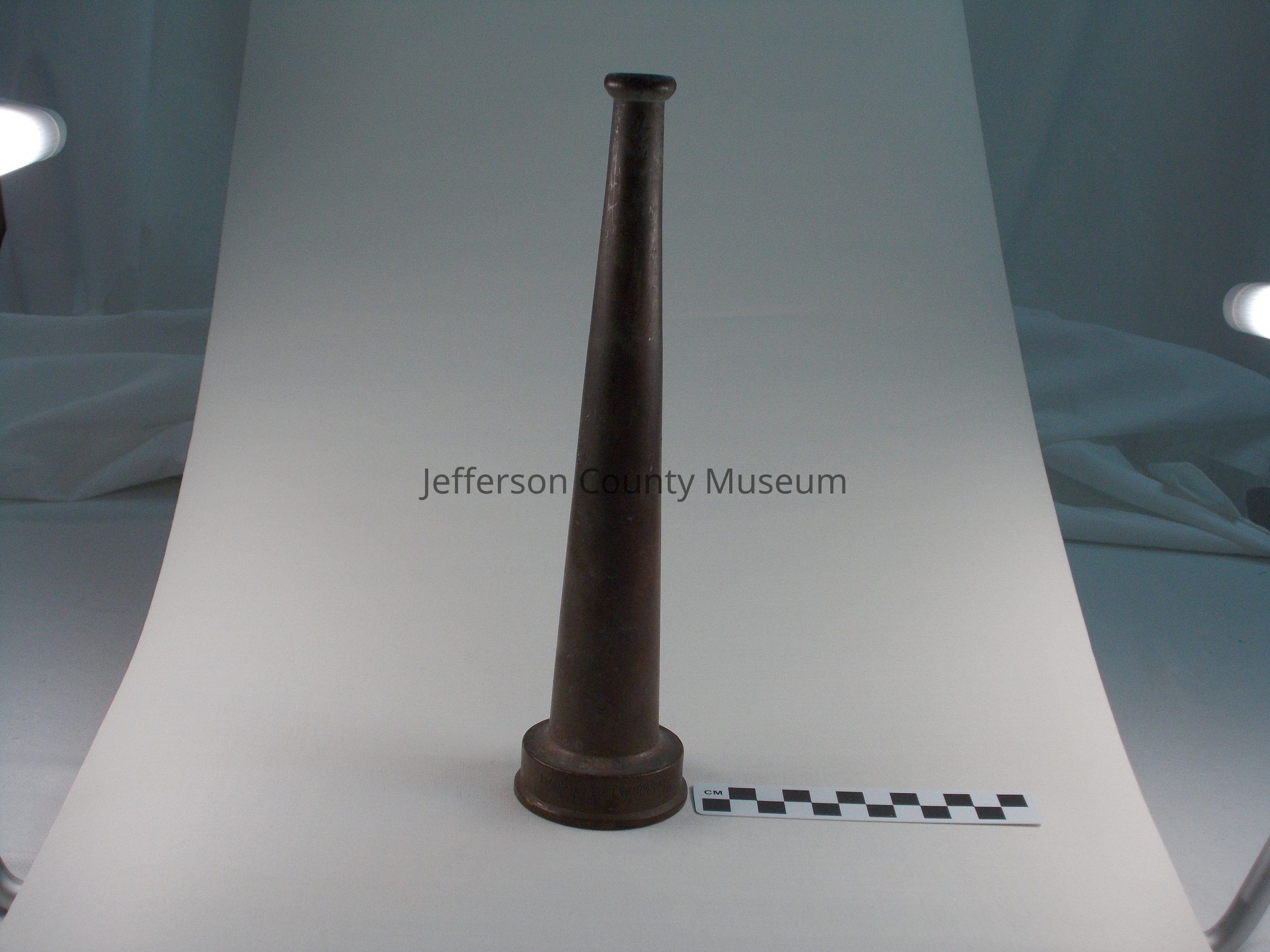 Brass nozzle. Stamped at bottom where it attaches to hose "POWHATAN B&I WORKS RANSON, W.VA. NS".Acquisition
