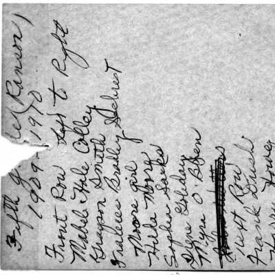 Front row, left to right: Mabel Hale Colley, Grayson Smith, Frances Bradley Sechrist, Moore girl, Hilda Moore, Sophia Sacks, Irene Goliday, Myra O'Brien
