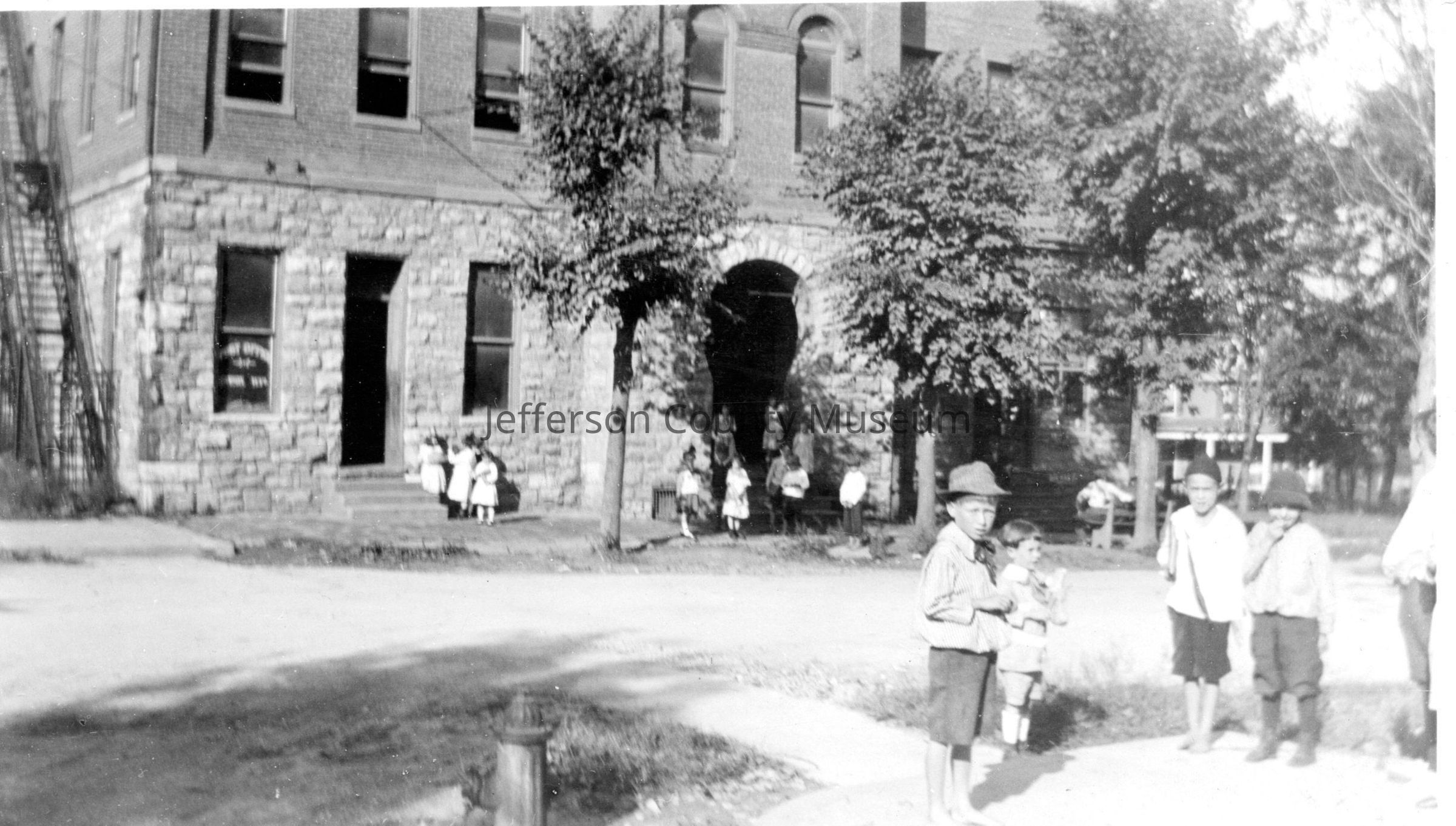 Ranson post office and school children. Photograph of a postcard.Acquisition