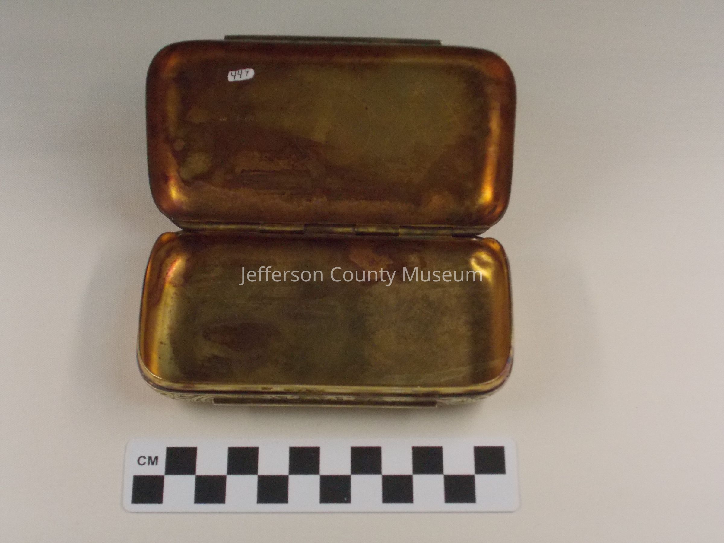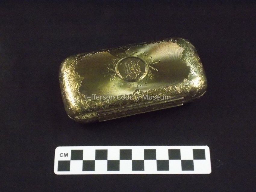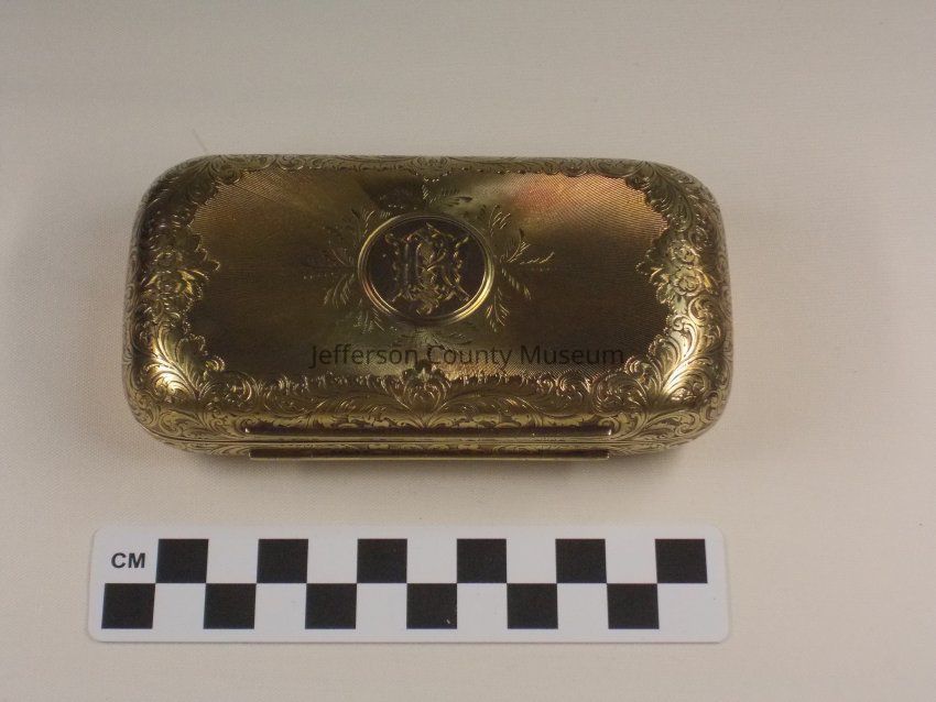 Gold-washed silver soap dish. "HLJ" monogrammed on top. Floral pattern on center bottom. Three maker's marks inside. "HLJ" refers to Harriet Lane Johnston. Part of catalog #440.Acquisition