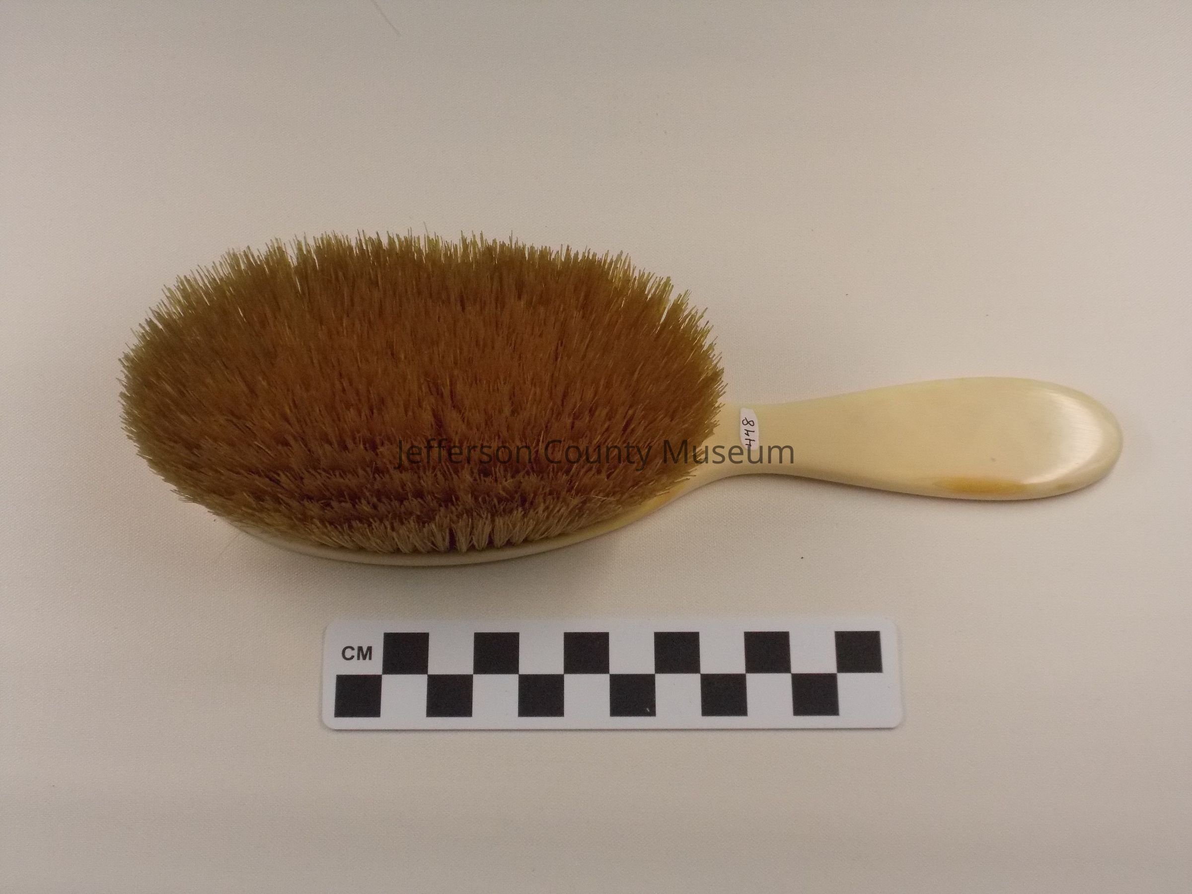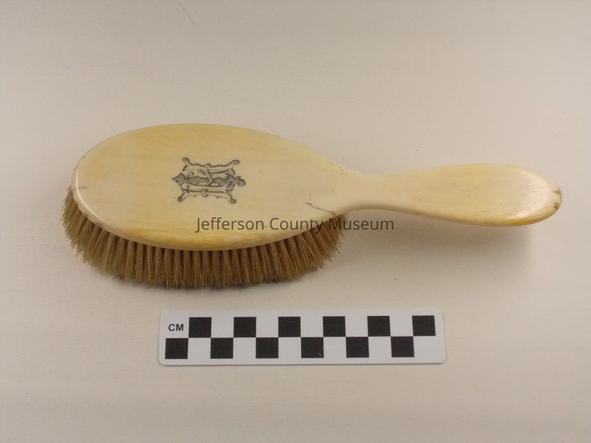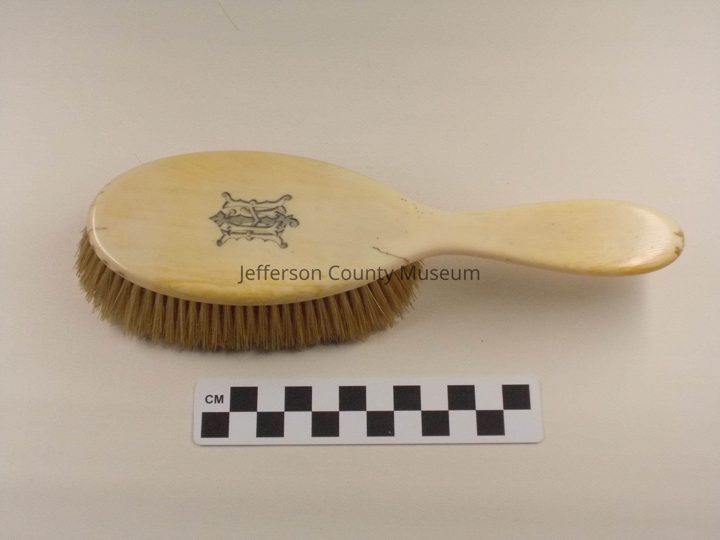 Ivory handle. "HLJ" monogrammed in black. Off white bristles. "HLJ" refers to Harriet Lane Johnston. Part of catalog #440.Acquisition