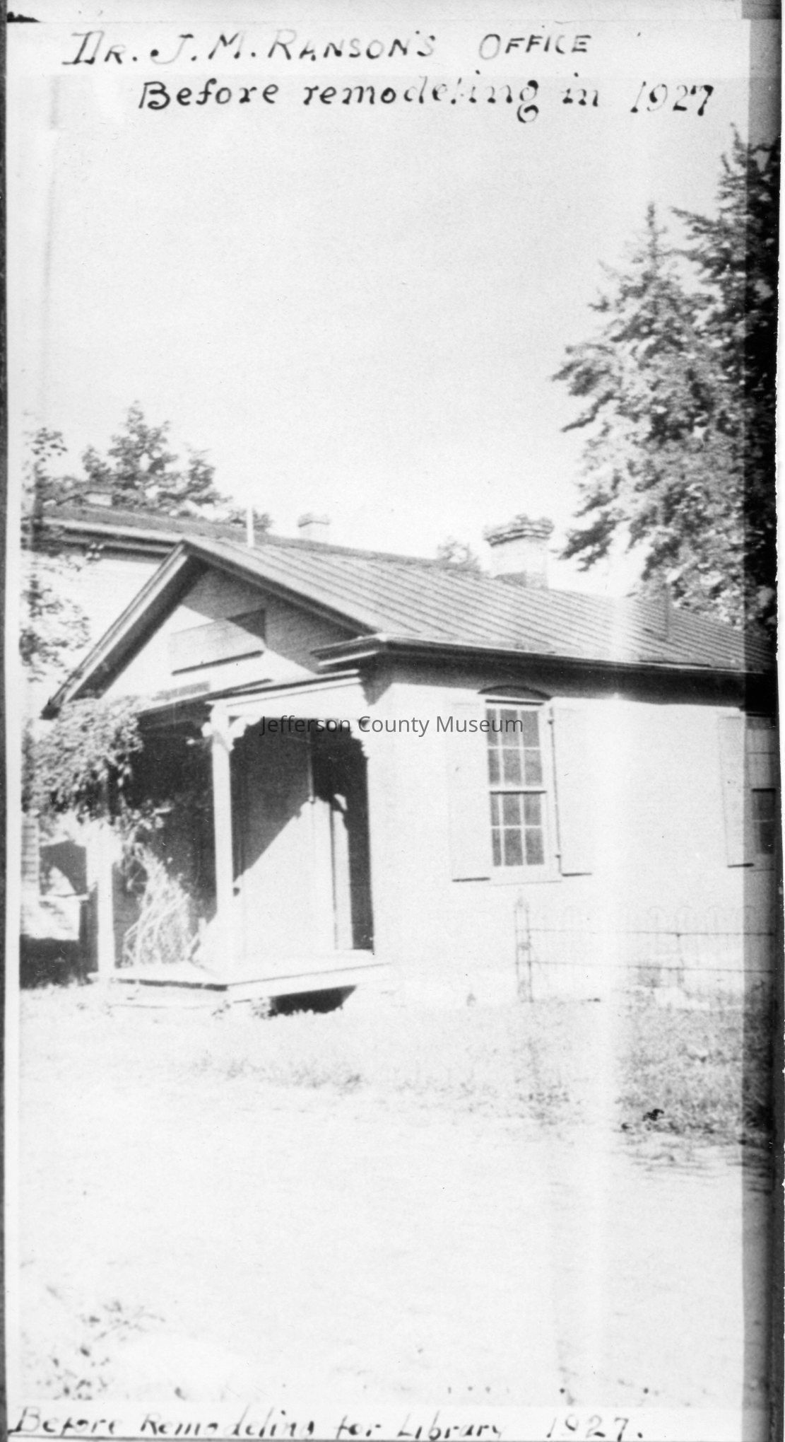 Photo reads: "Dr. J. M. Ranson's office, before remodeling in 1927" and "Before remodeling for Library 1927"Acquisition