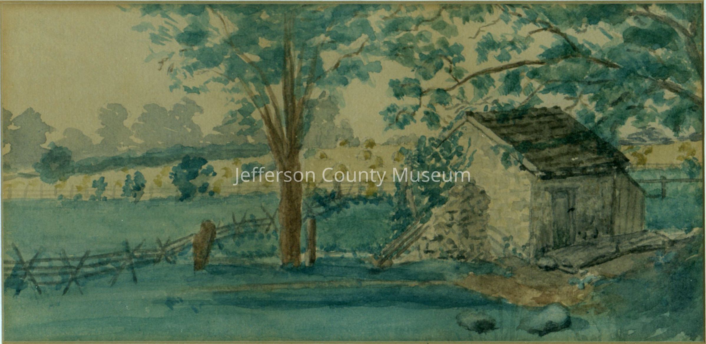 Framed watercolor of Spring House at Rock Hall, George Washington's Bullskin Plantation by Patty Willis