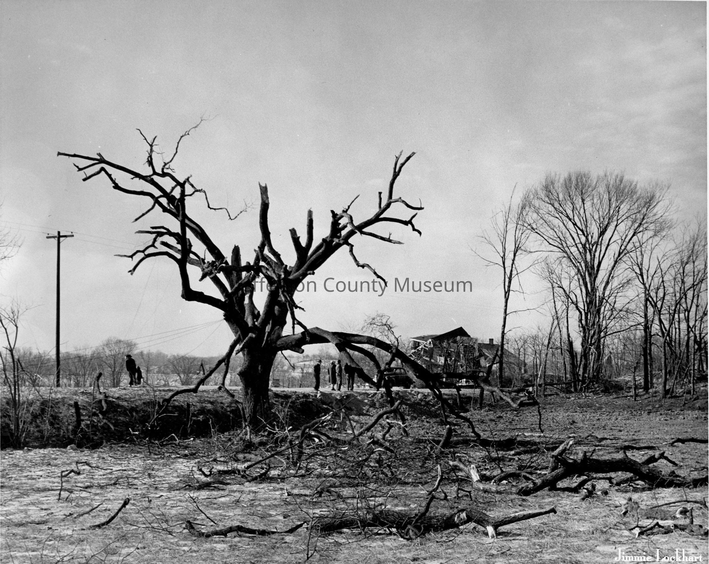 Halltown dynamite truck explosion - tree wrecked by explosionEntry/Object ID