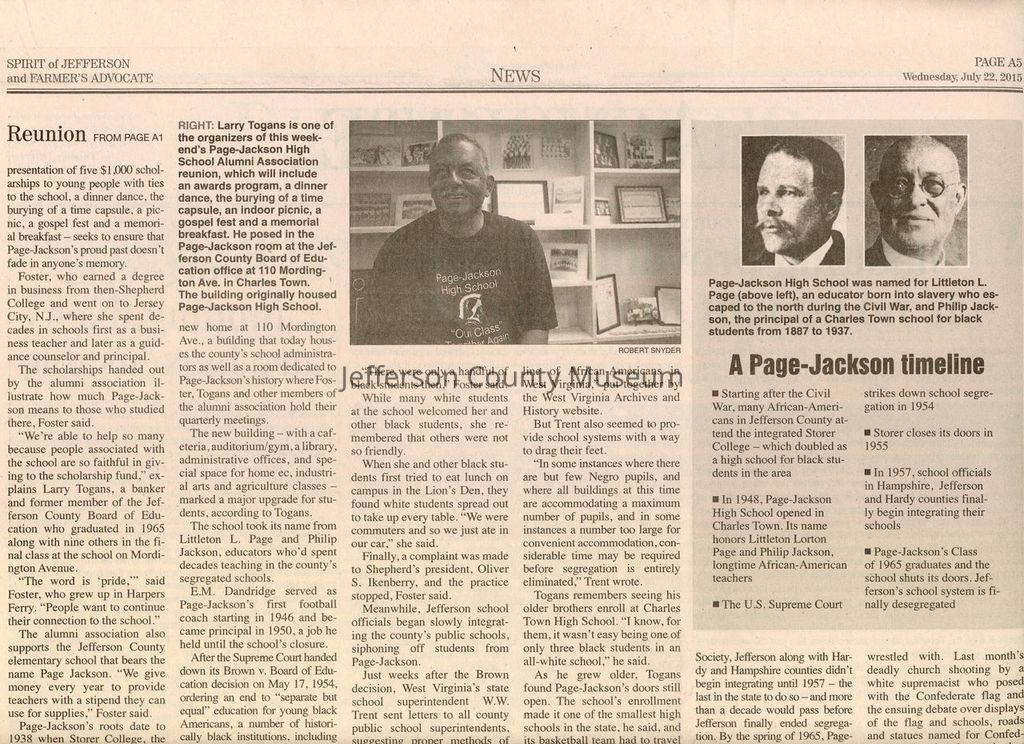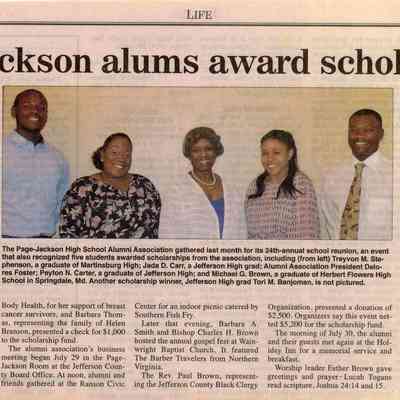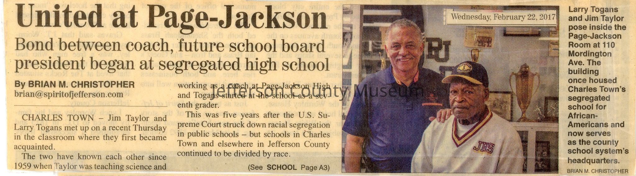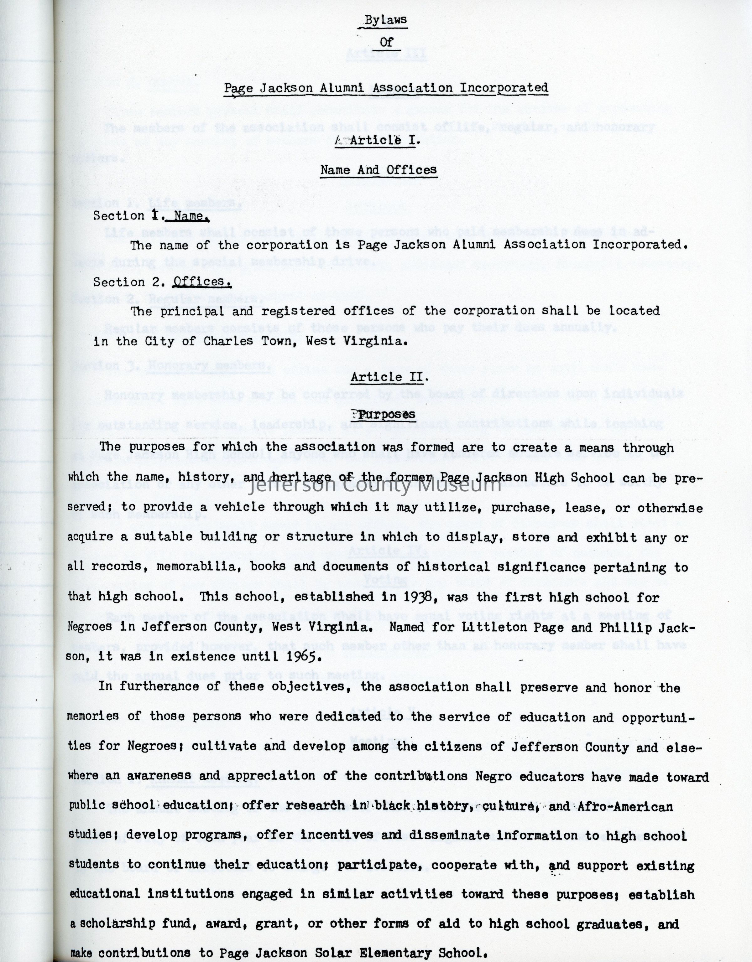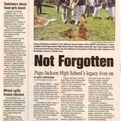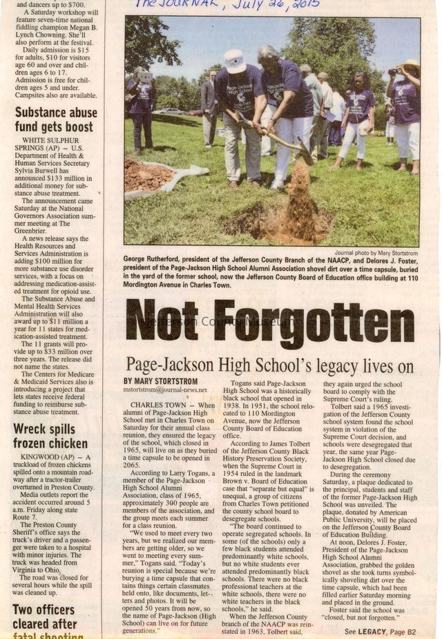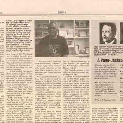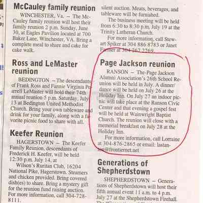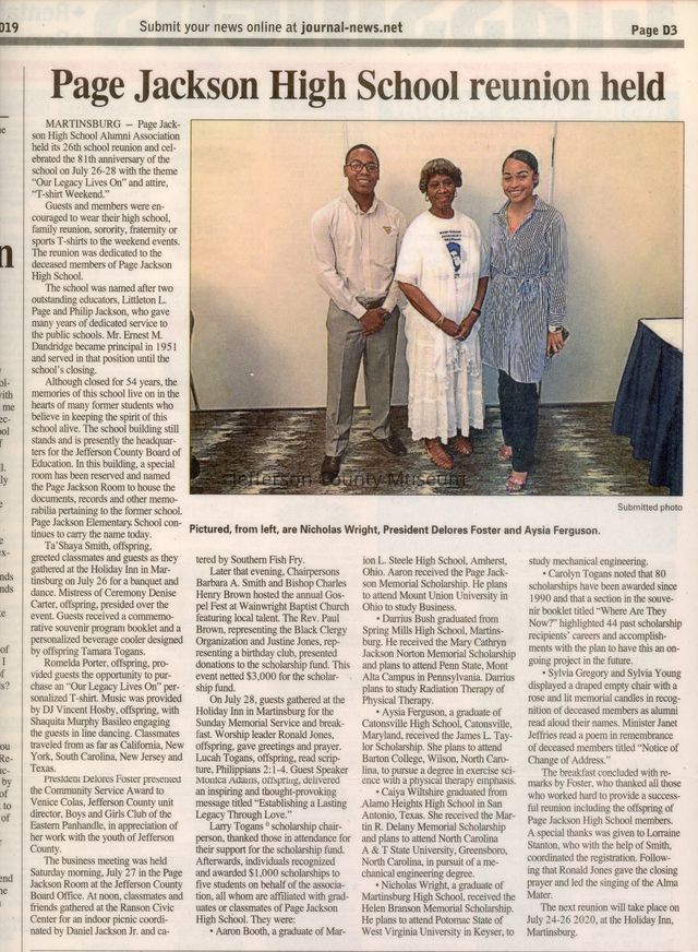Digital images, bylaws, and newspaper clippings (most from the Spirit of Jefferson and Martinsburg Journal) from Page Jackson Alumni Association reunions and their annual scholarship program.Acquisition