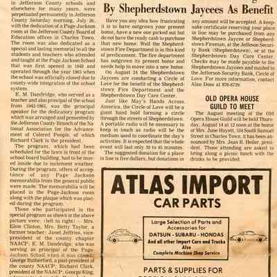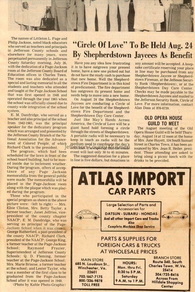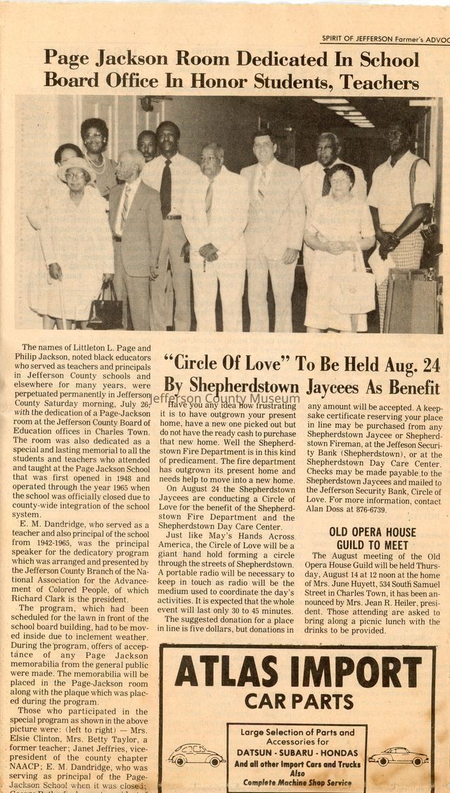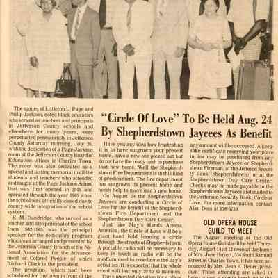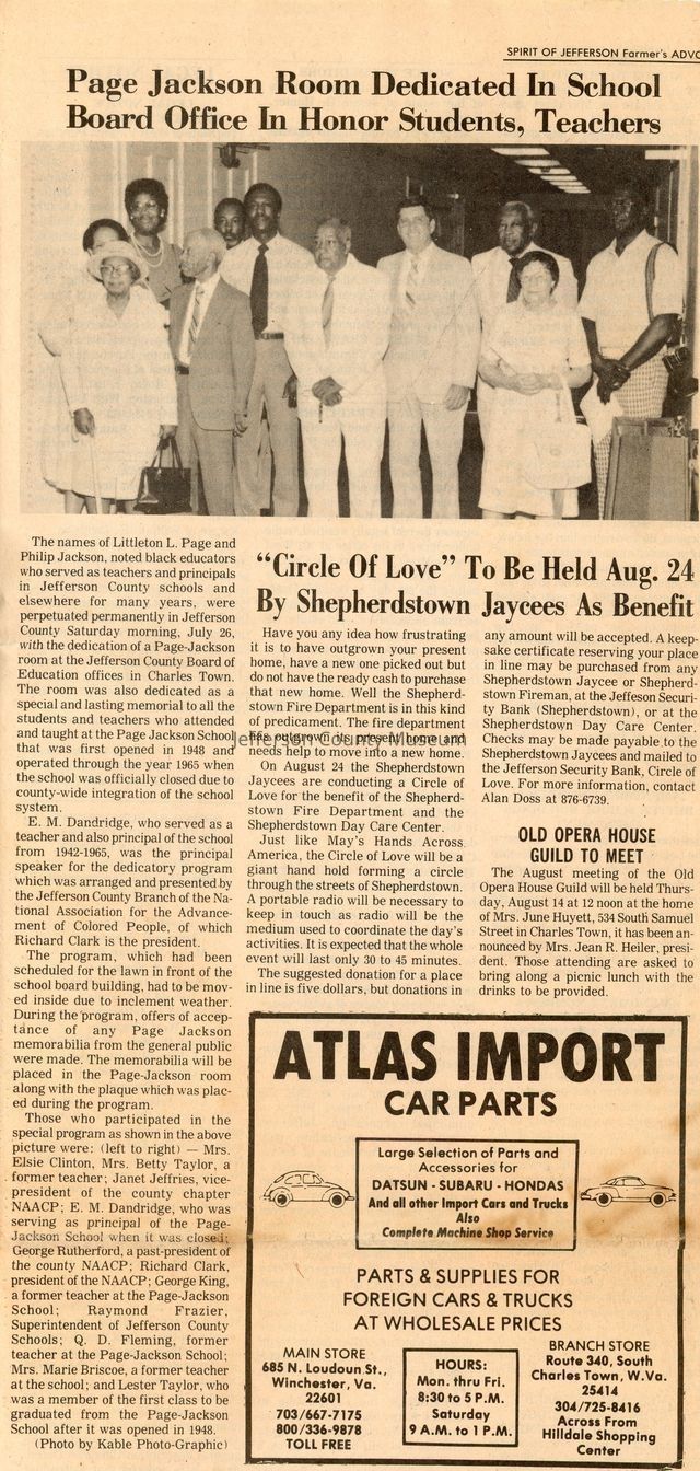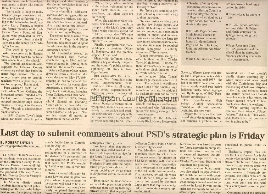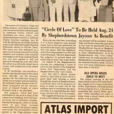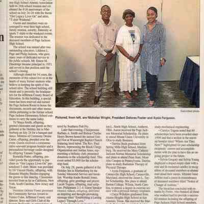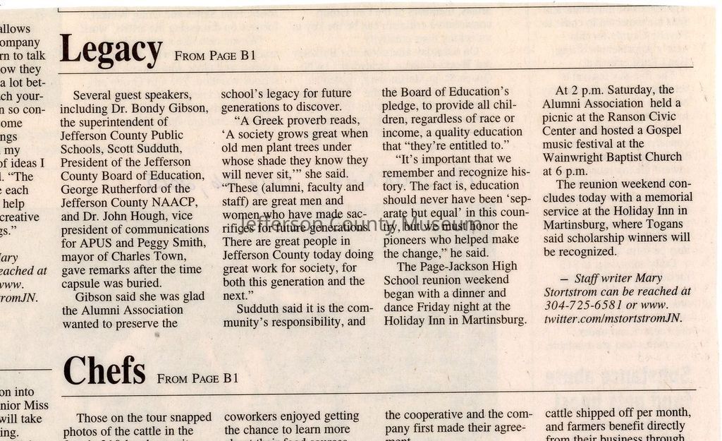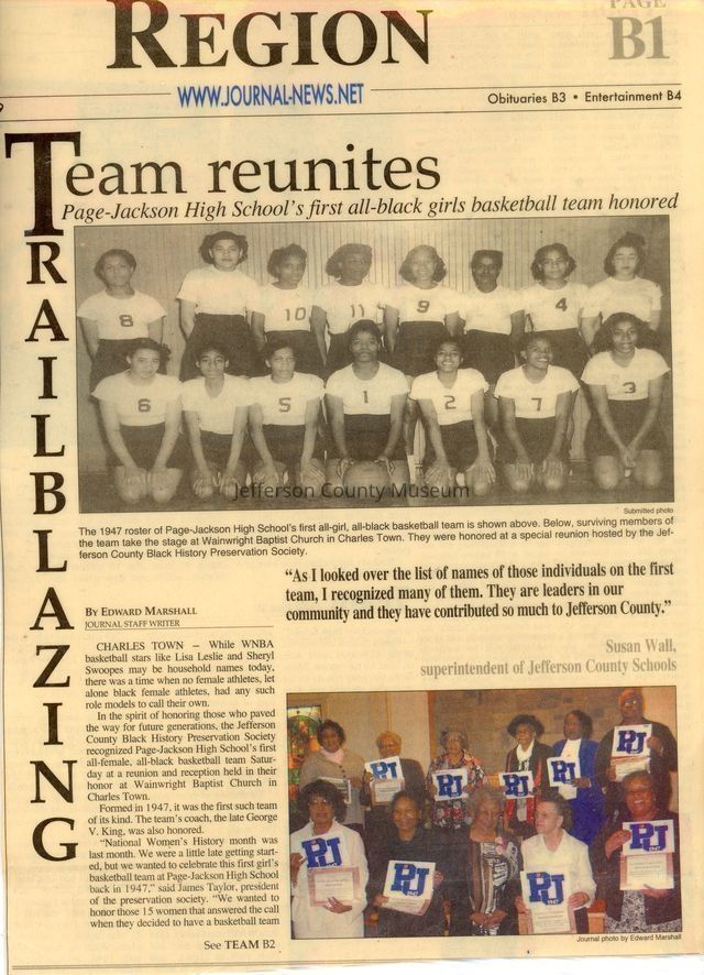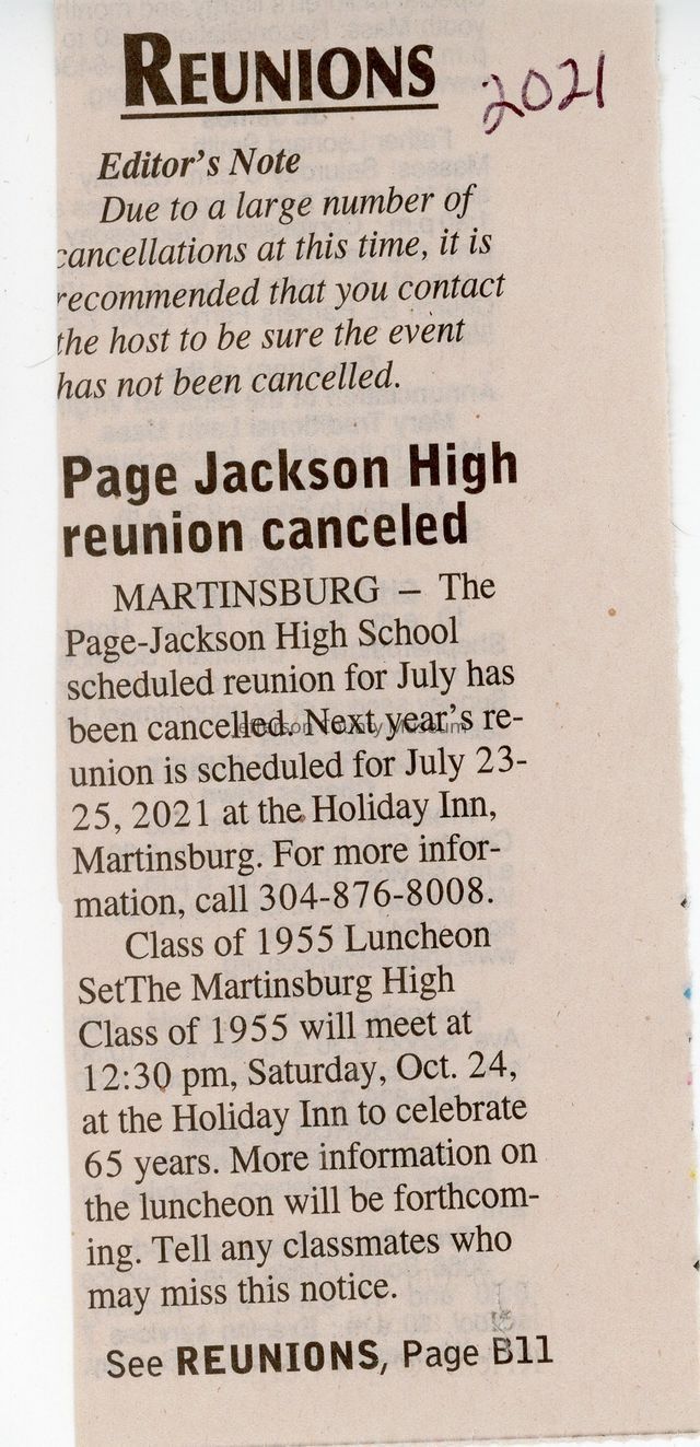 Digital images, bylaws, and newspaper clippings (most from the Spirit of Jefferson and Martinsburg Journal) from Page Jackson Alumni Association reunions and their annual scholarship program.Acquisition