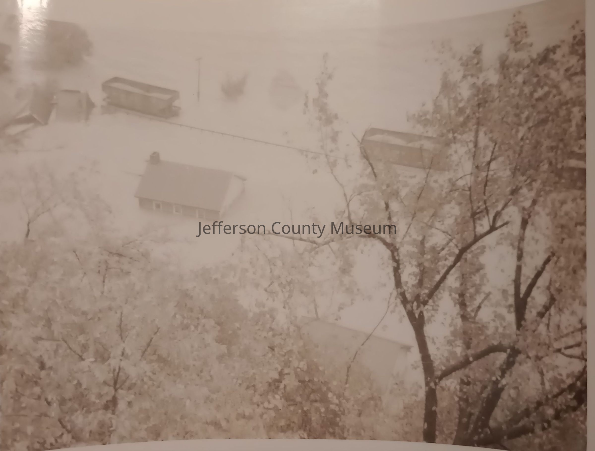 Train and Buildings Partially Submerged in 1942 FloodEntry/Object ID