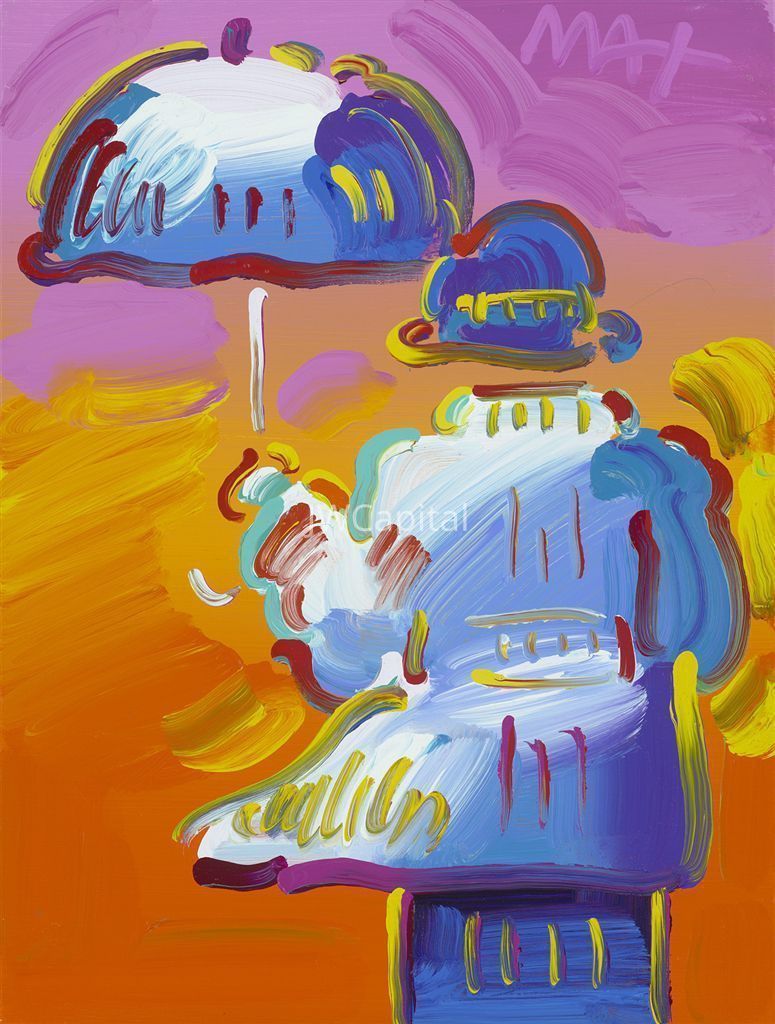 Acrylic painting on canvas from the Peter Max Studio. Hand-signed in pigment upper right by the artist. A unique work.