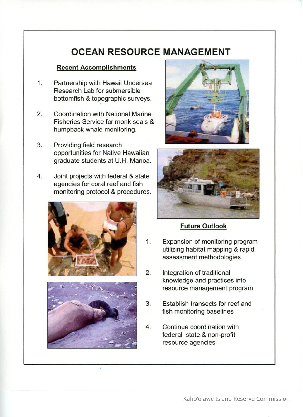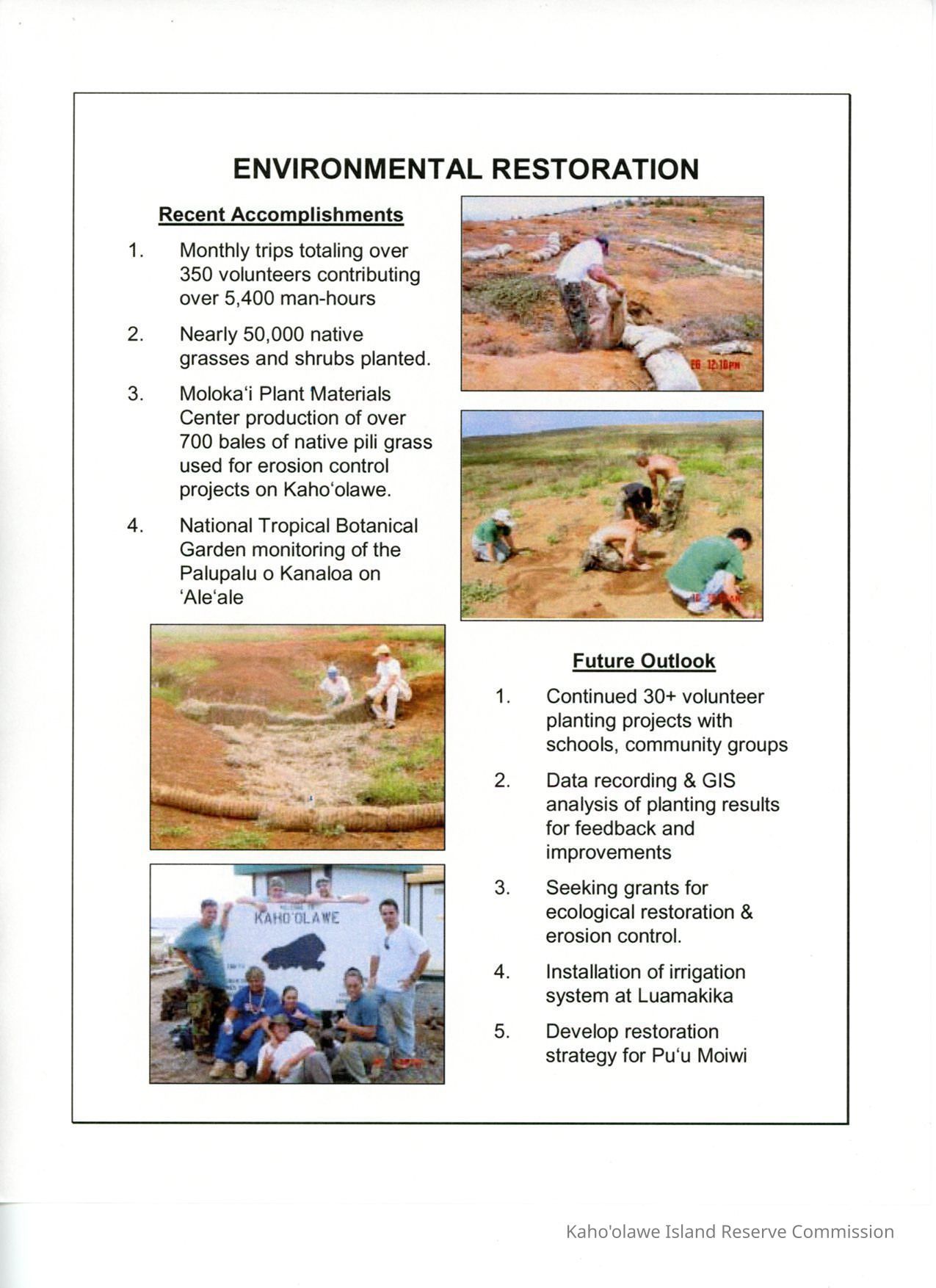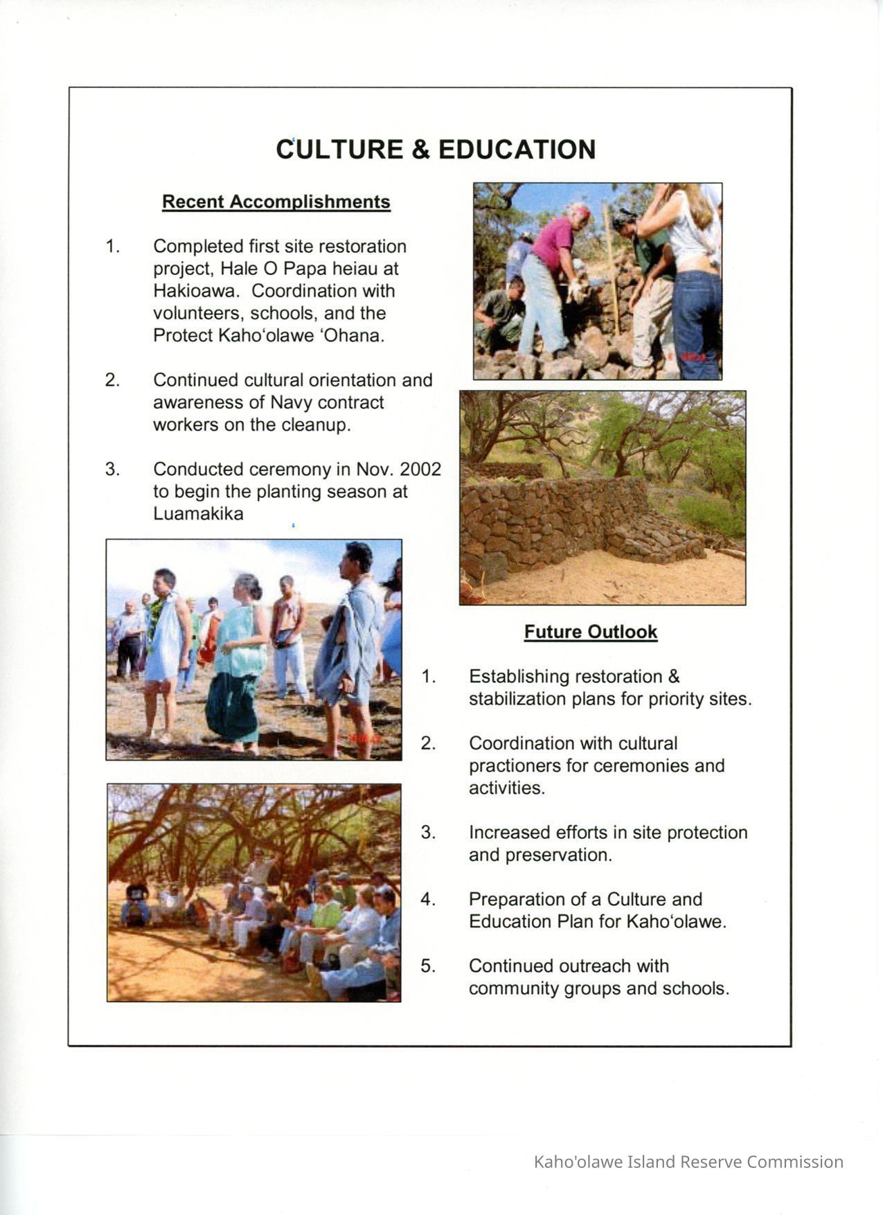 2003 Hawai'i State Legislature Kaho'olawe Update Supplemental InformationDescription