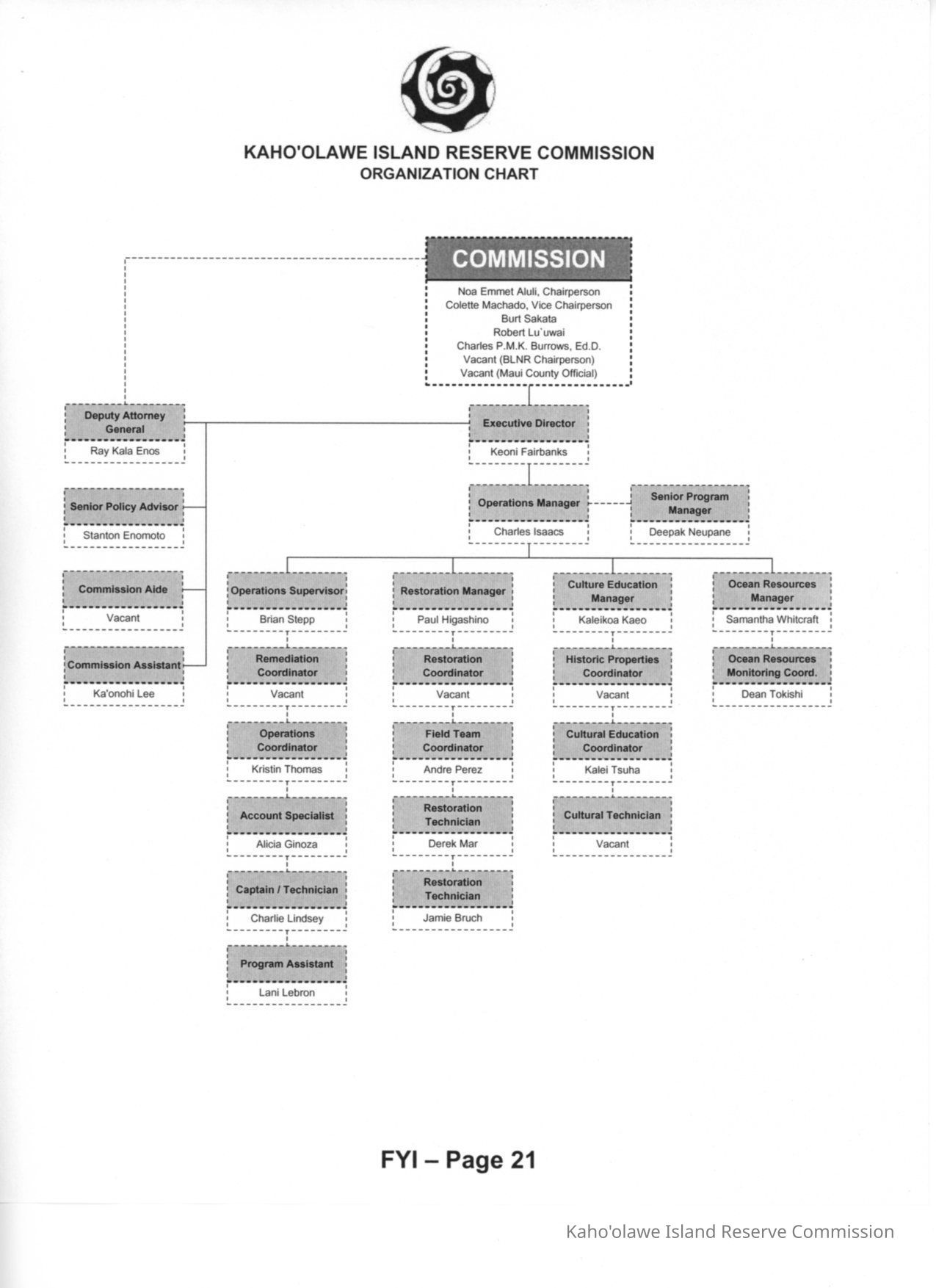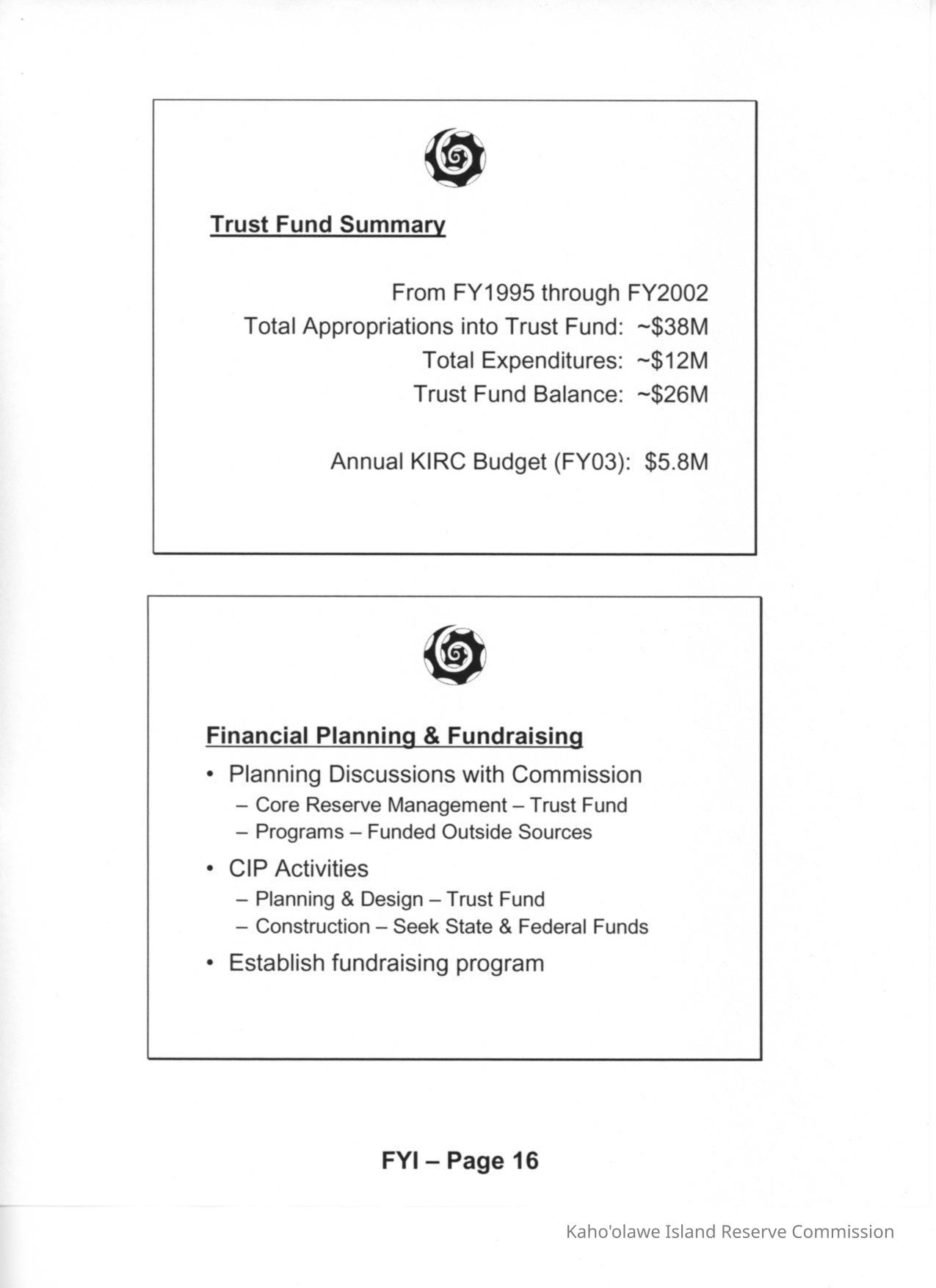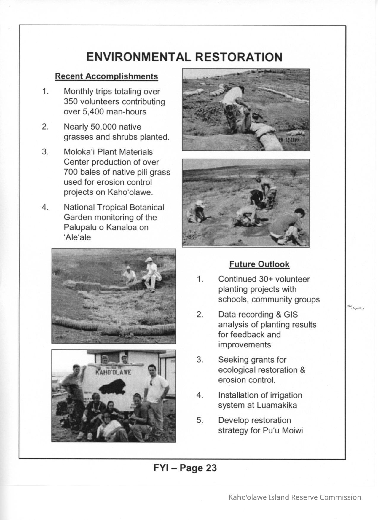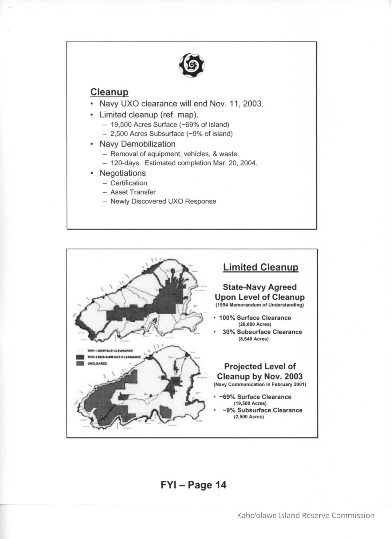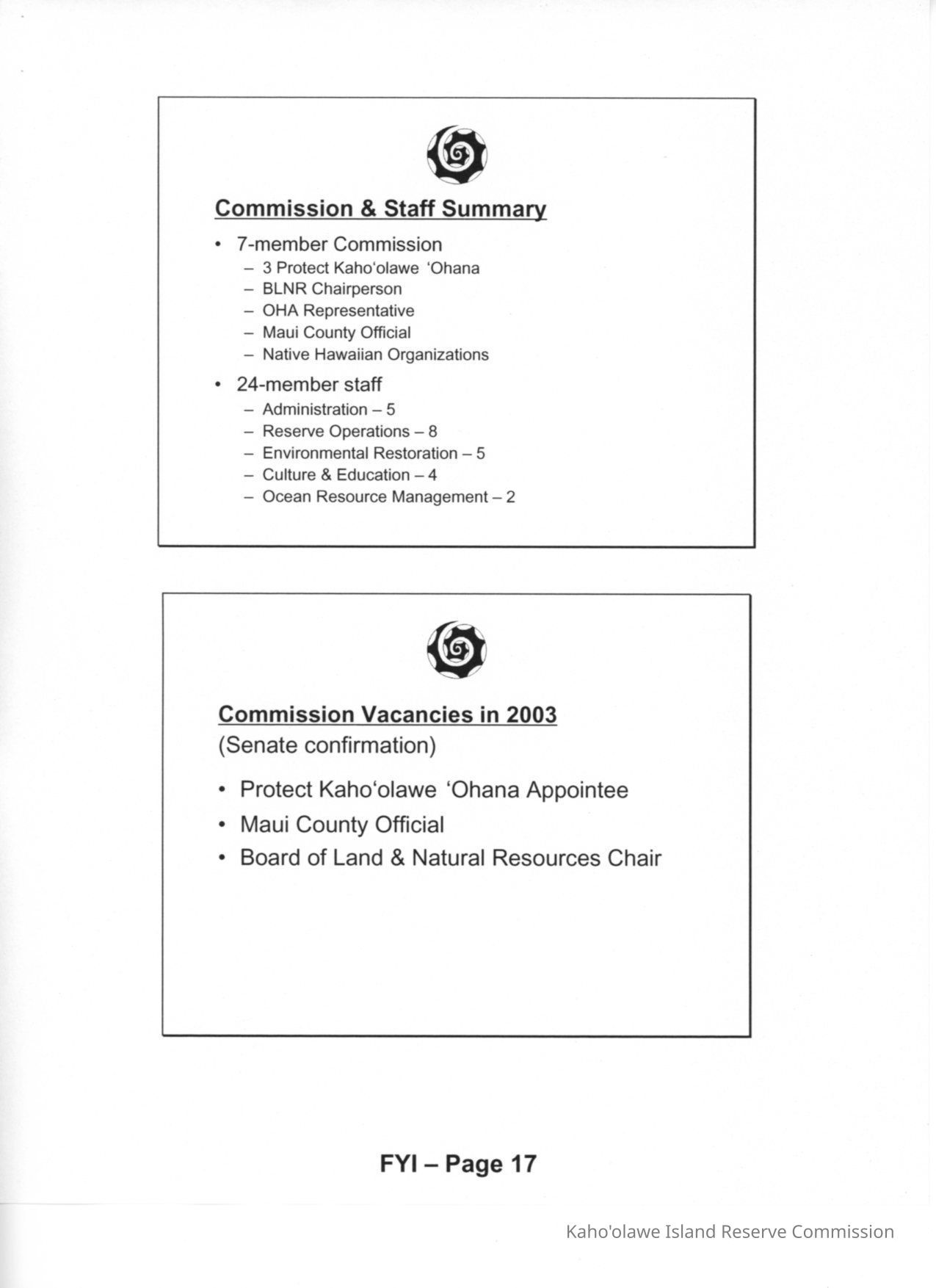 Kaho'olawe Island Commission, 2003 Hawai'i State Legislature Kaho'olawe Update, January 2003. PowerPoint document, black & white copy.Creator