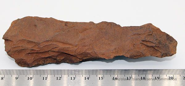 Closeup of adze preform with ruler: Origsize: 12 cm (L) x 4 cm (W); Origformat: Artifact; Resolution: 200 dpi