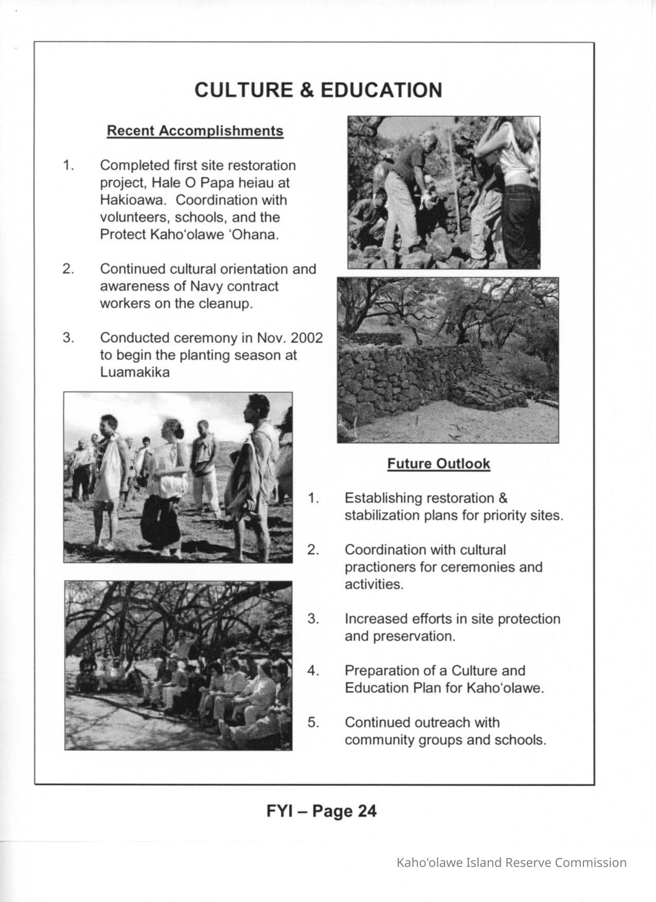 Kaho'olawe Island Commission, 2003 Hawai'i State Legislature Kaho'olawe Update, January 2003. PowerPoint document, black & white copy.Creator