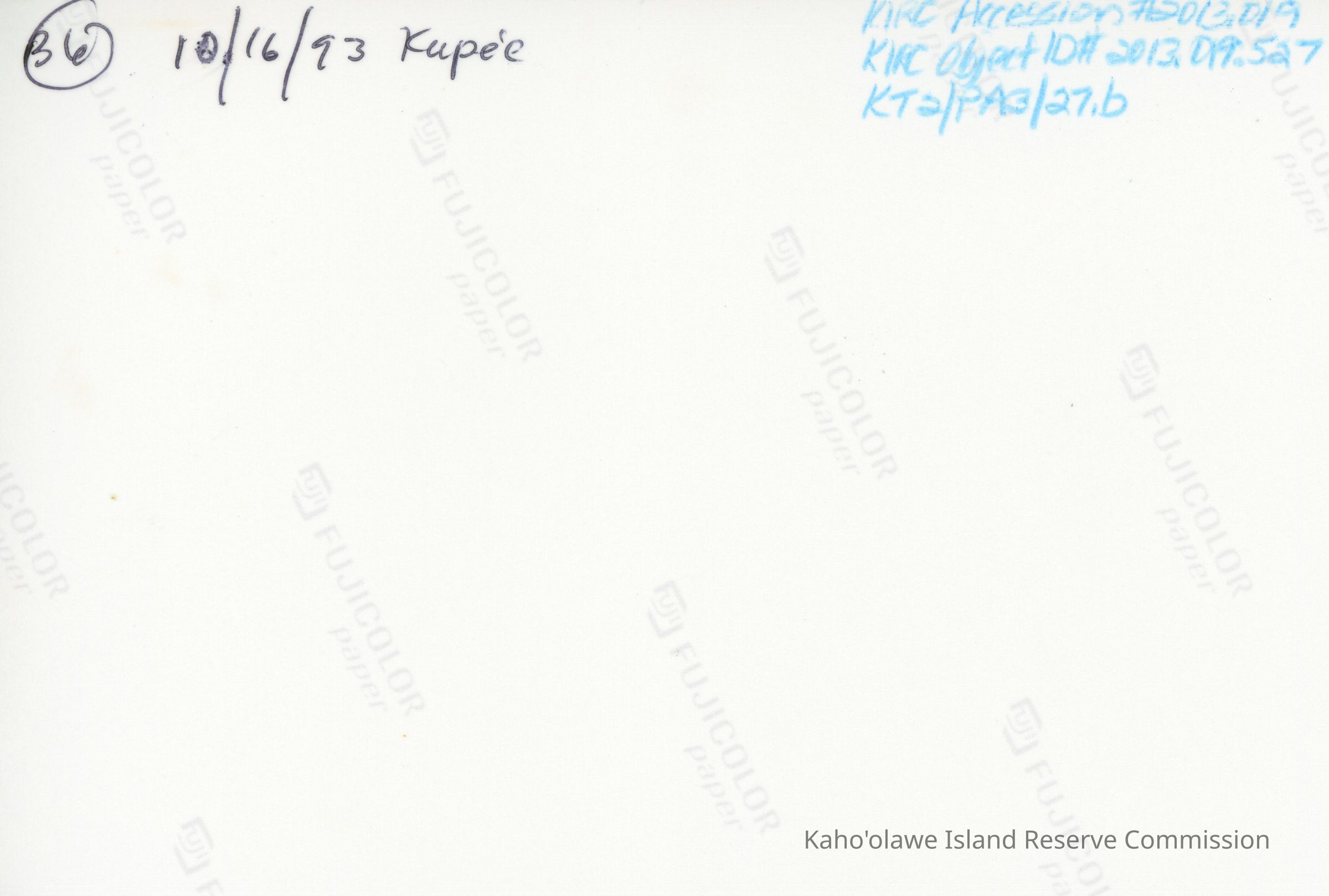 The number "36", "10/16/93" and kupe'e are handwritten in black ink on the back.