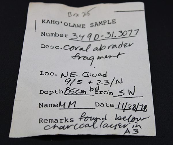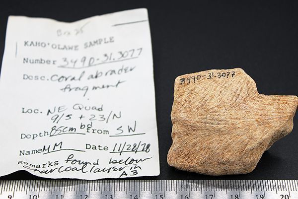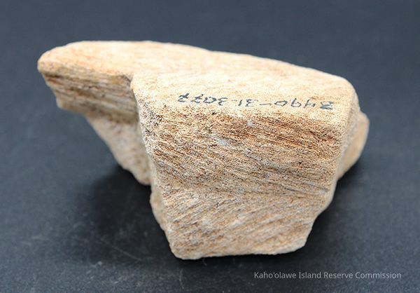 Irregularly shaped coral abrader fragment with alternate id # handwritten in black ink on one sideCollection