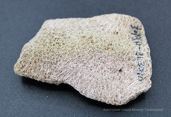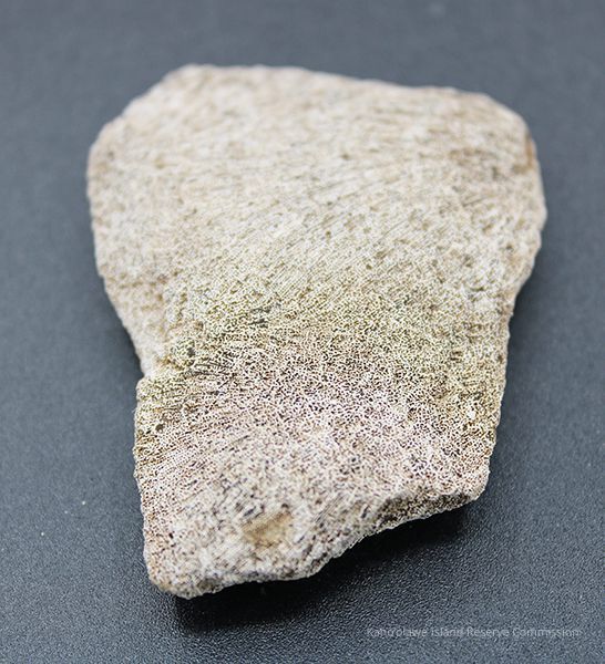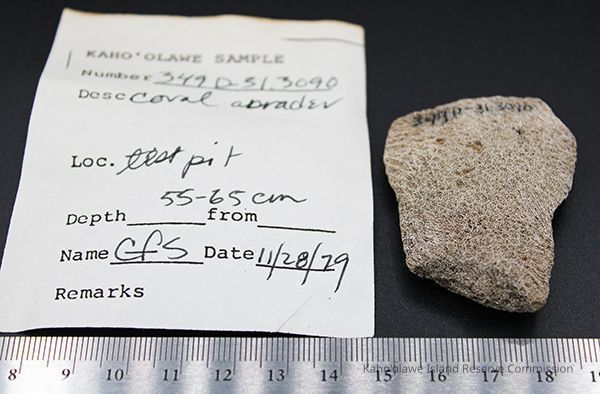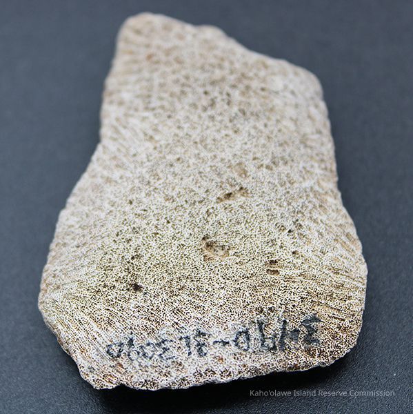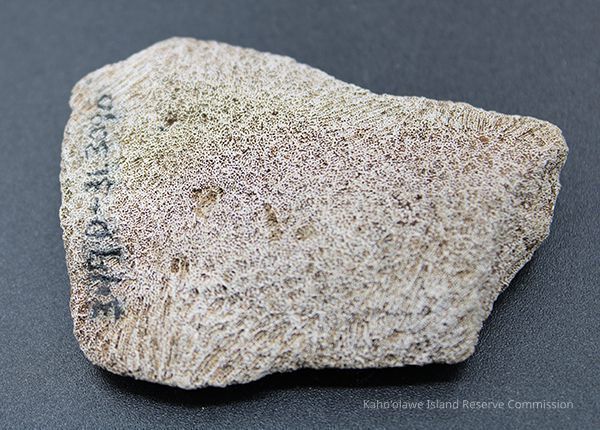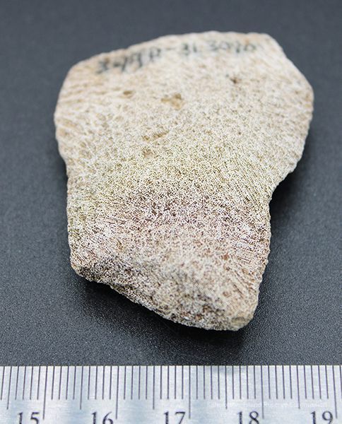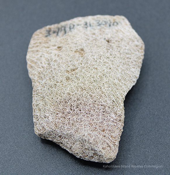 Irregularly shaped piece of coral abrader with alternate id # handwritten in black ink on one sideCollection