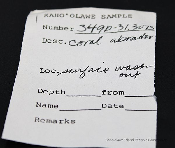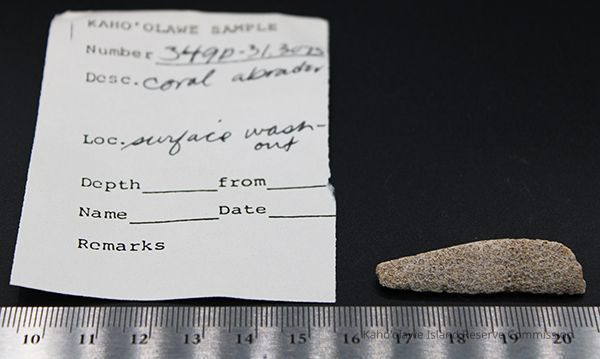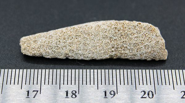 Small, elongated, white coral abrader with alternate id # handwritten in black ink on one sideCollection
