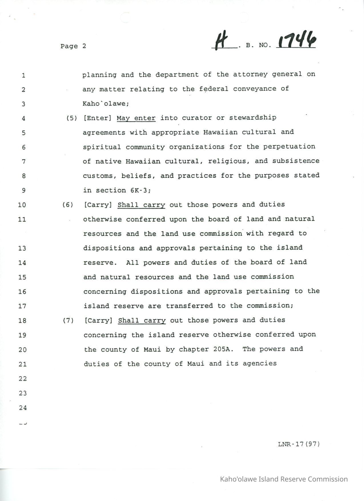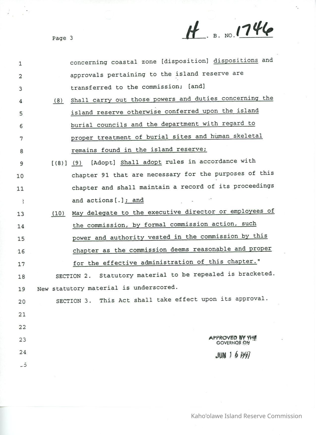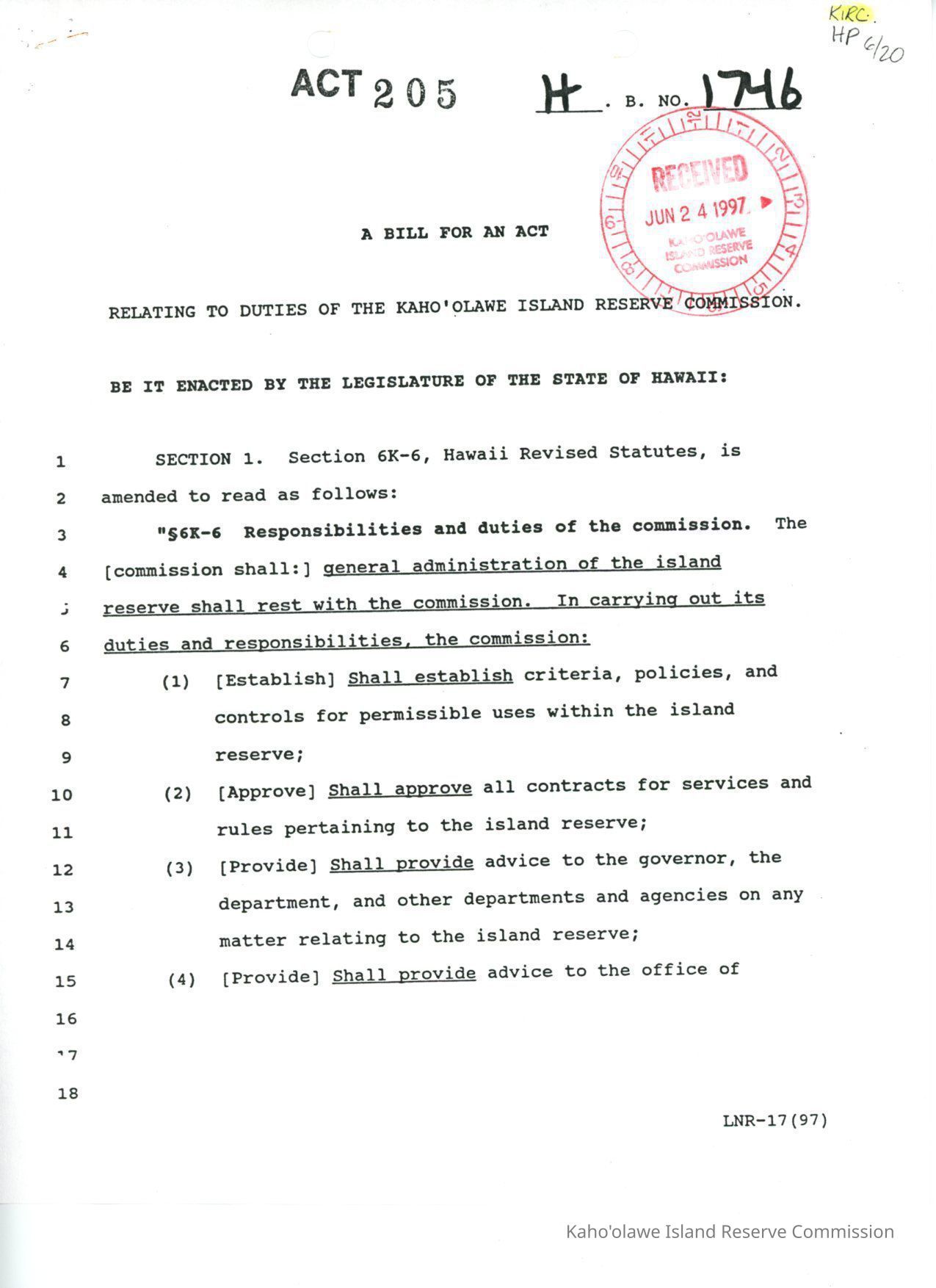 Act 205, Relating to Duties of the Kaho'olawe Island Reserve Commission (originally H.B. No. 1746).Date(s) of Creation