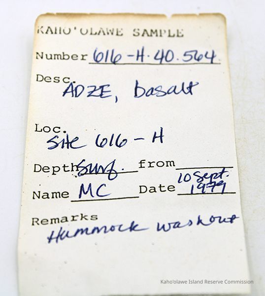 adze, artifacts, Habitation site, Hommon's Inland Settlement Zone, Moa'ulanui Work Area, Moa'ulanui/Moa'ulaiki Traditional Cultural Property, Scatter site