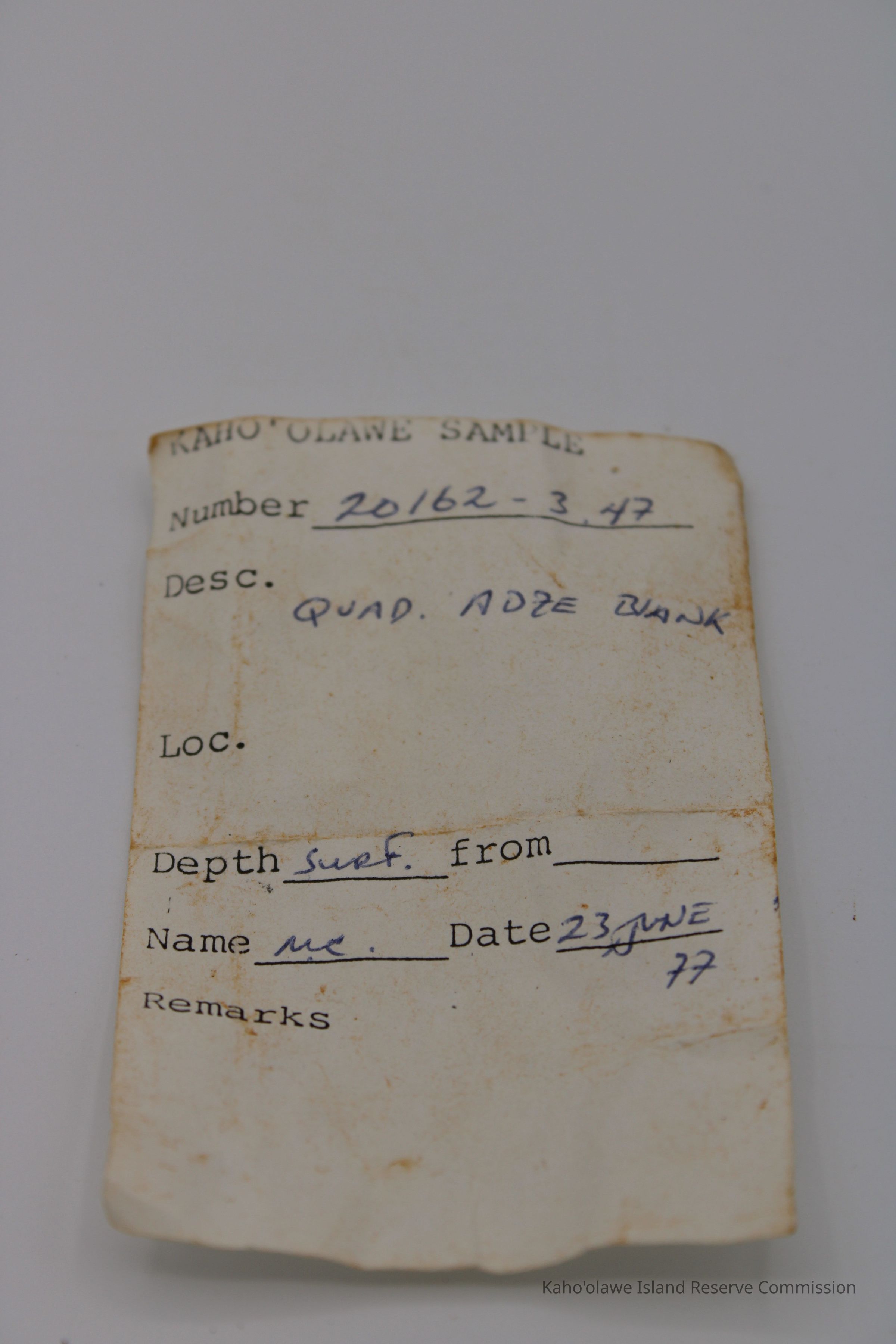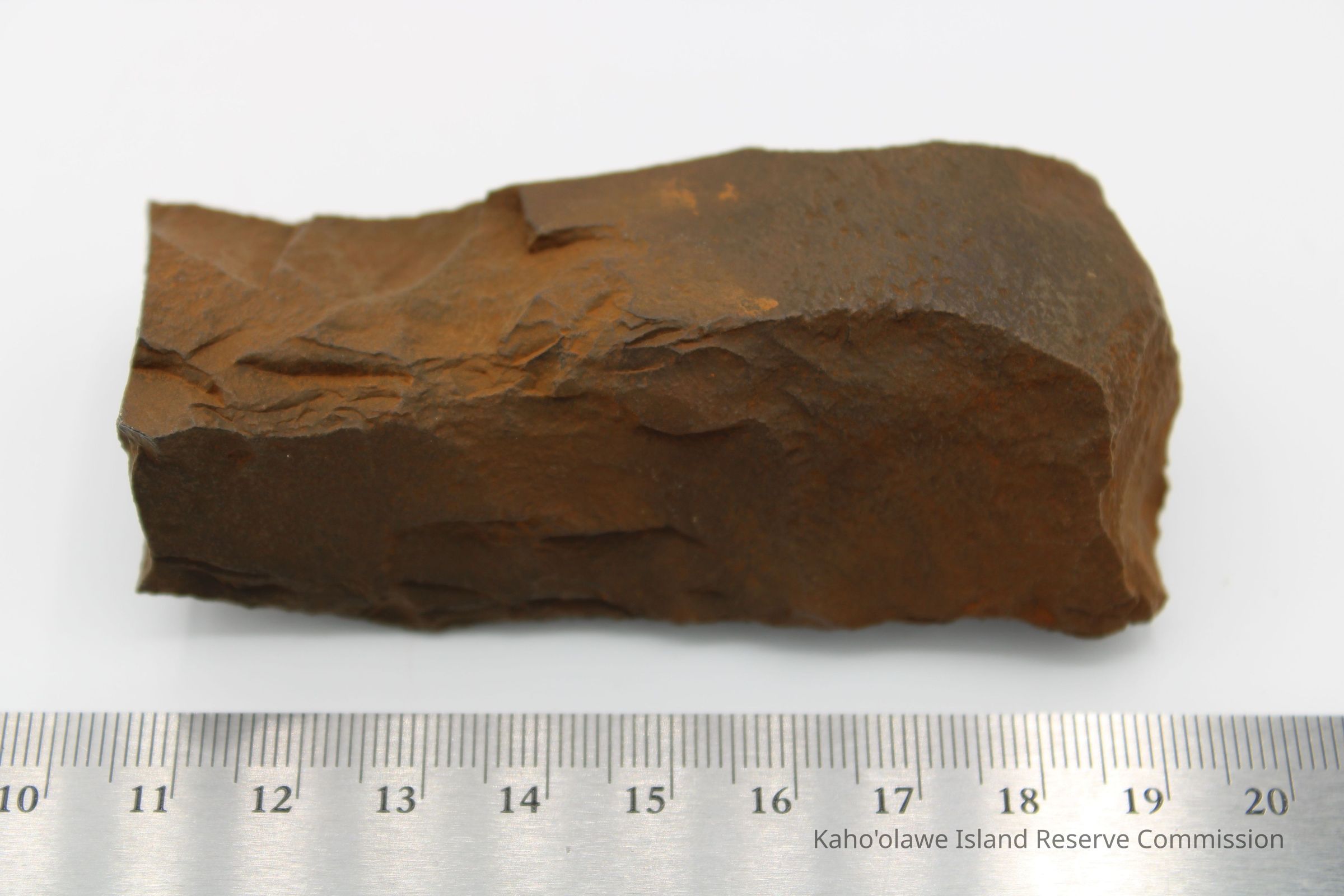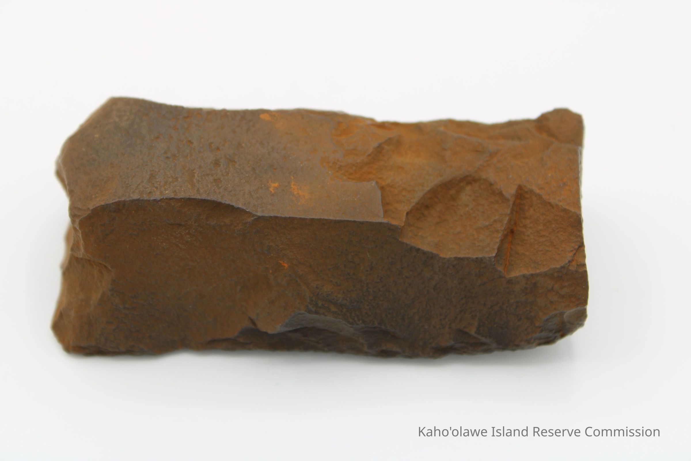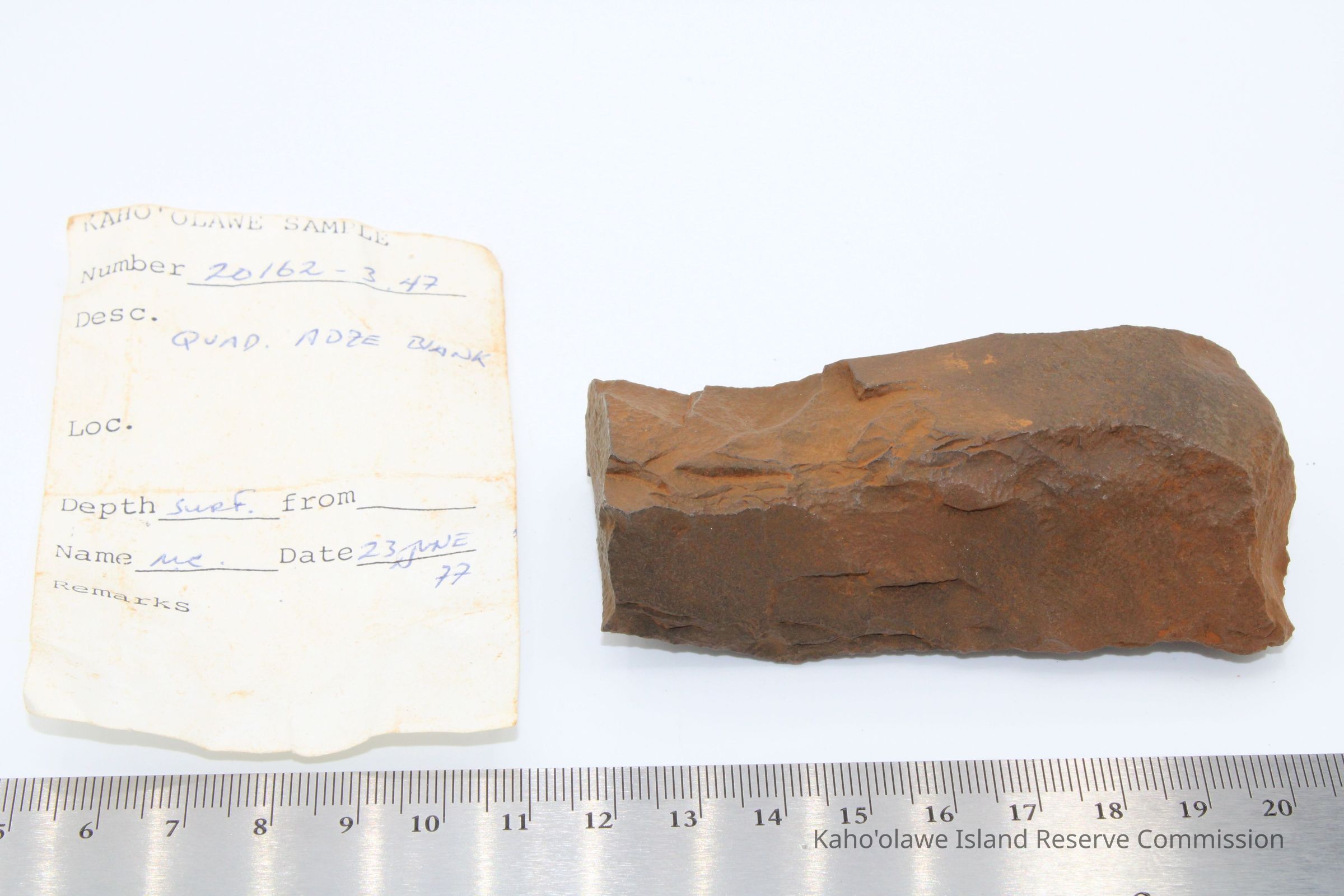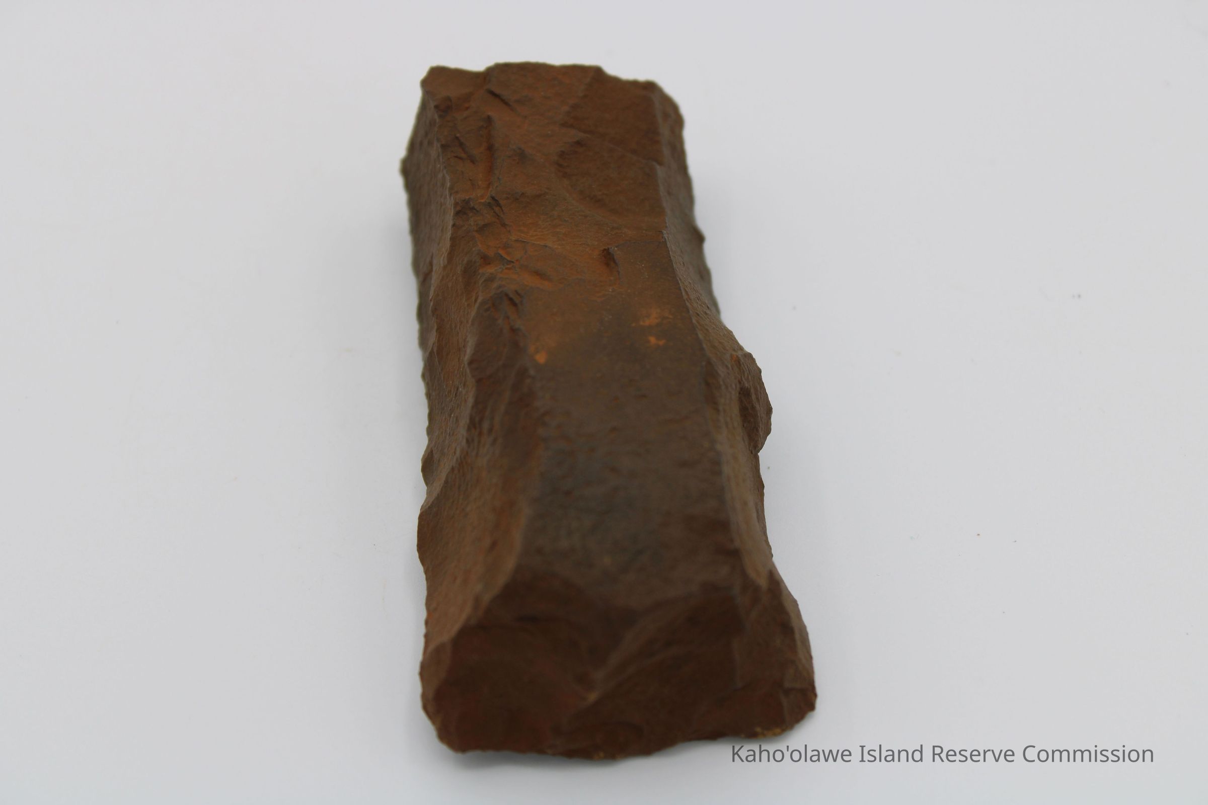 Adze blank: The image shows a rough, unshaped adze blank, likely used in crafting and shaping wooden tools. It has a flat, rectangular form.