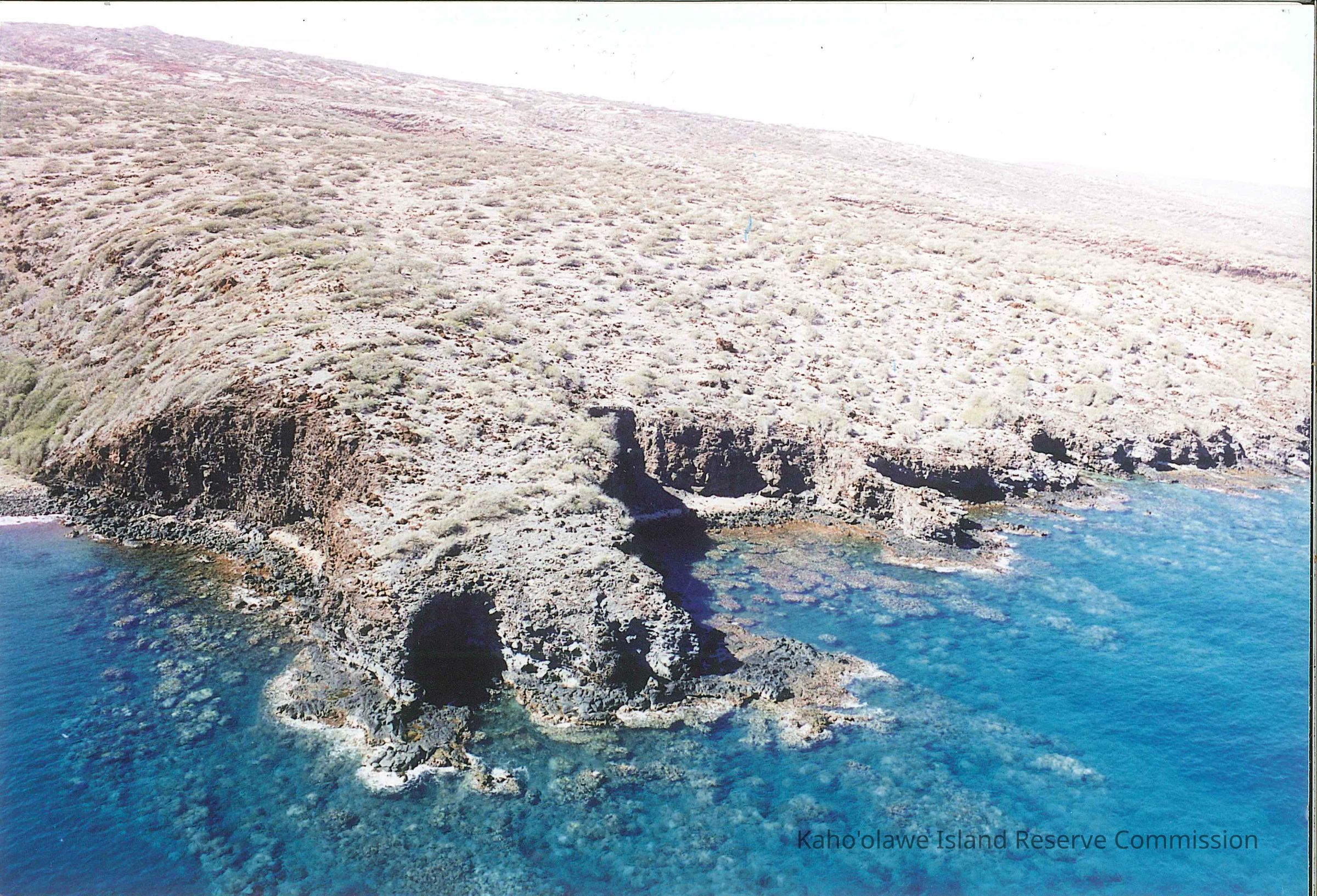 Color aerial photo of an unidentified coastal area with view of coral beds.