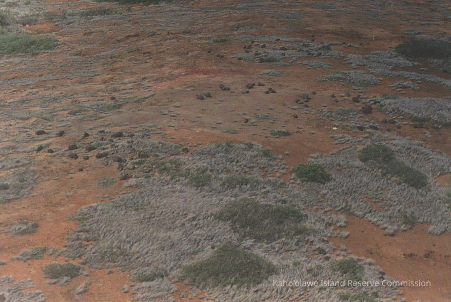 A high aerial photo of a possible archaeological site in an unidentified area, possibly east of Pu'u 'O Moa'ula Iki.Collection