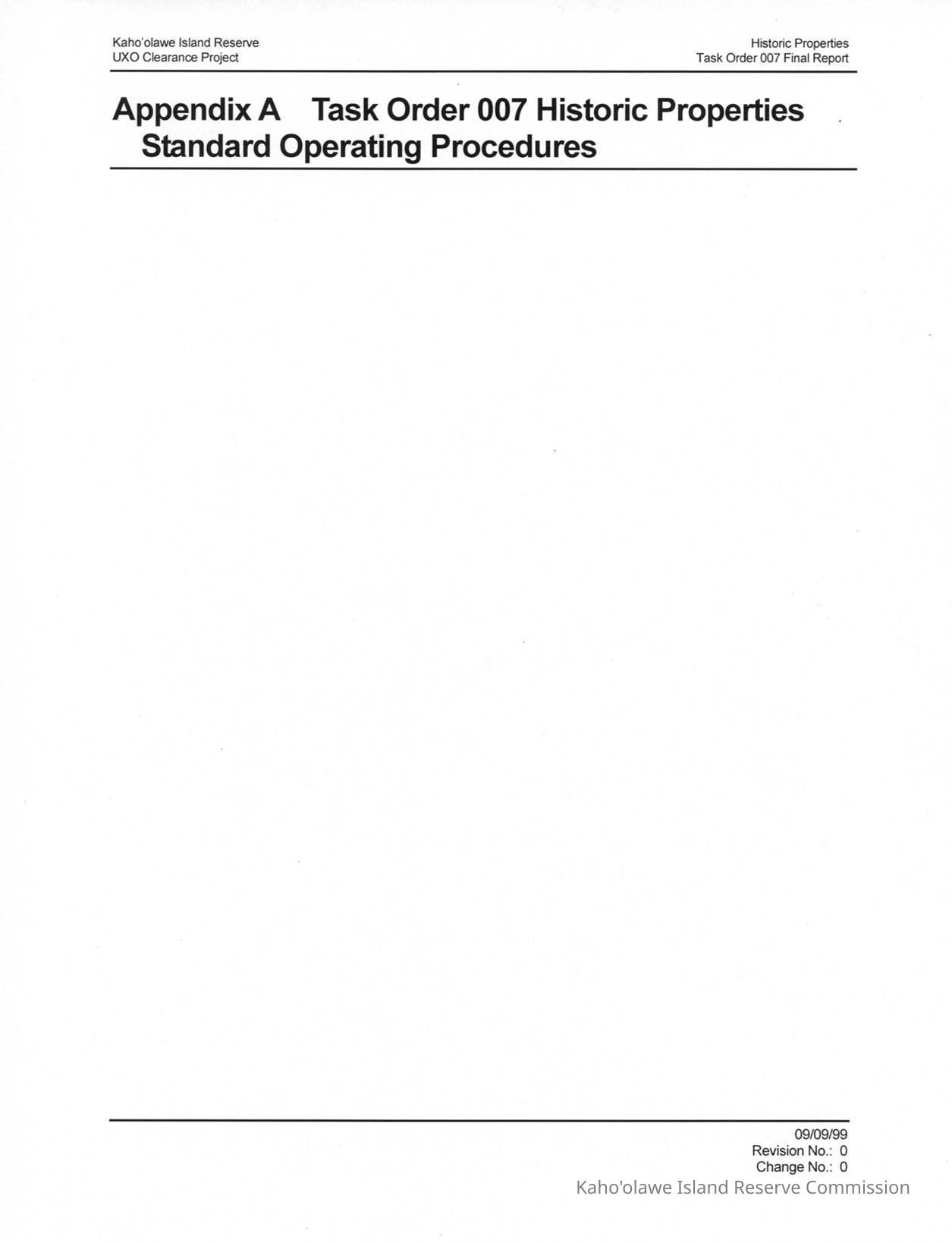 Copies: PDF copy: \\KIRC-LIB-01\Library Database\Arch\HPReports_KahoClearProject\TO7 HPRep_Acc\TO07AppendA_SOPs