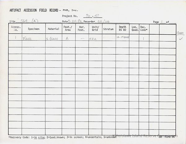 Artifact Accession Field RecordDescription