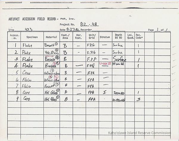 Administrative Records, Artifacts, Inventory, Activity area, firepit, Hommon's Inland Settlement Zone, lithics, Moa'ulanui/Moa'ulaiki Traditional Cultural Property, Scatter site, Lithics
