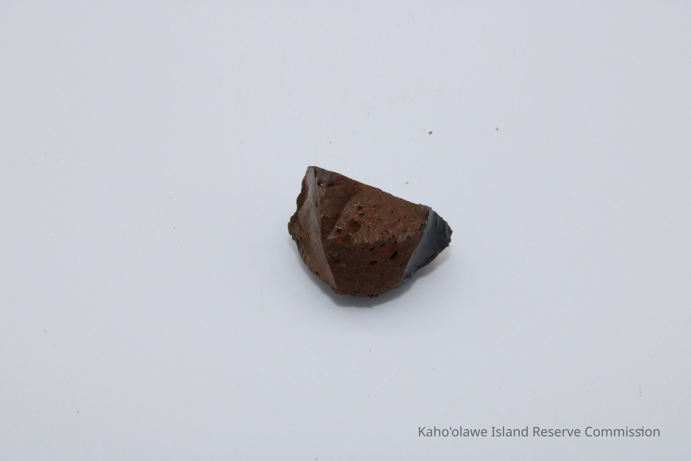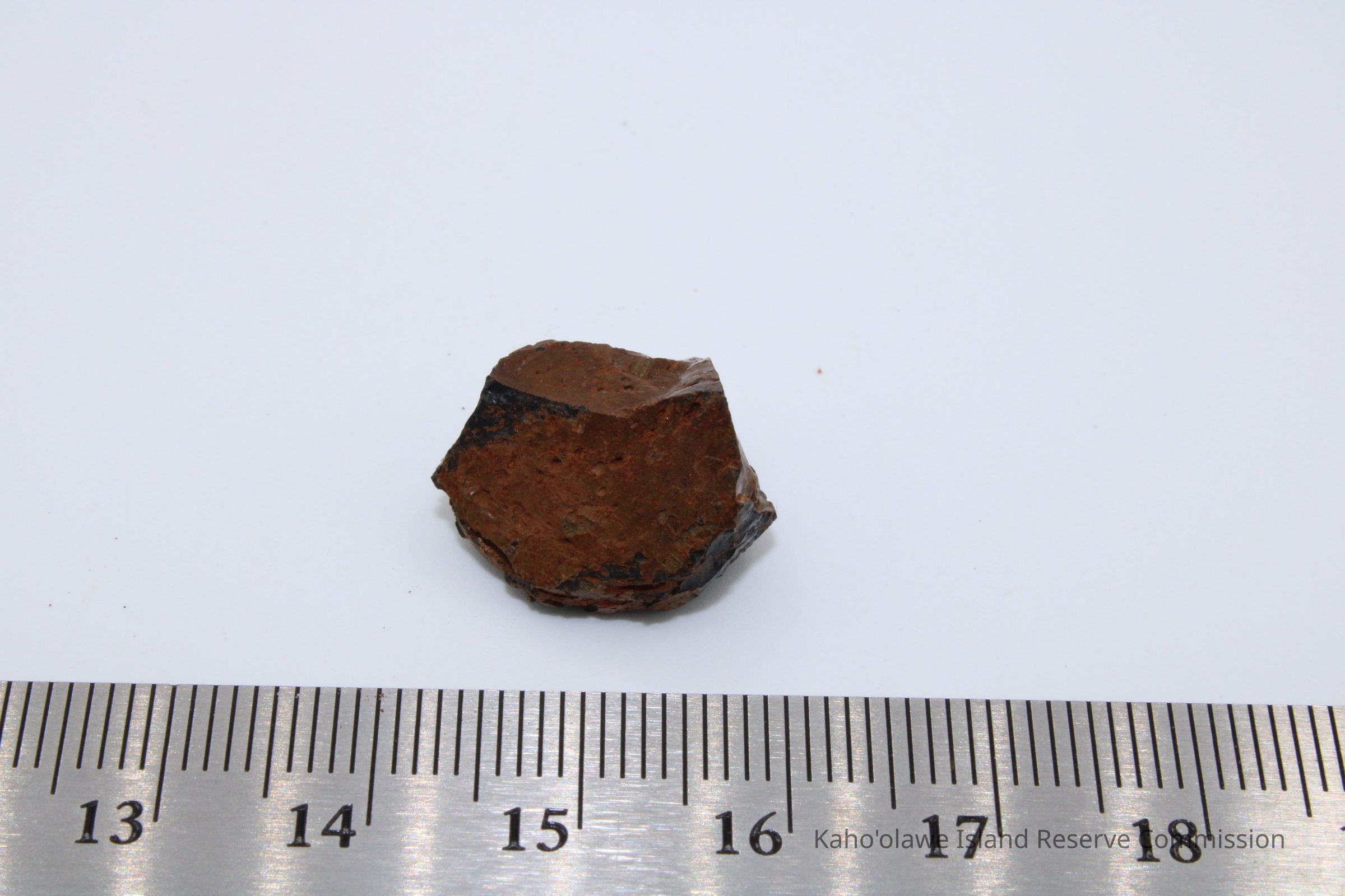 A small piece of basaltic glass with ruler and artifact slip