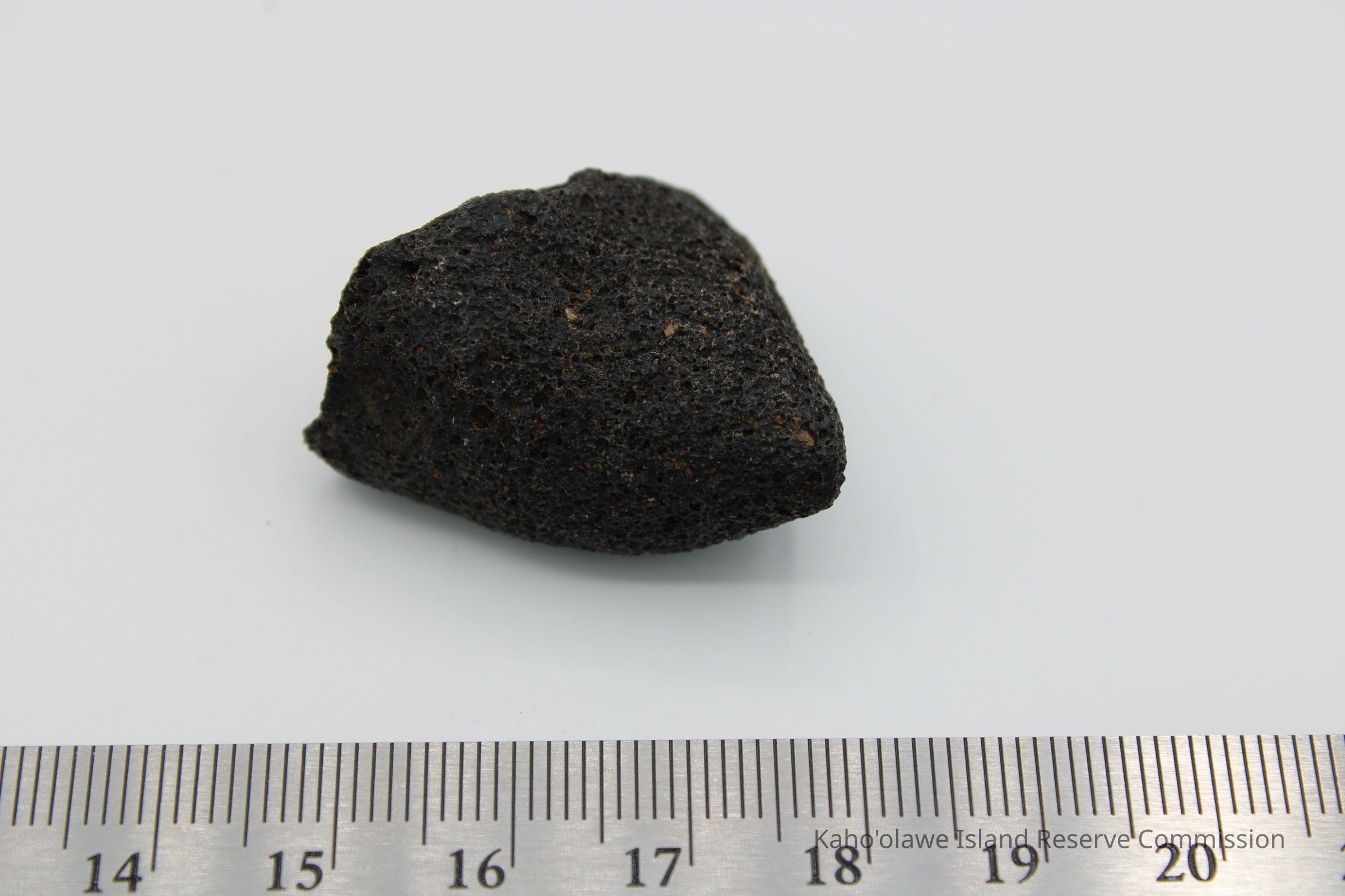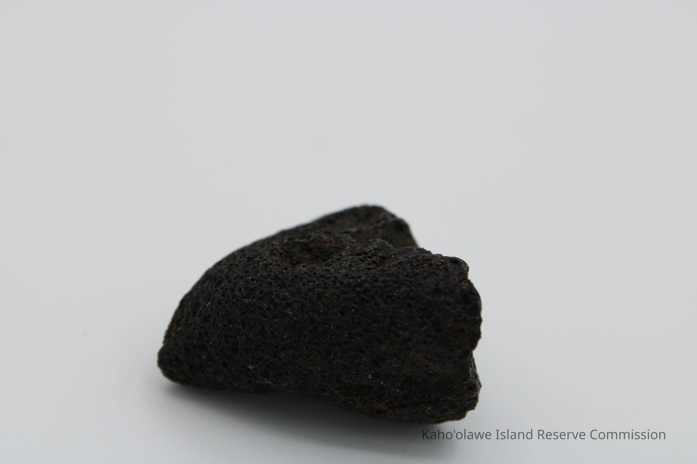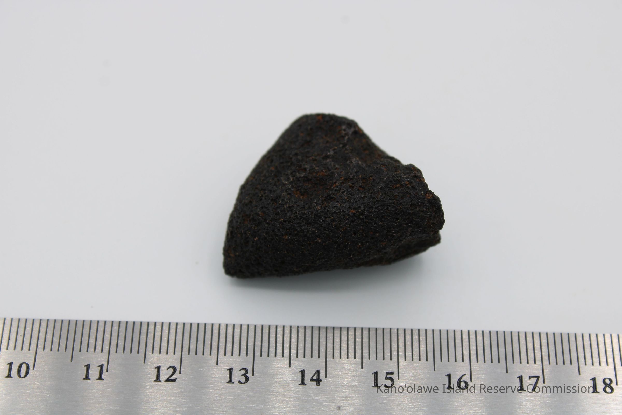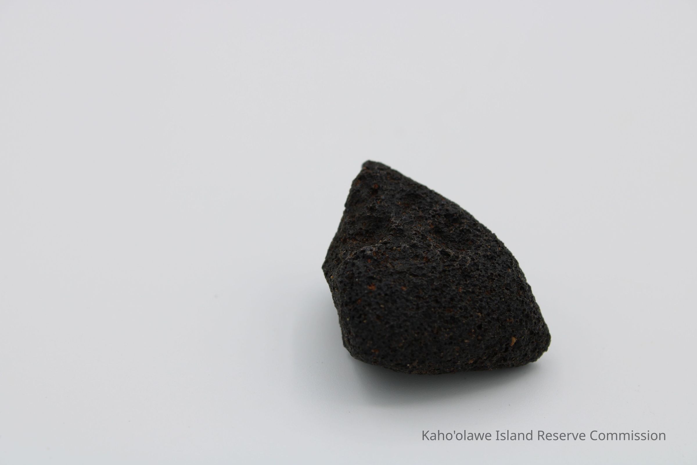Triangular-shaped core of basaltic glass with holes on one side.Collection