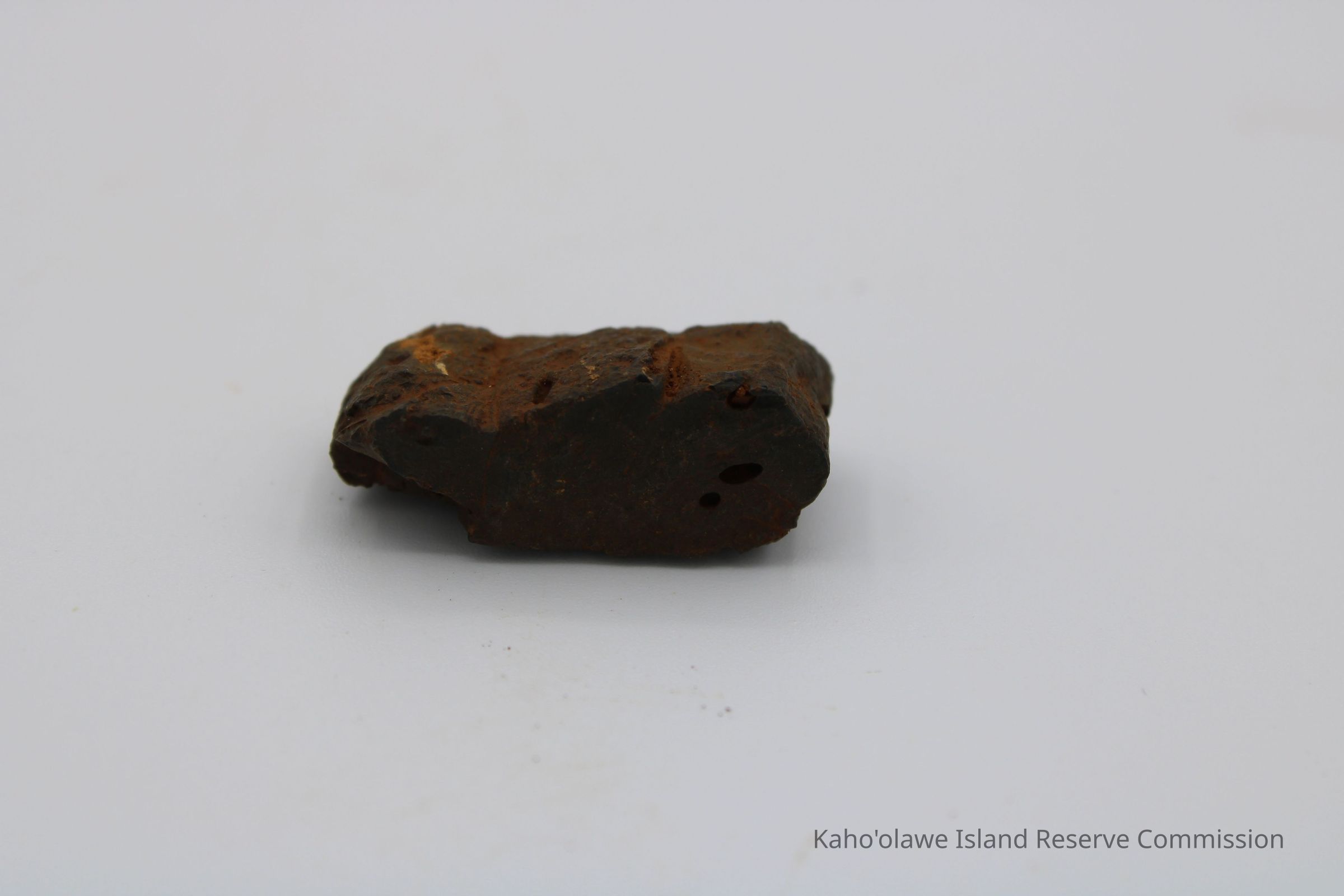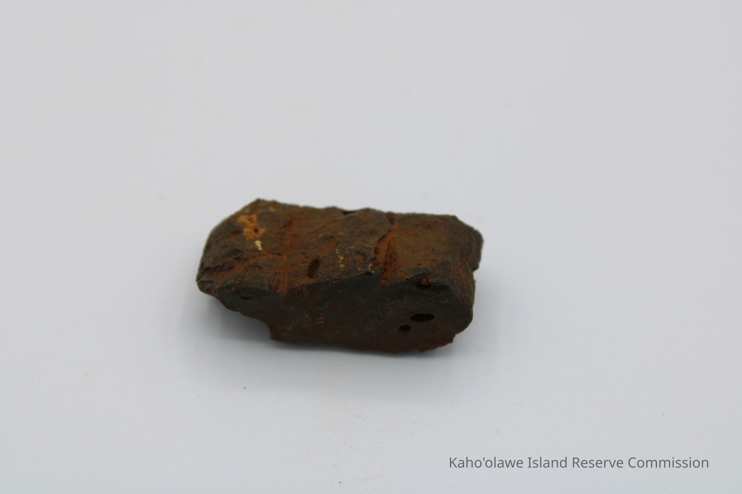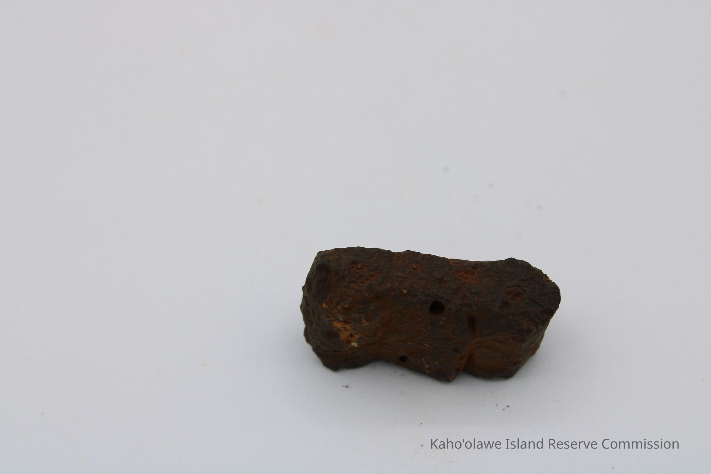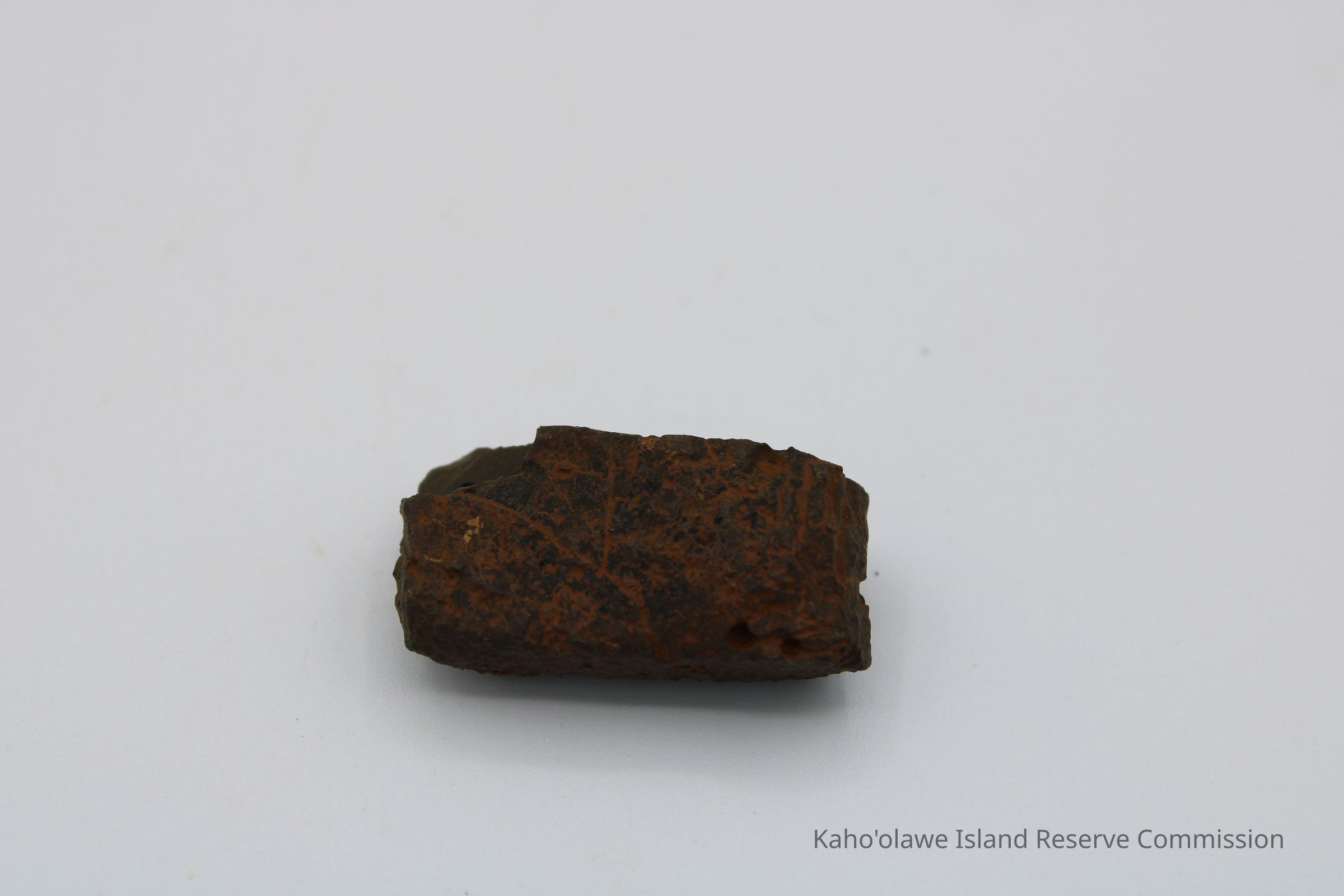 An oblong piece of pāhoehoepahoehoe (smooth, undulating, or ropey lava)/basaltic glass core.Collection