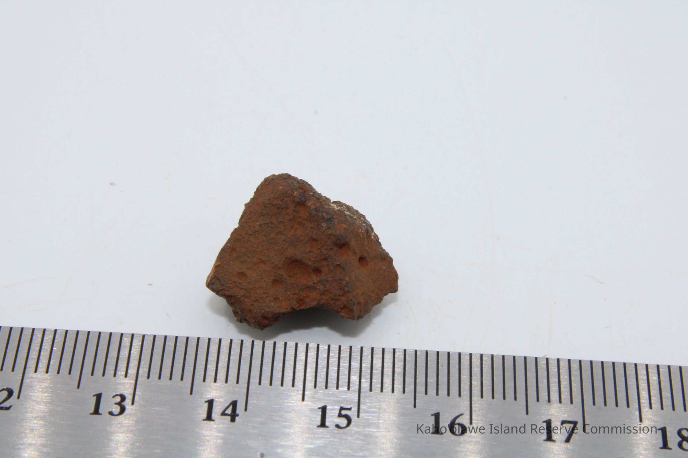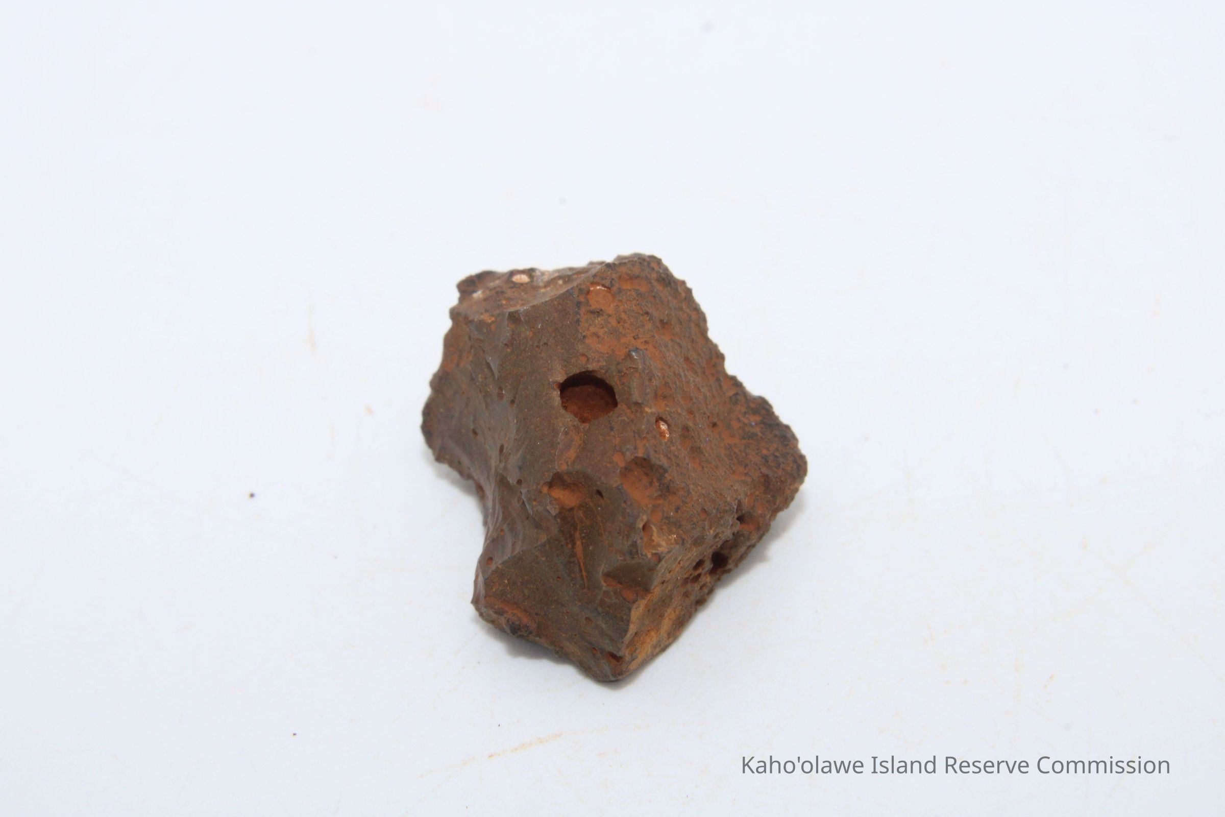 Small, roughly triangular-shaped core of slightly porous basaltic glass.Collection