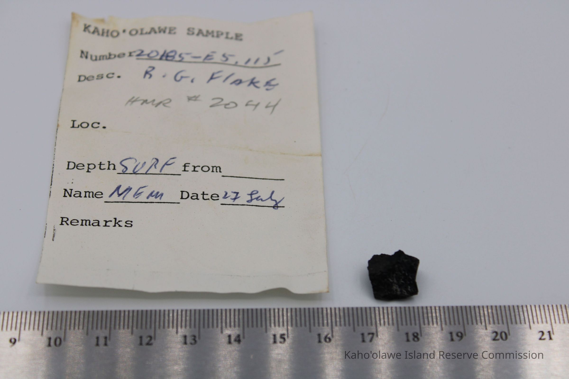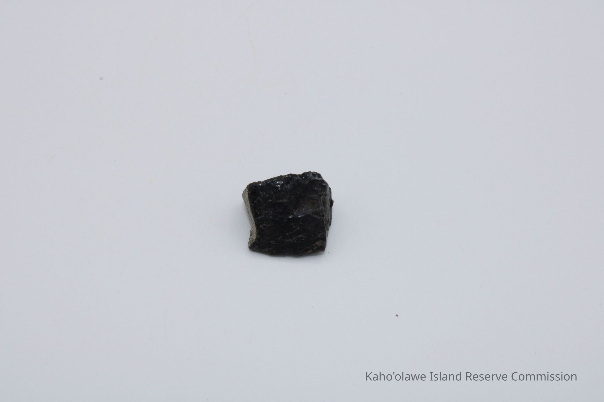 Tiny triangular-shaped shiny flake of basaltic glass.Collection