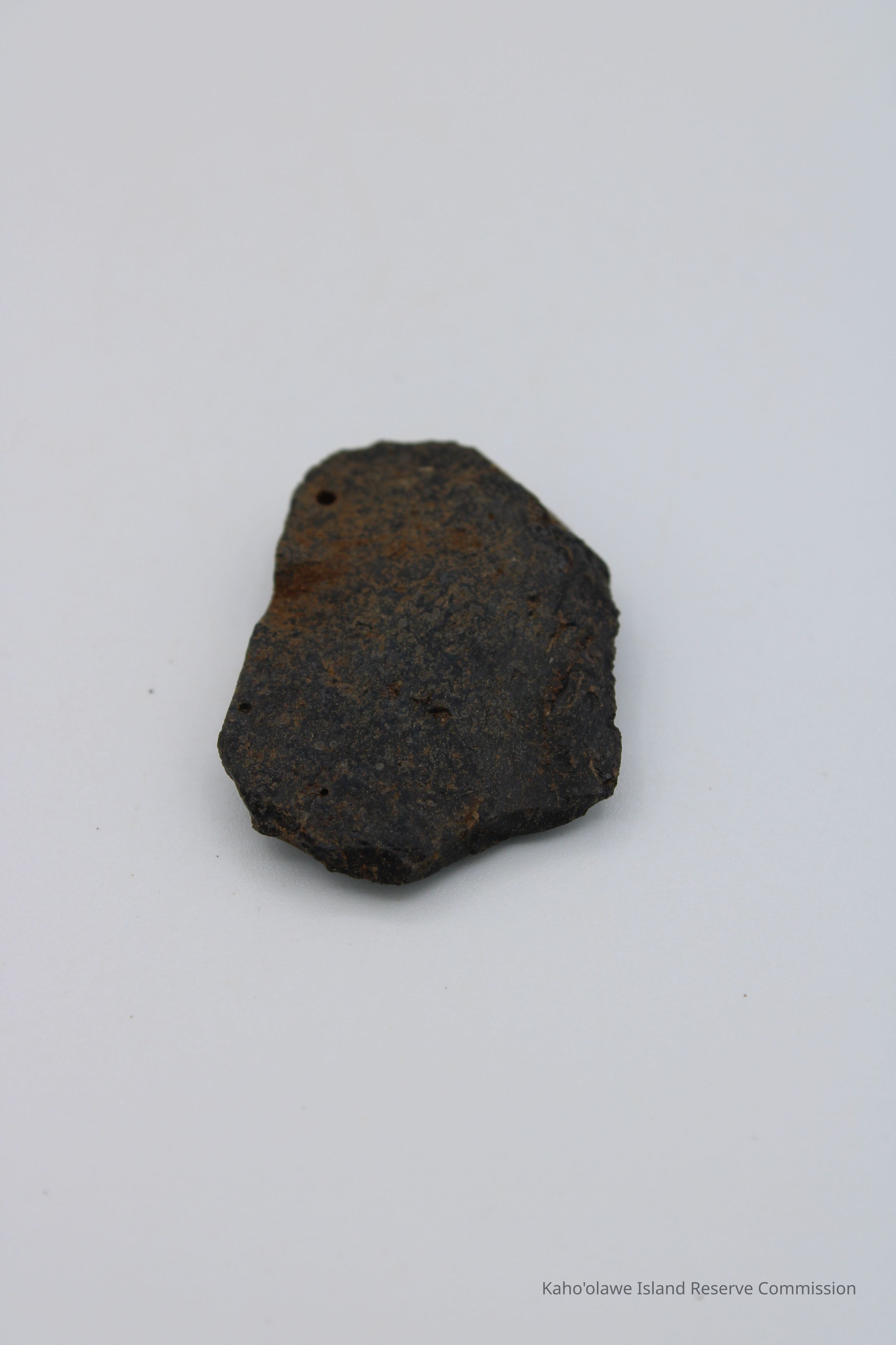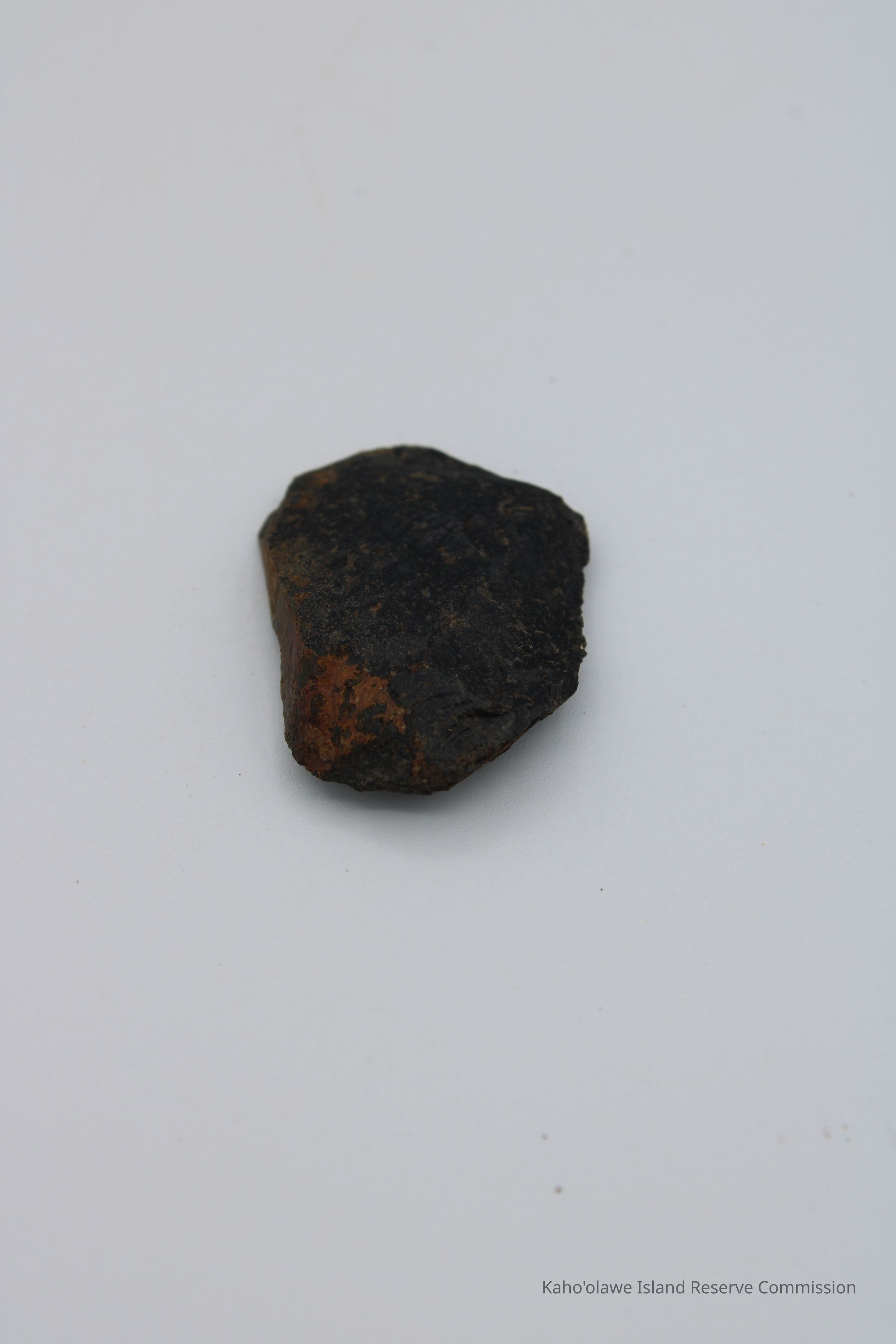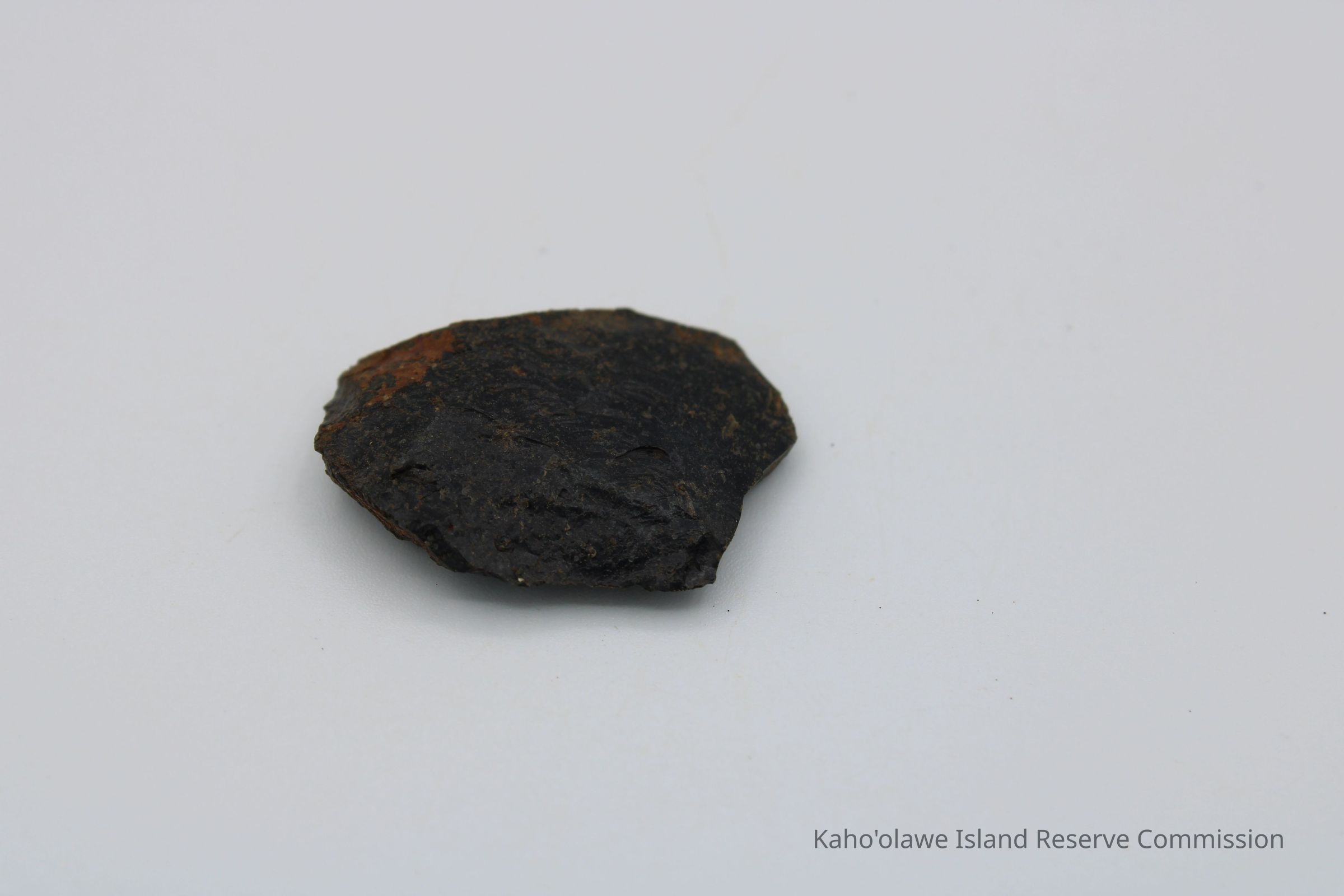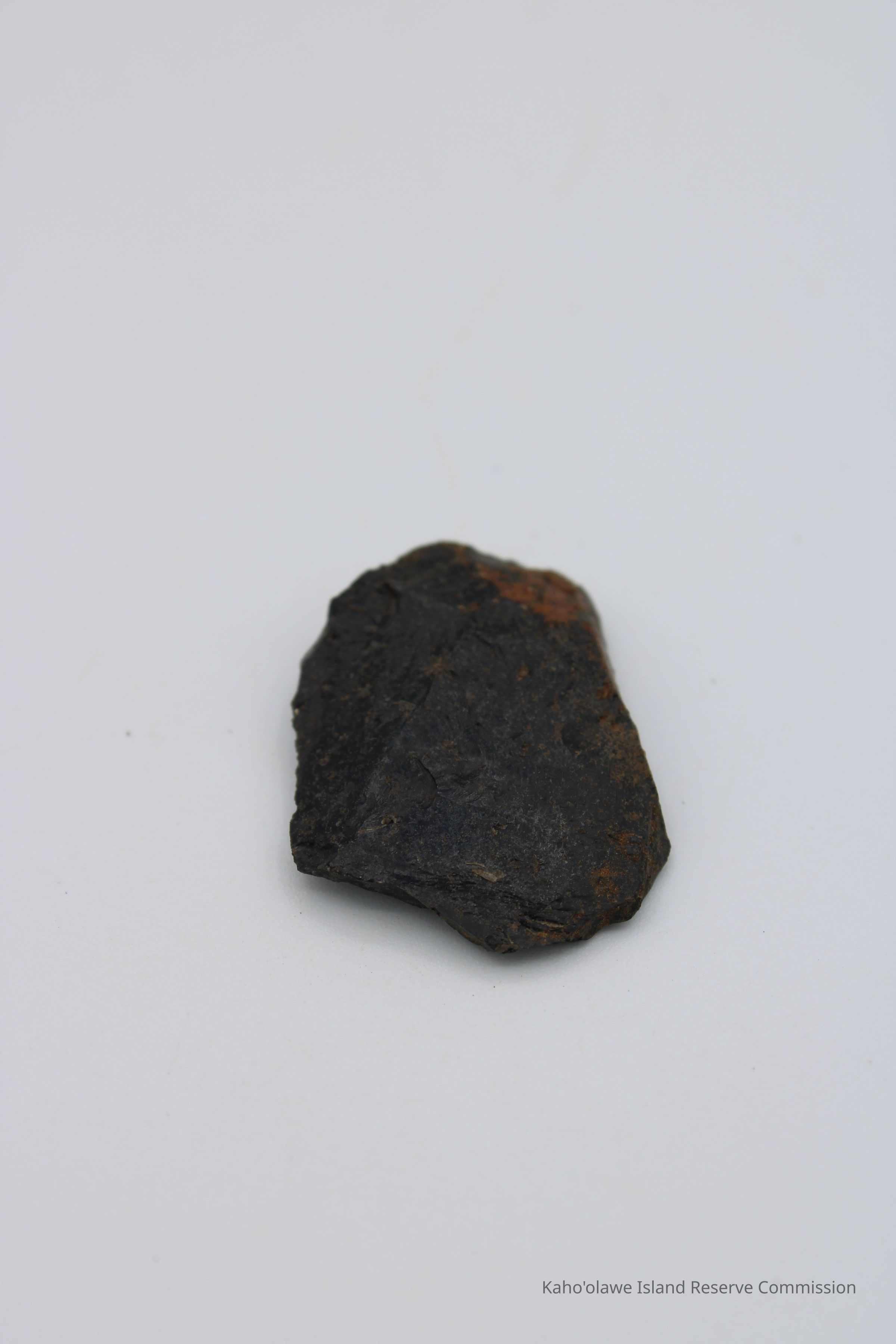 Irregularl-shaped flake of basaltic glass with one semi-sharp point. It appears to have been worked on one side.Collection