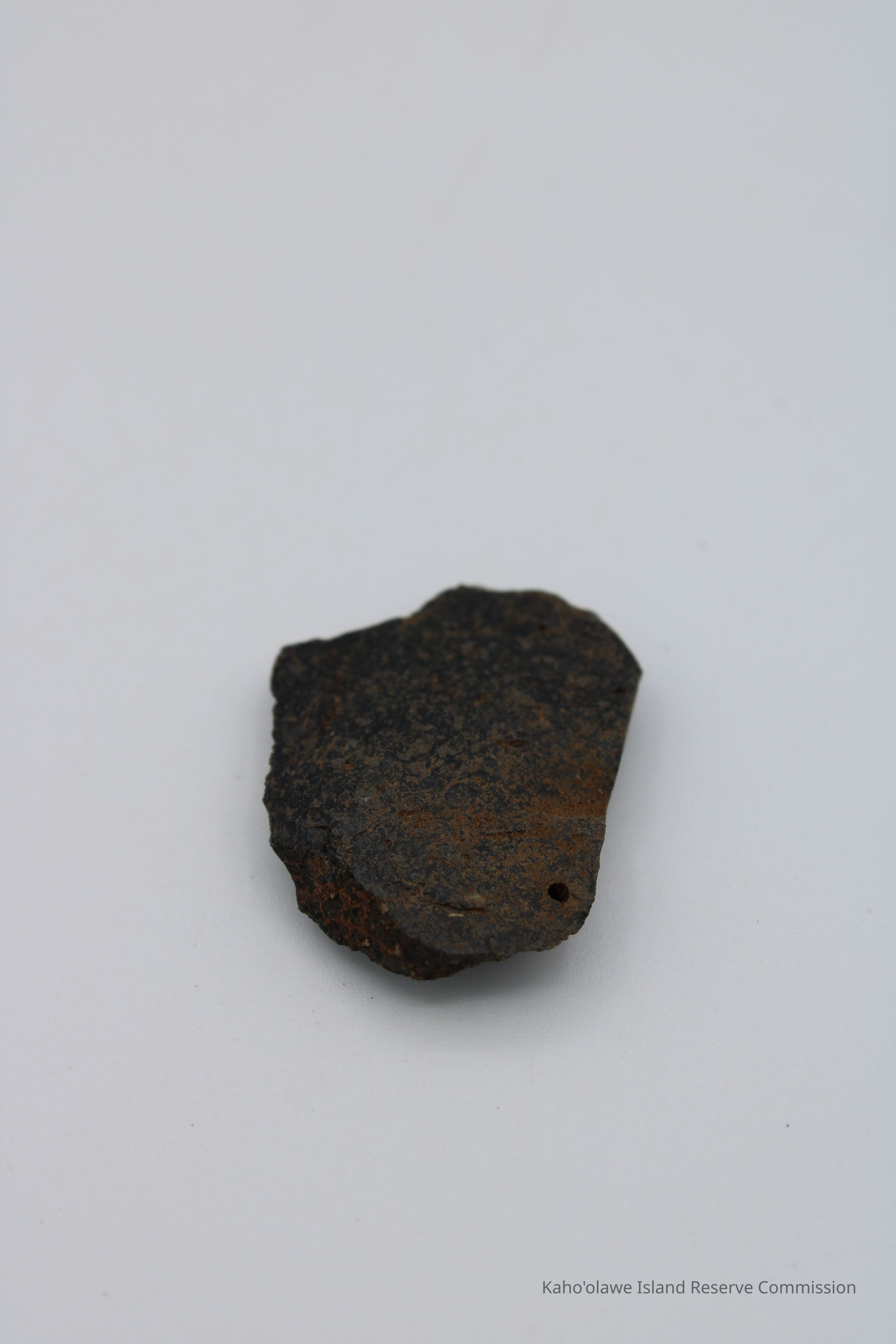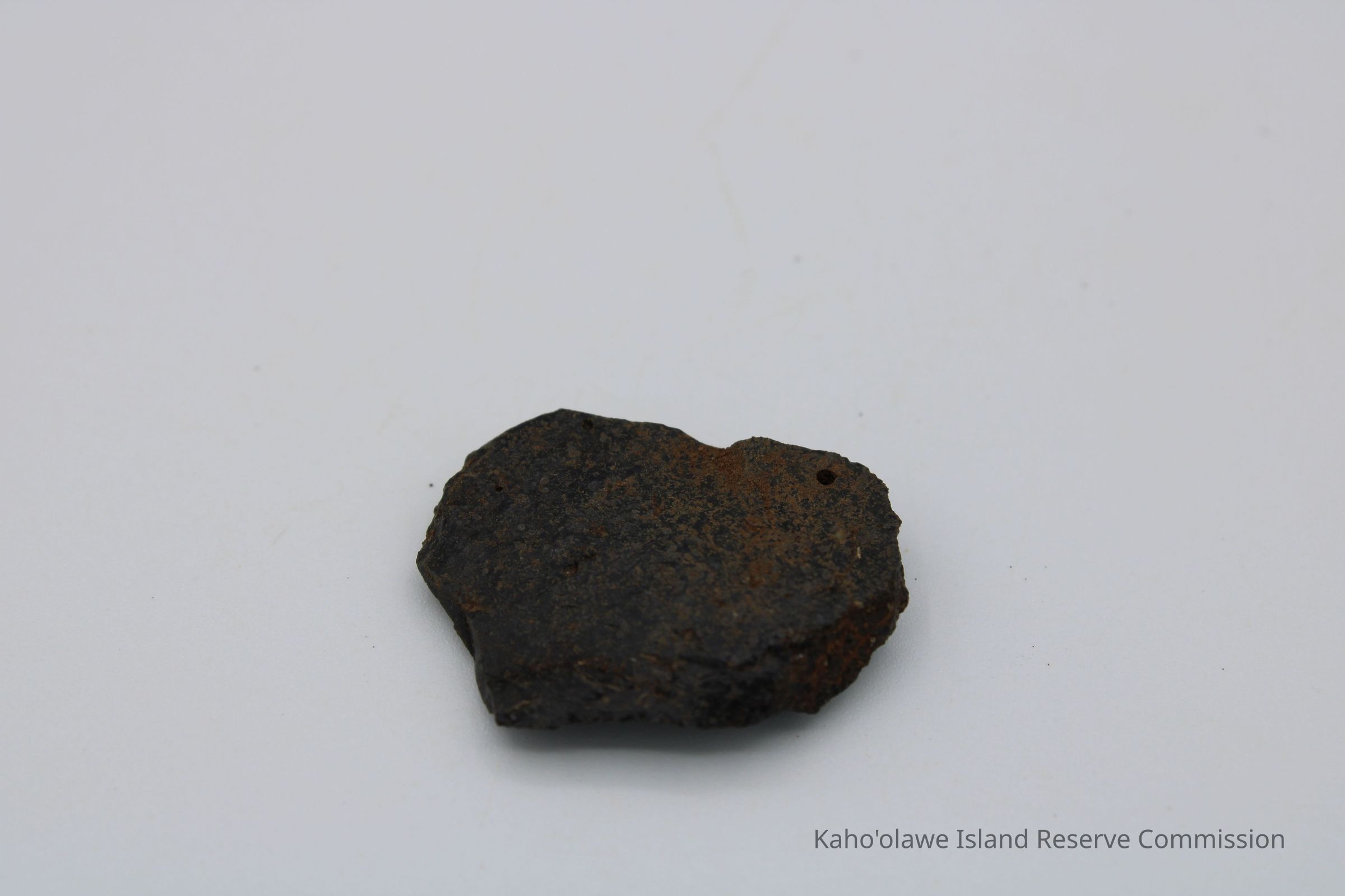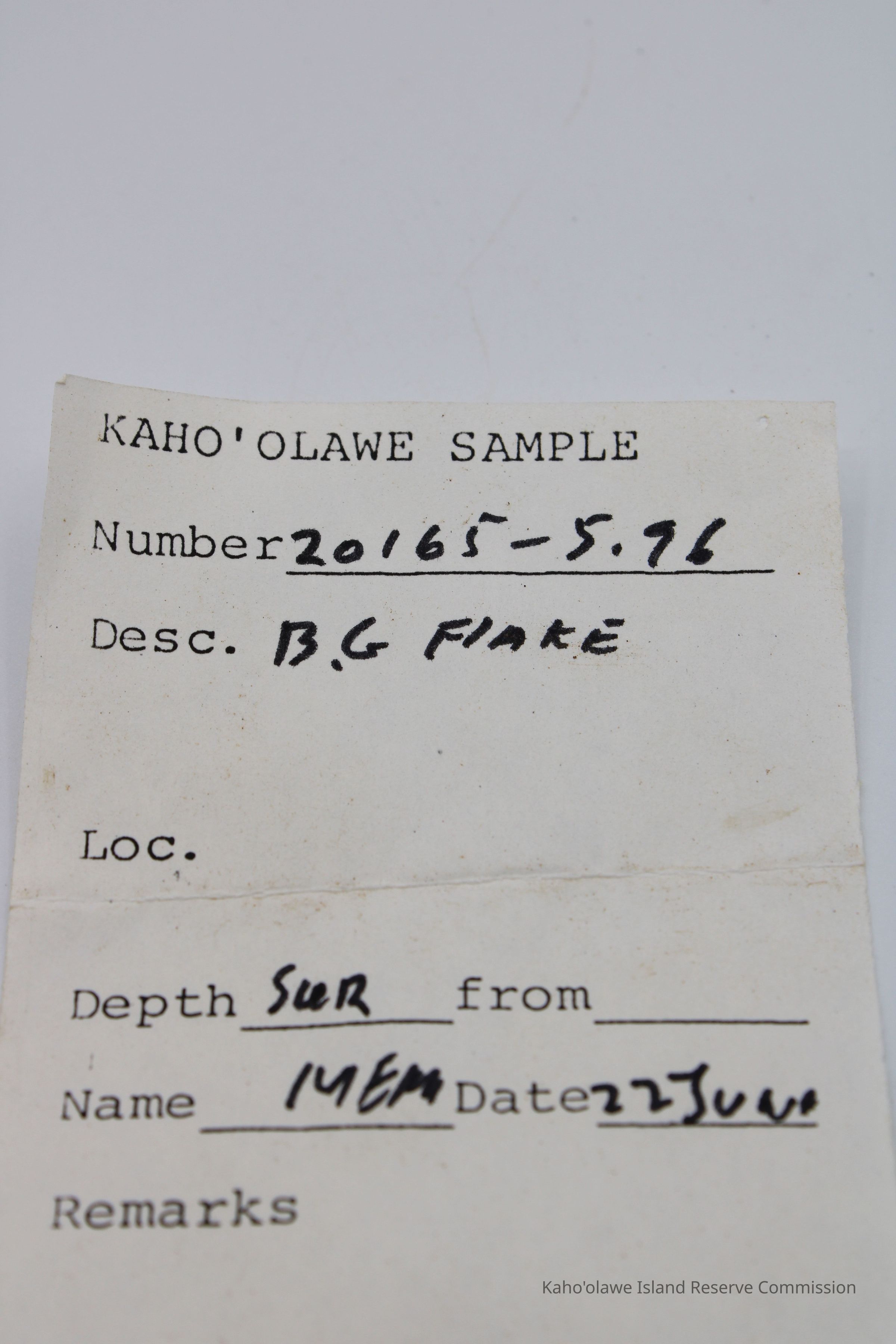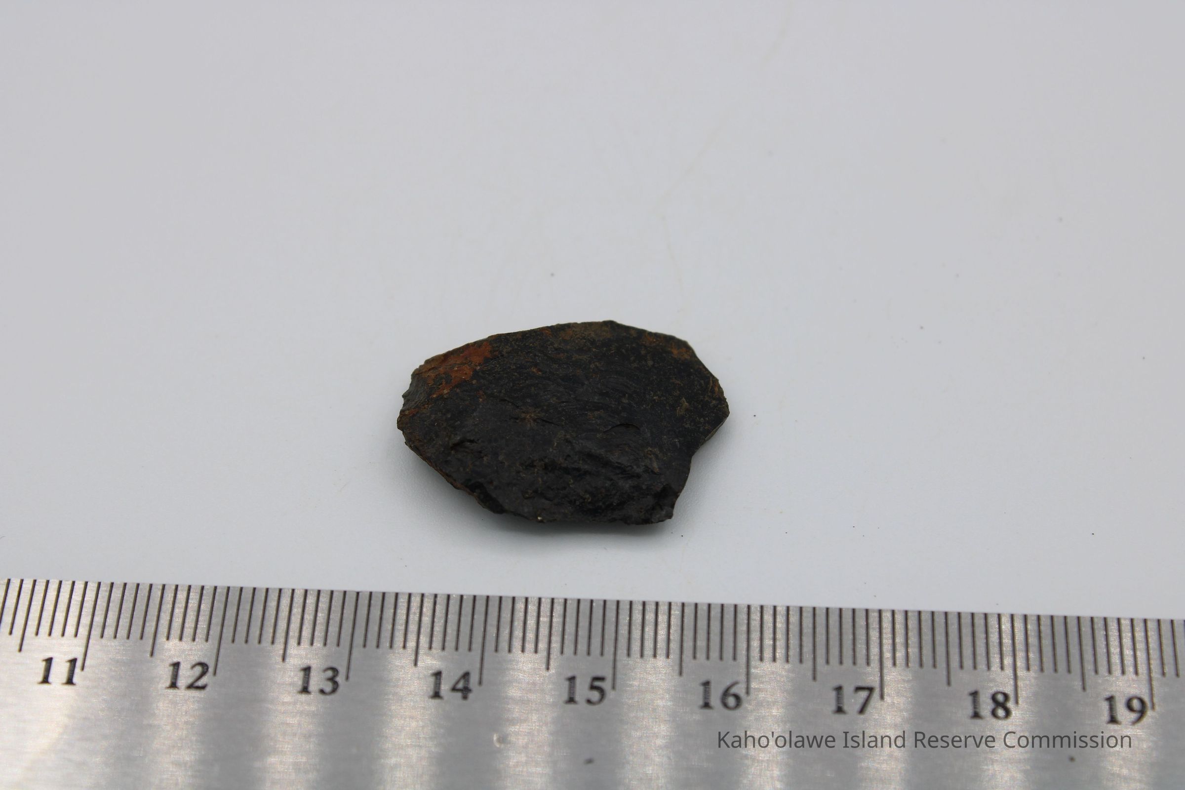 Irregularl-shaped flake of basaltic glass with one semi-sharp point. It appears to have been worked on one side.Collection