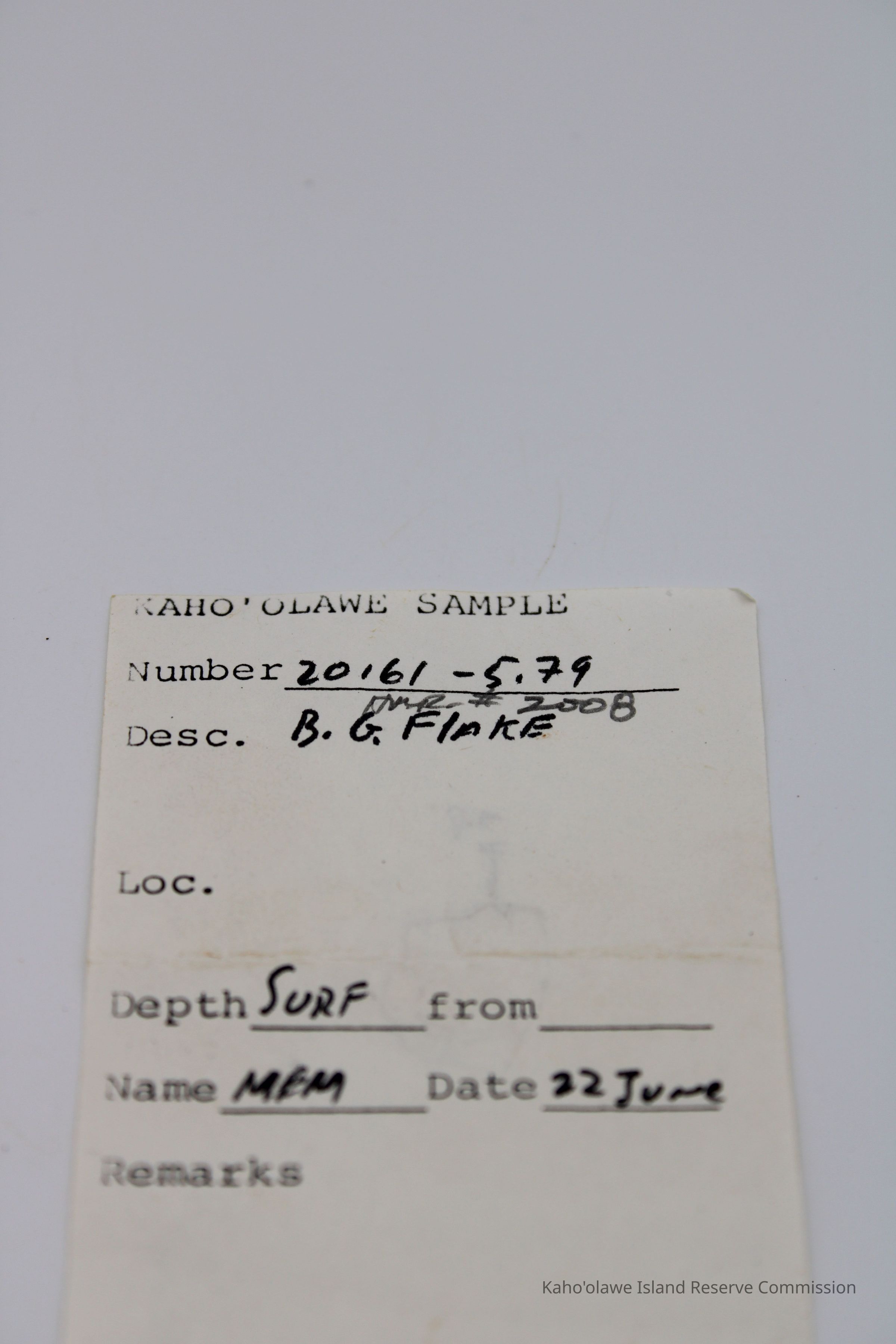 Missing basaltic glass flake. Only artifact slip is in the collection.Collection