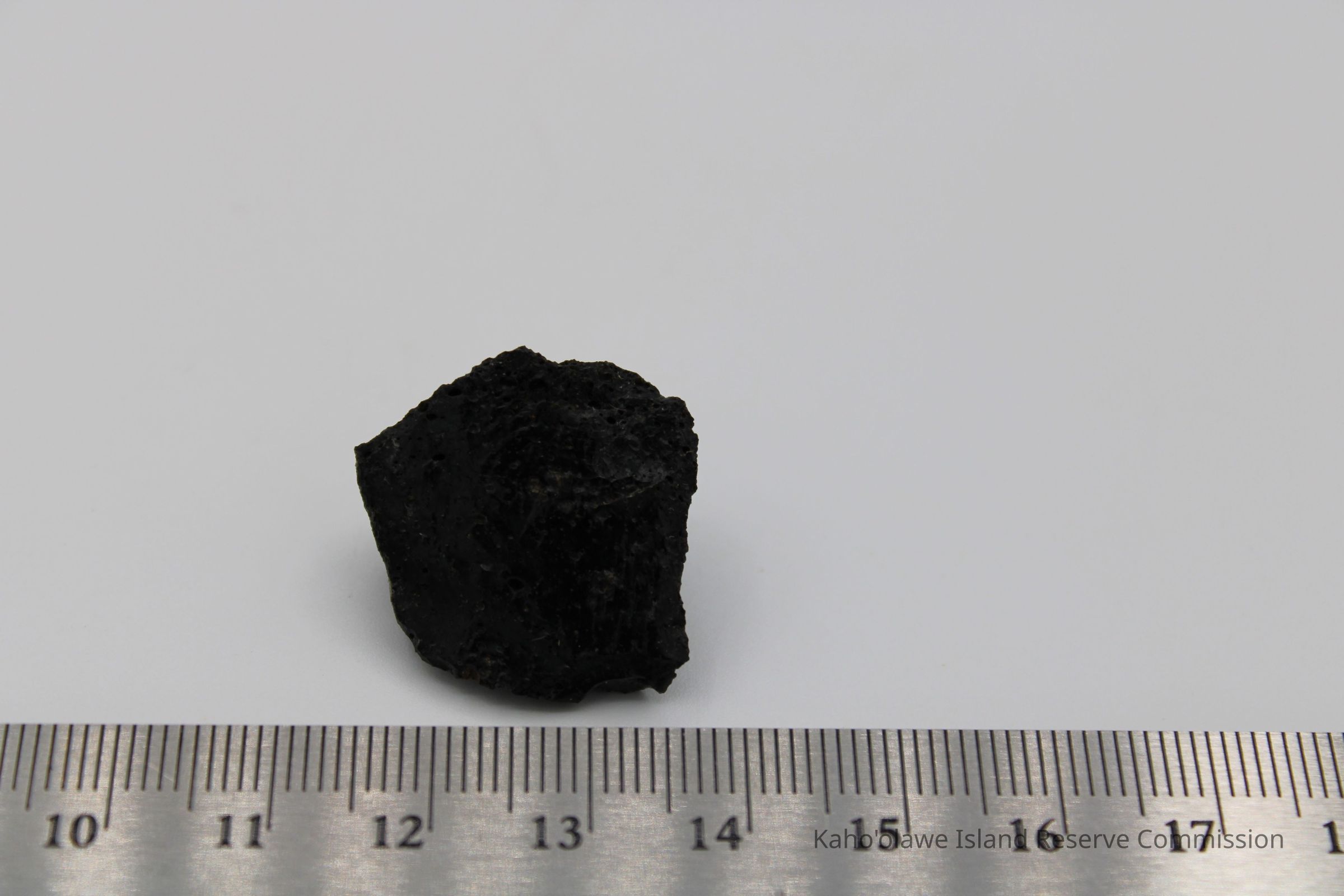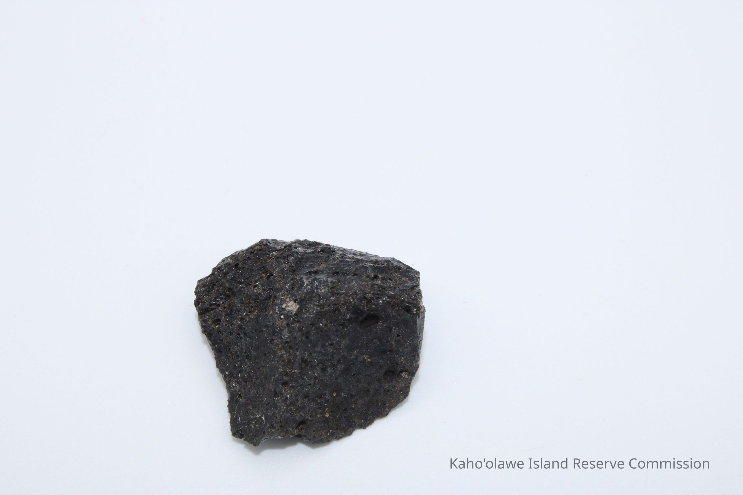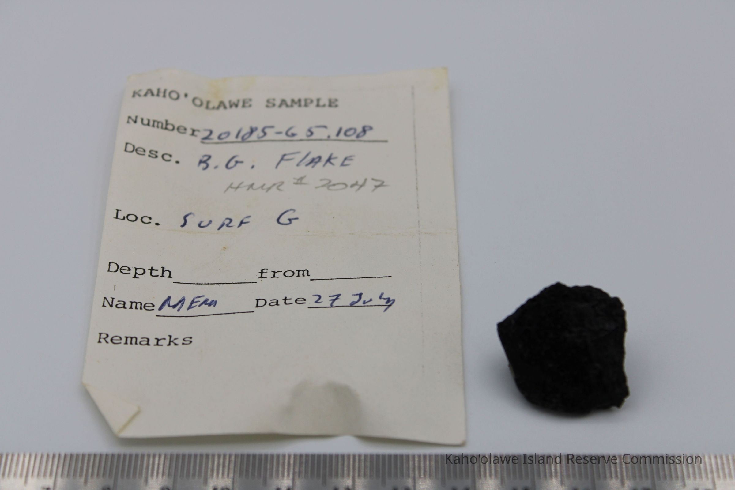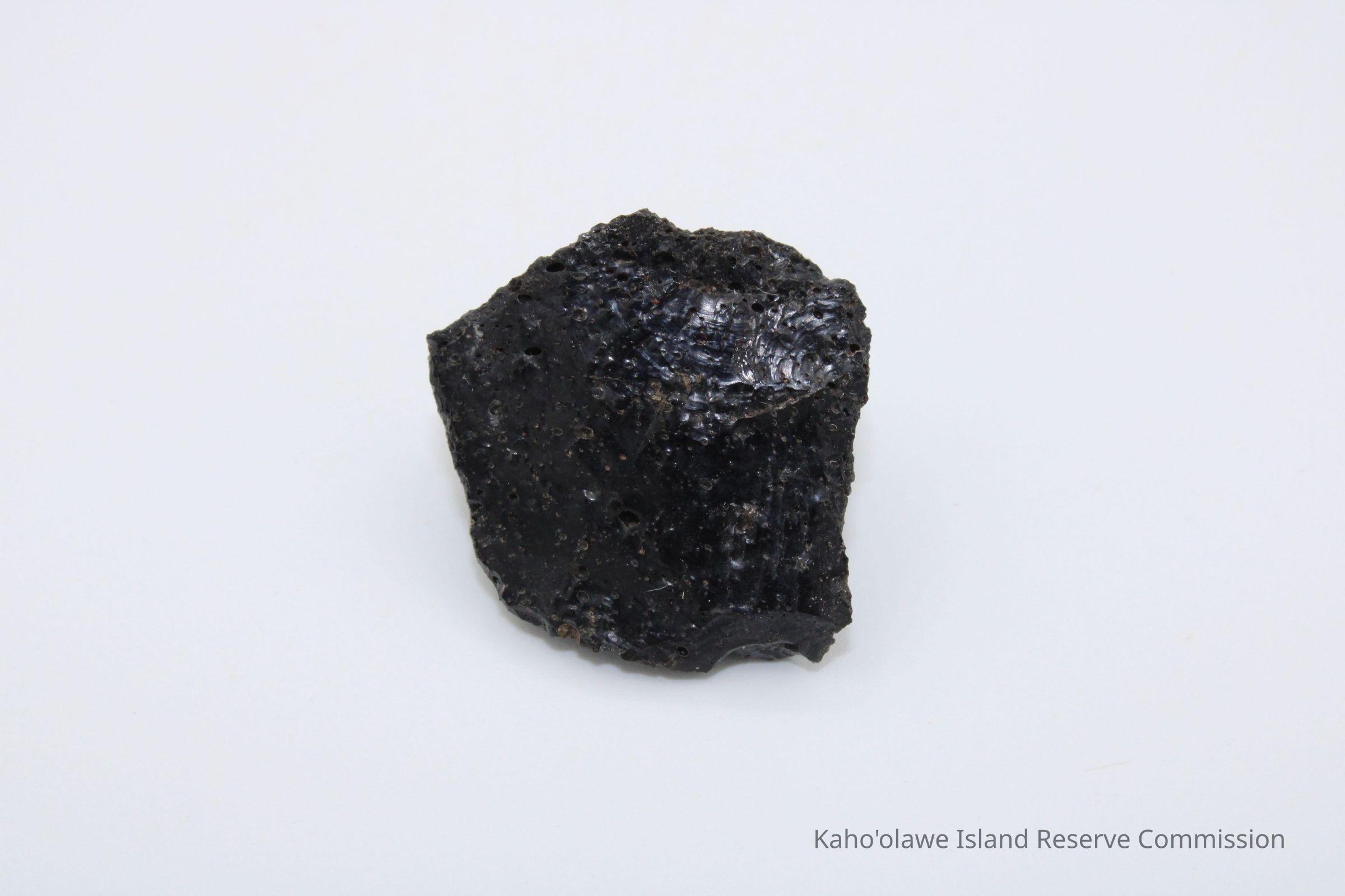 Pentagon-shaped thick flake of basaltic glass; appears to have been worked on one sideCollection