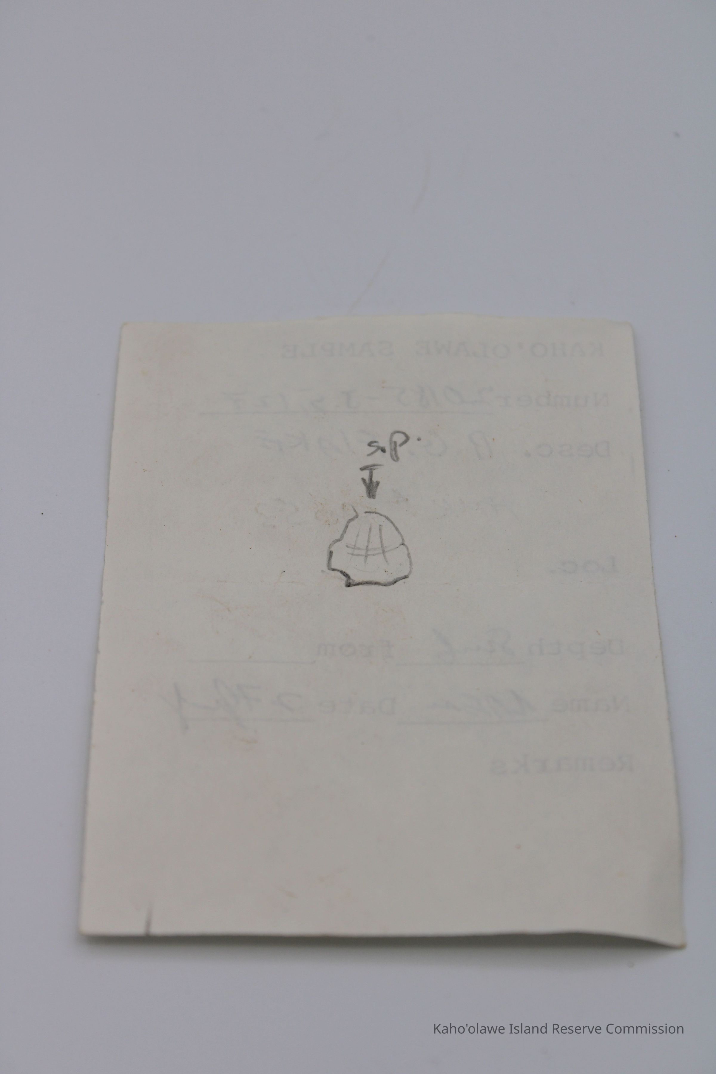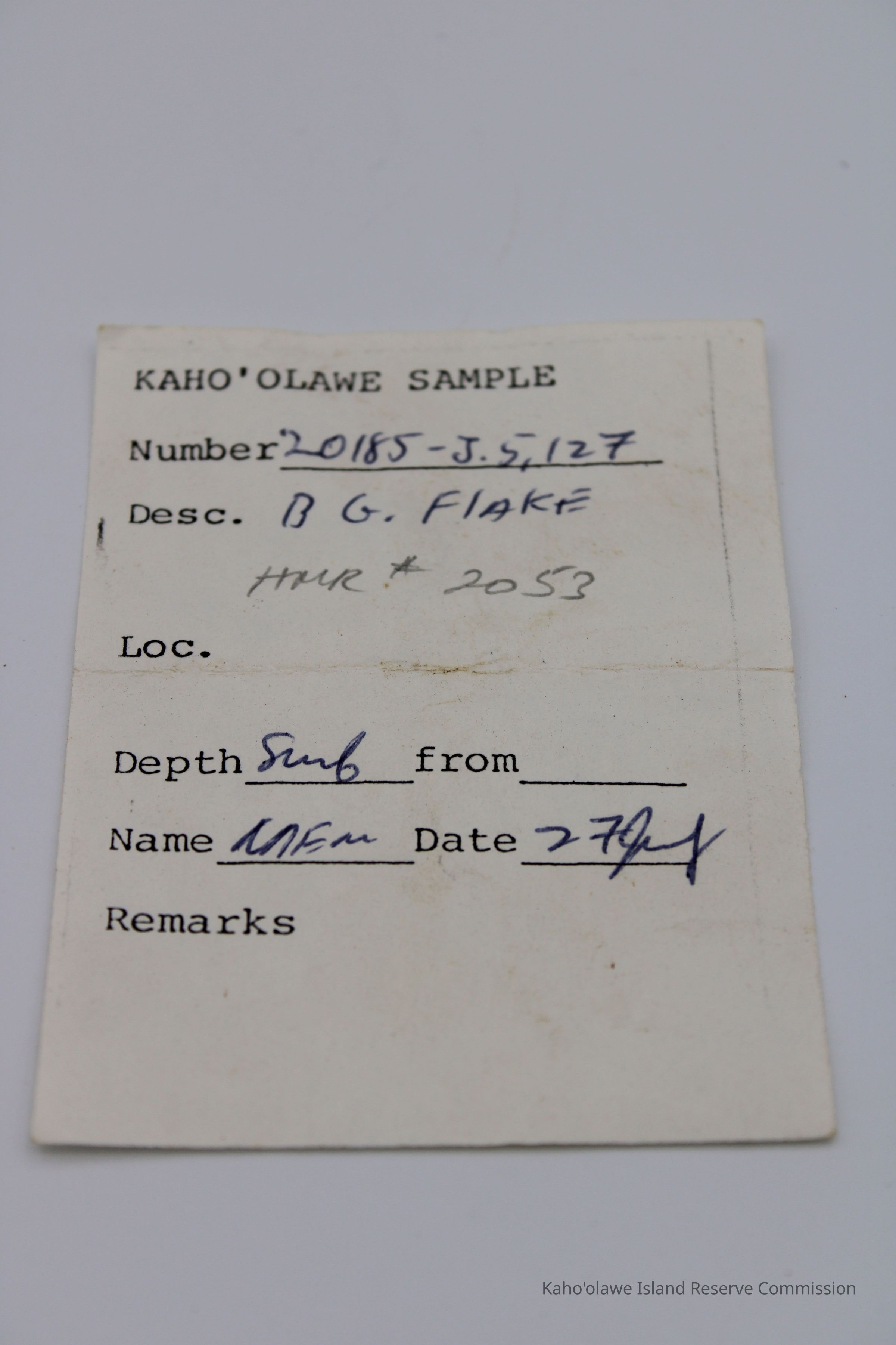 Basaltic glass flake; object missing--possibly removed for analysis.Collection