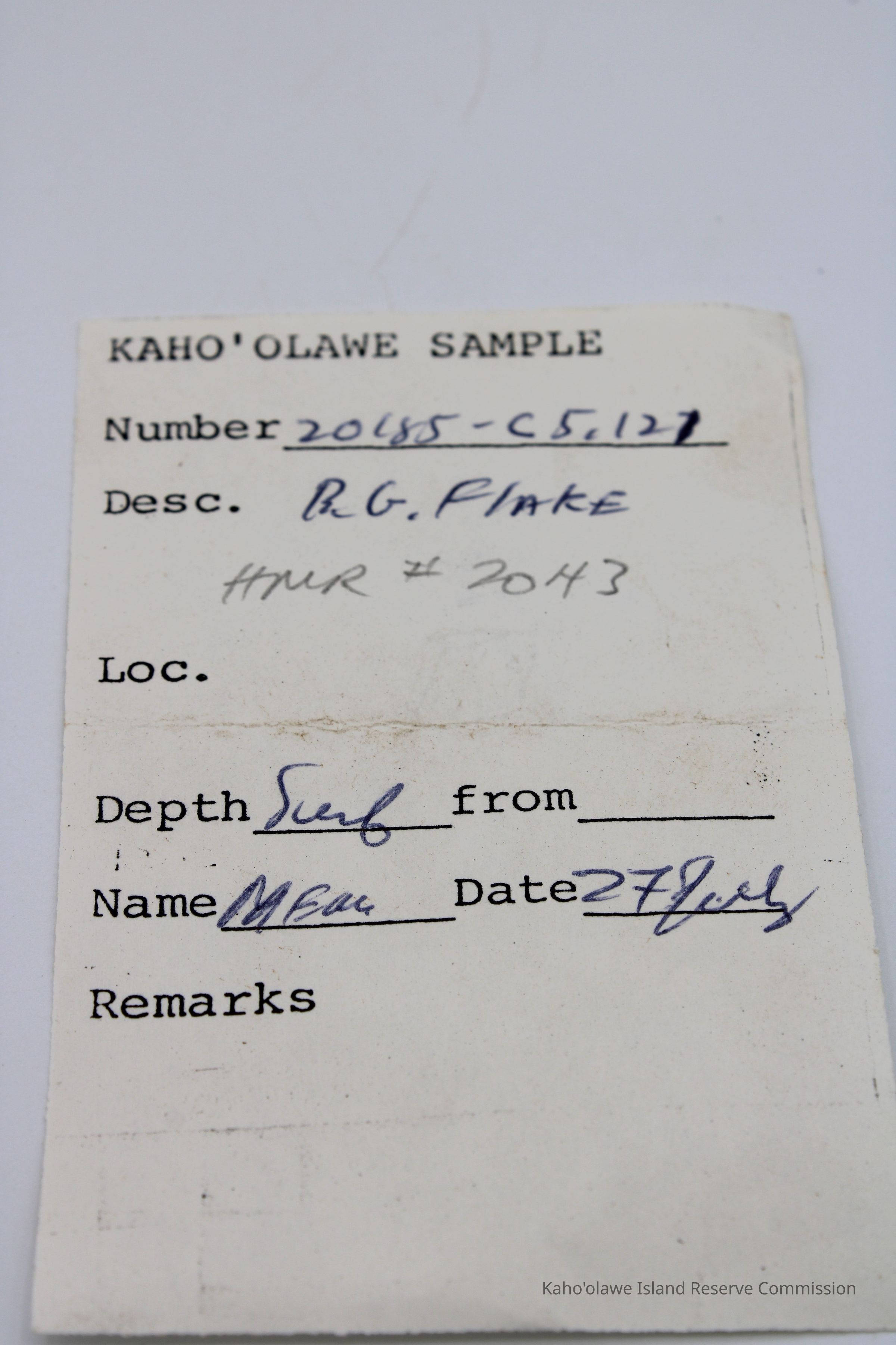 Basaltic glass flake. Missing--may have been submitted for analysis.Collection