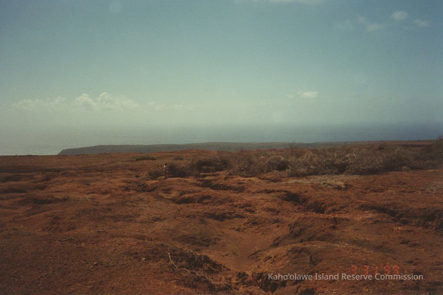 A far off photo of a brush pile with an unidentified person southeast of Luamakika with Lae 'O Halona in the background.Collection