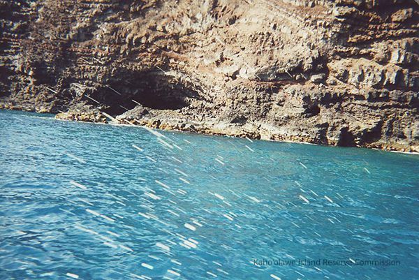 Color photo of a sea cave within coastline of Kaho'olawe.