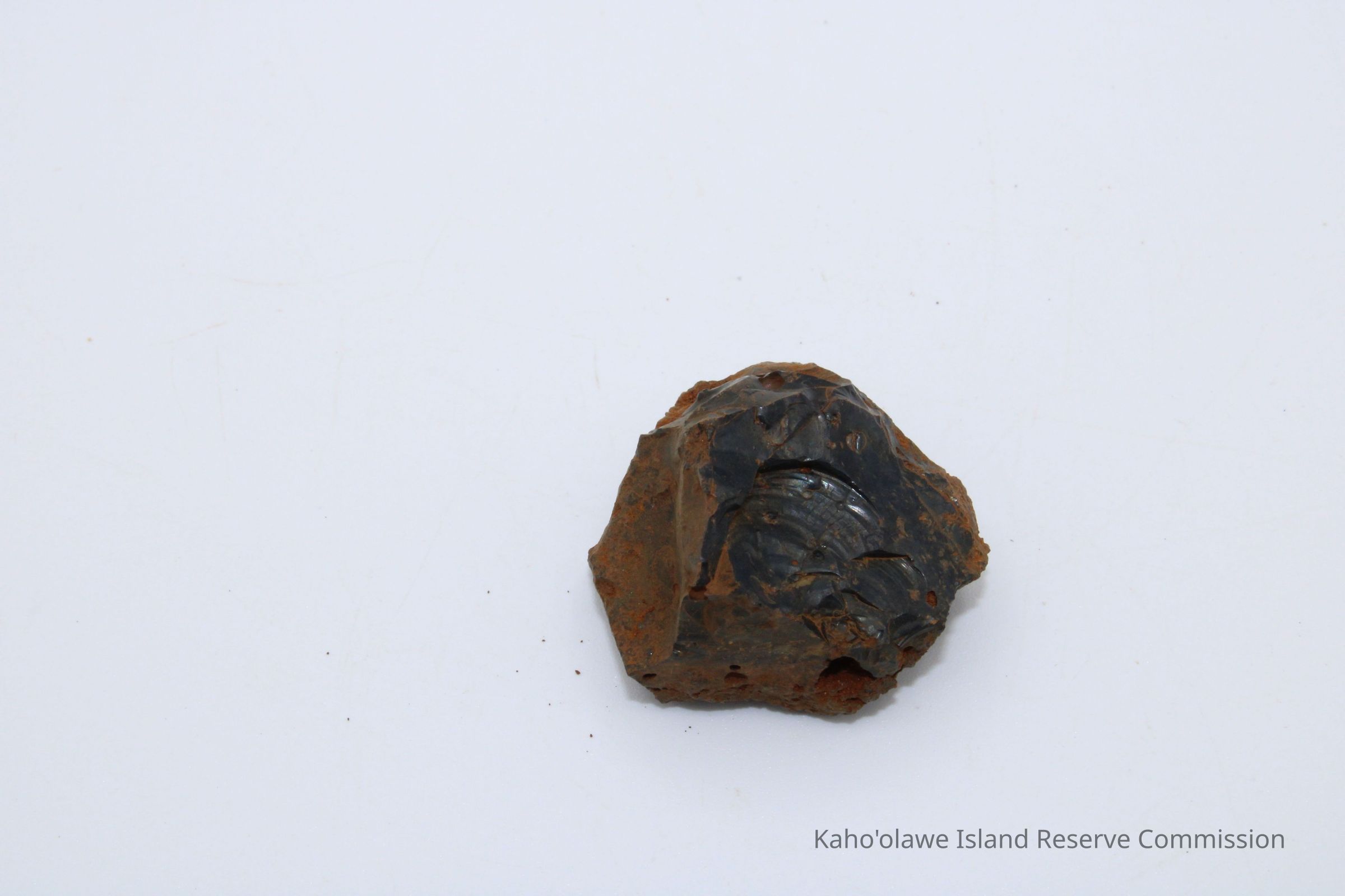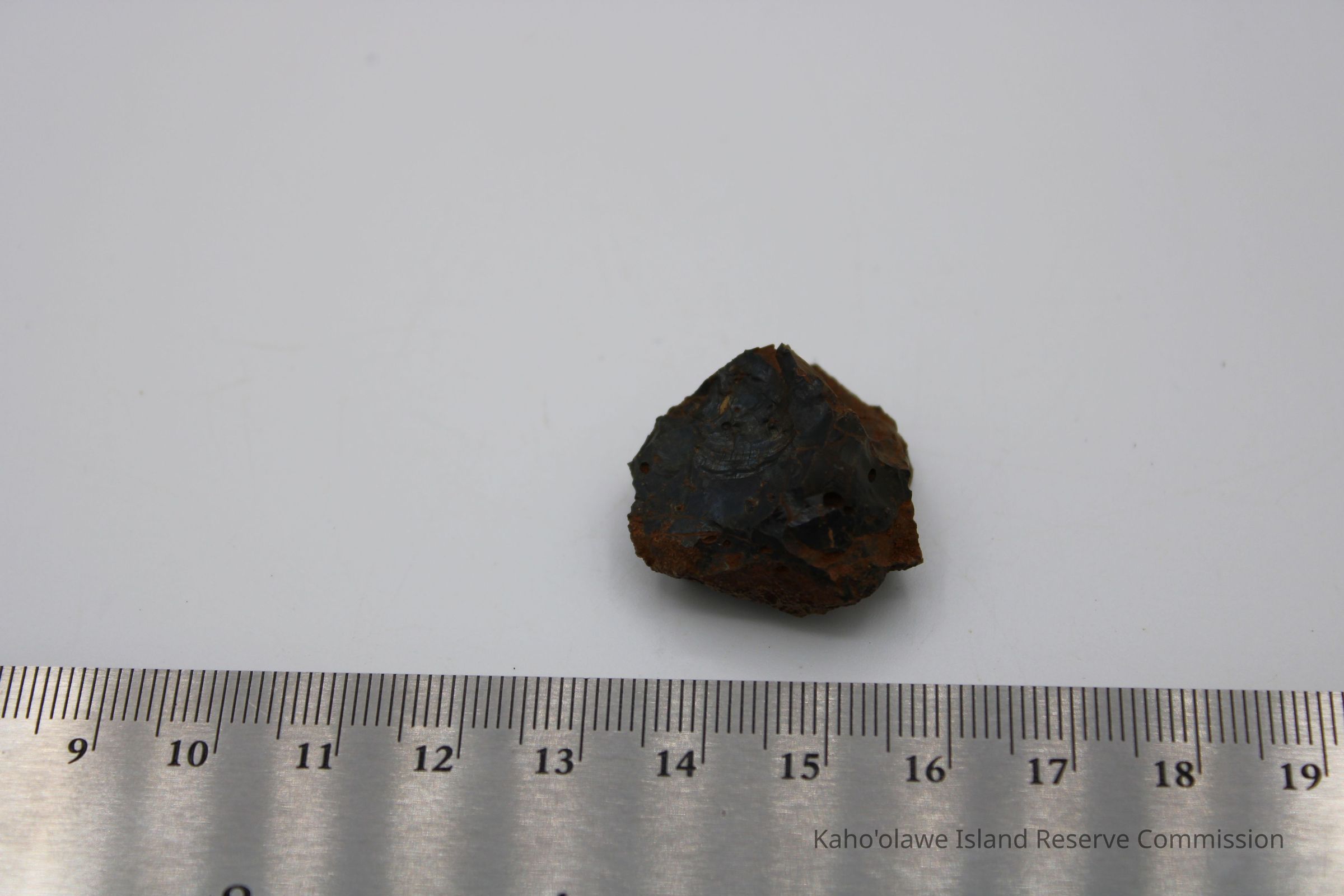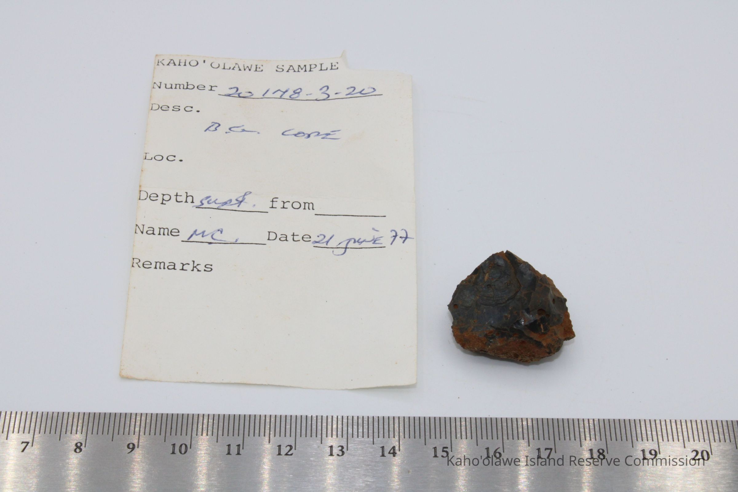 Roughly circular core of basaltic glass. Collected with soil temperature of 26 degrees at 10:00 am.Collection