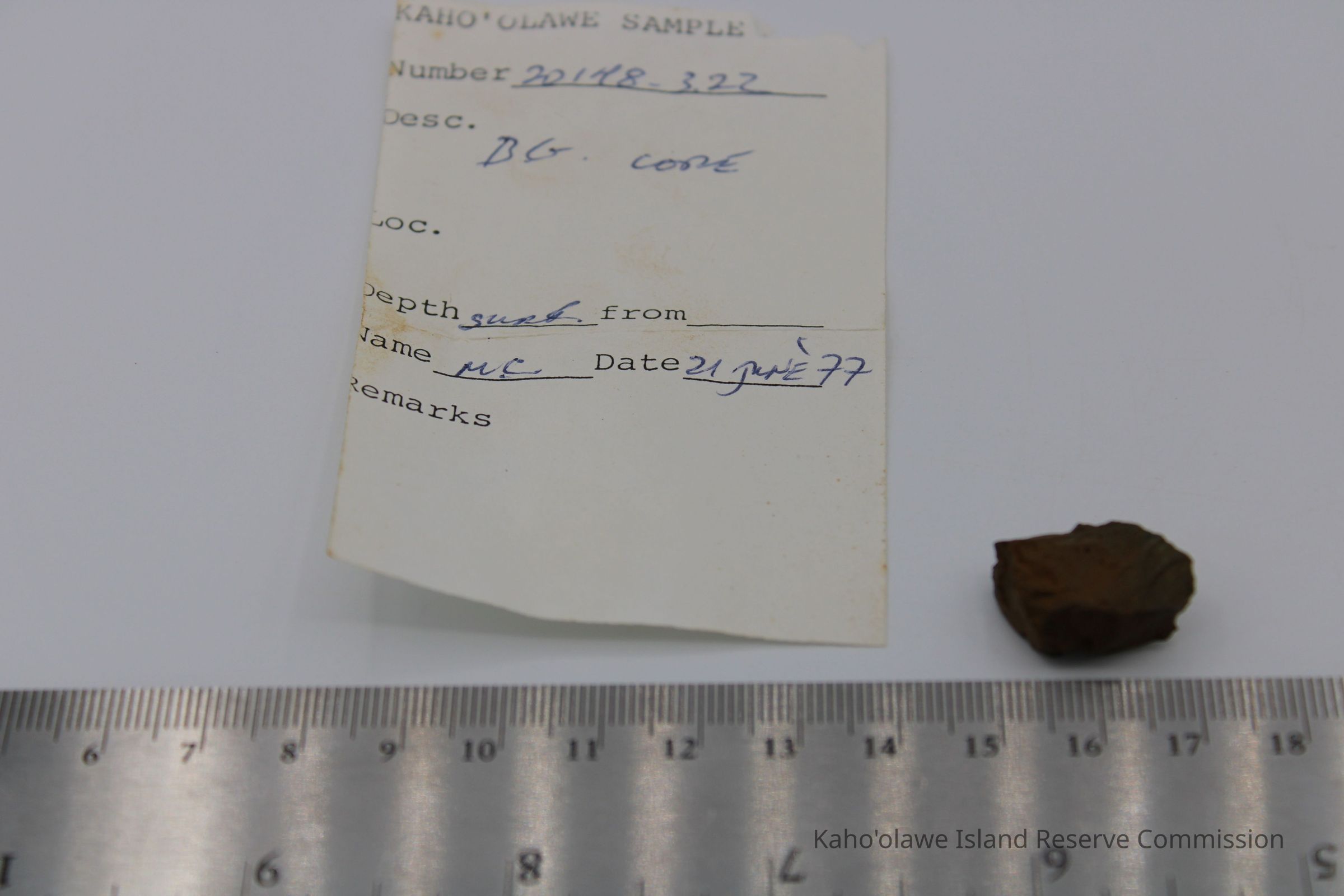 Irregularly shaped basaltic glass core with one worked edge. Collected at 10:00 am with soild temperature of 26 degree C.Collection