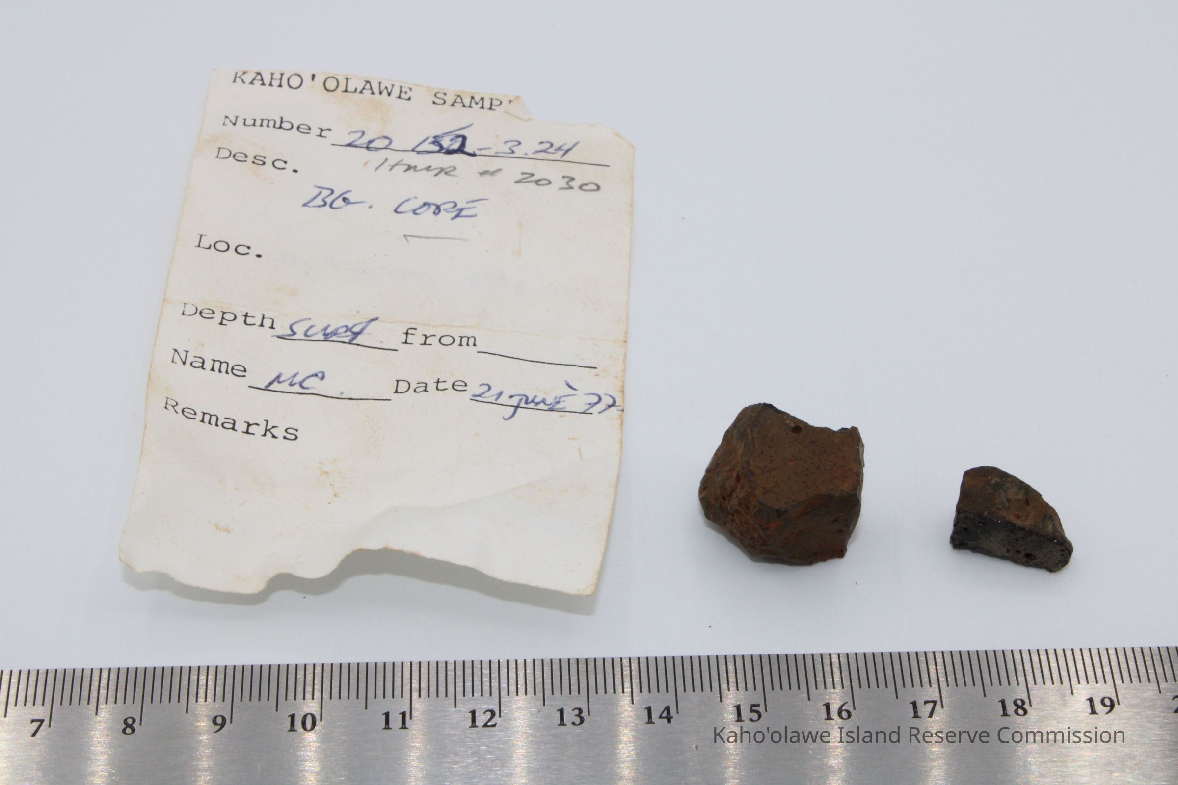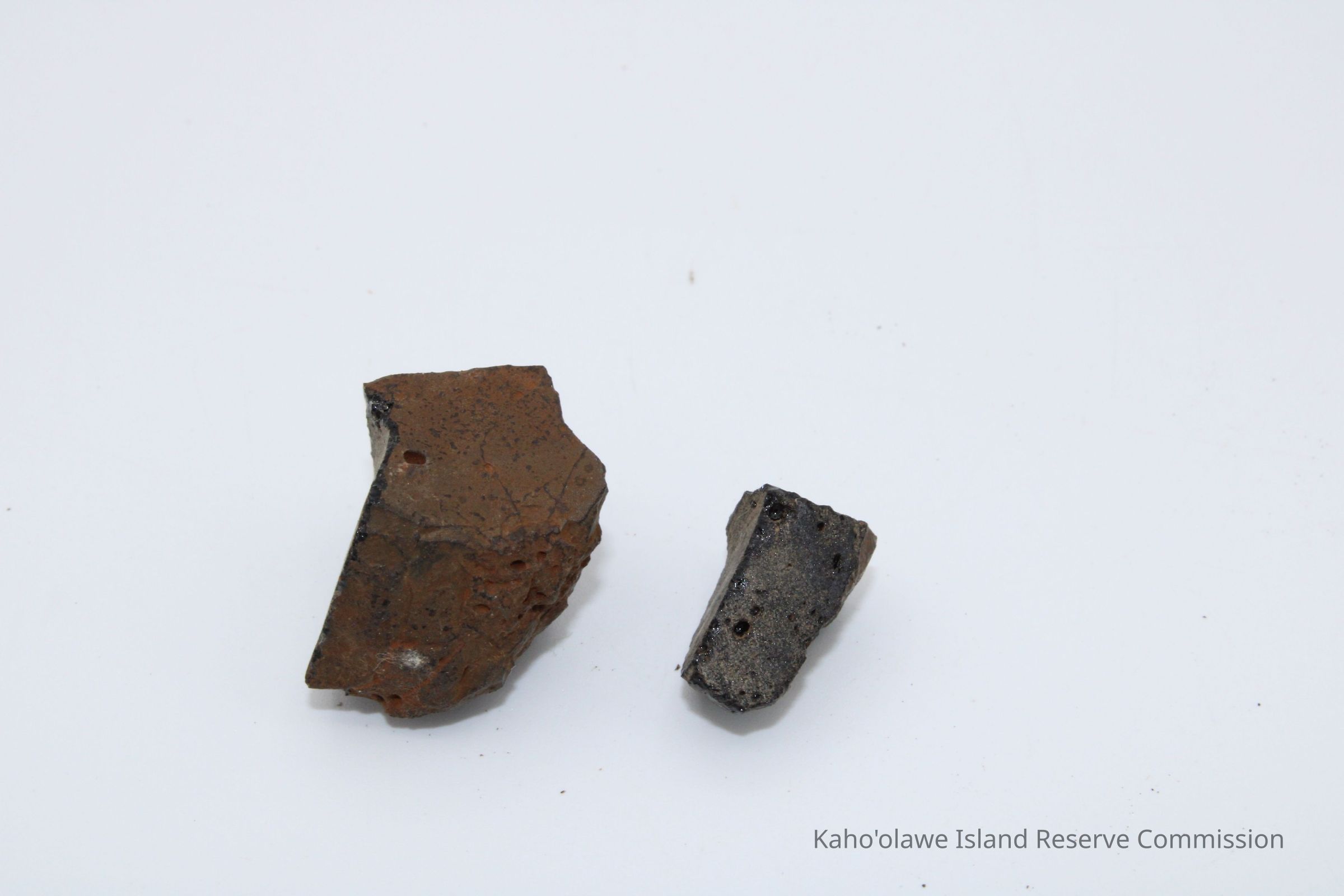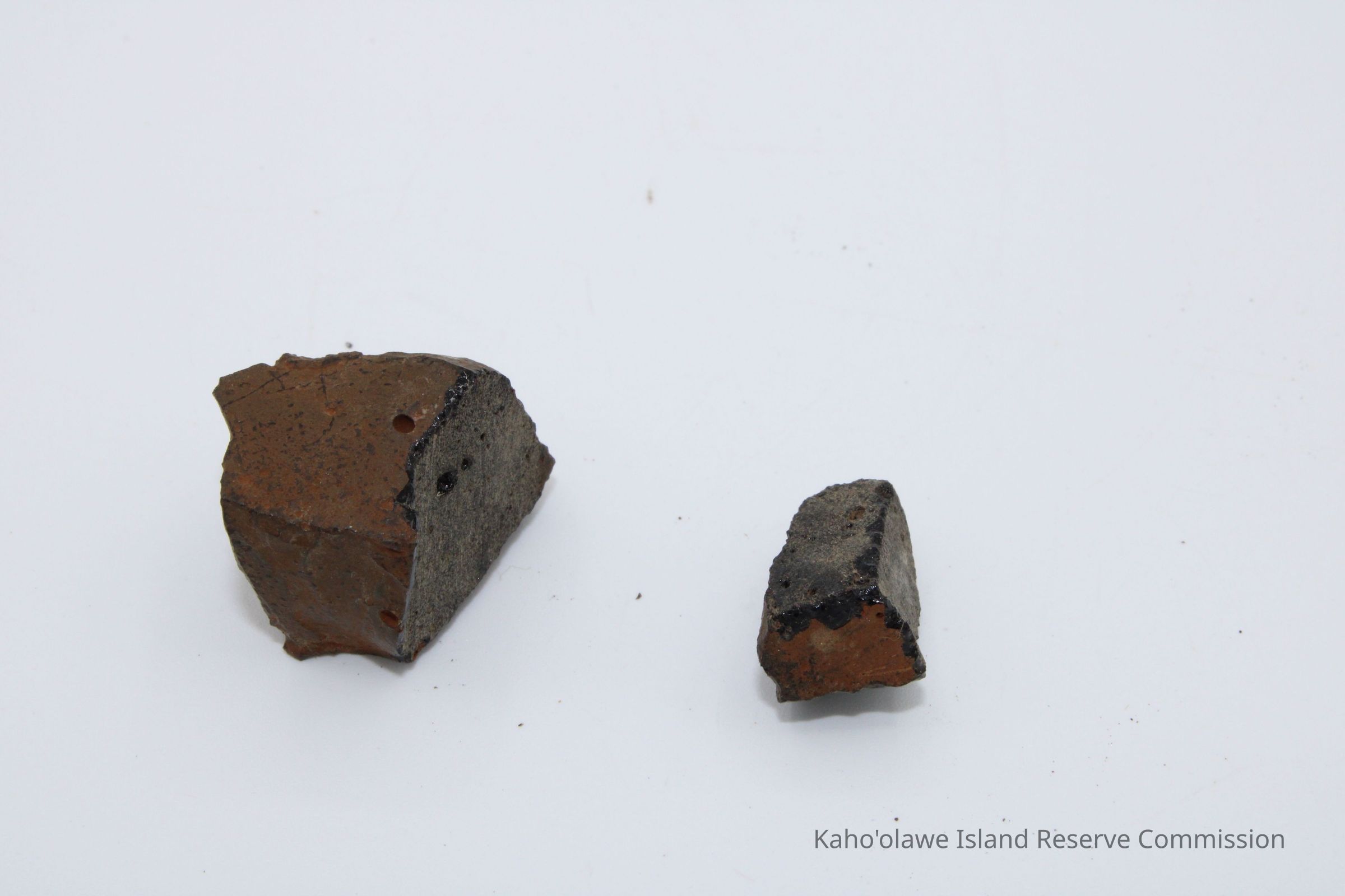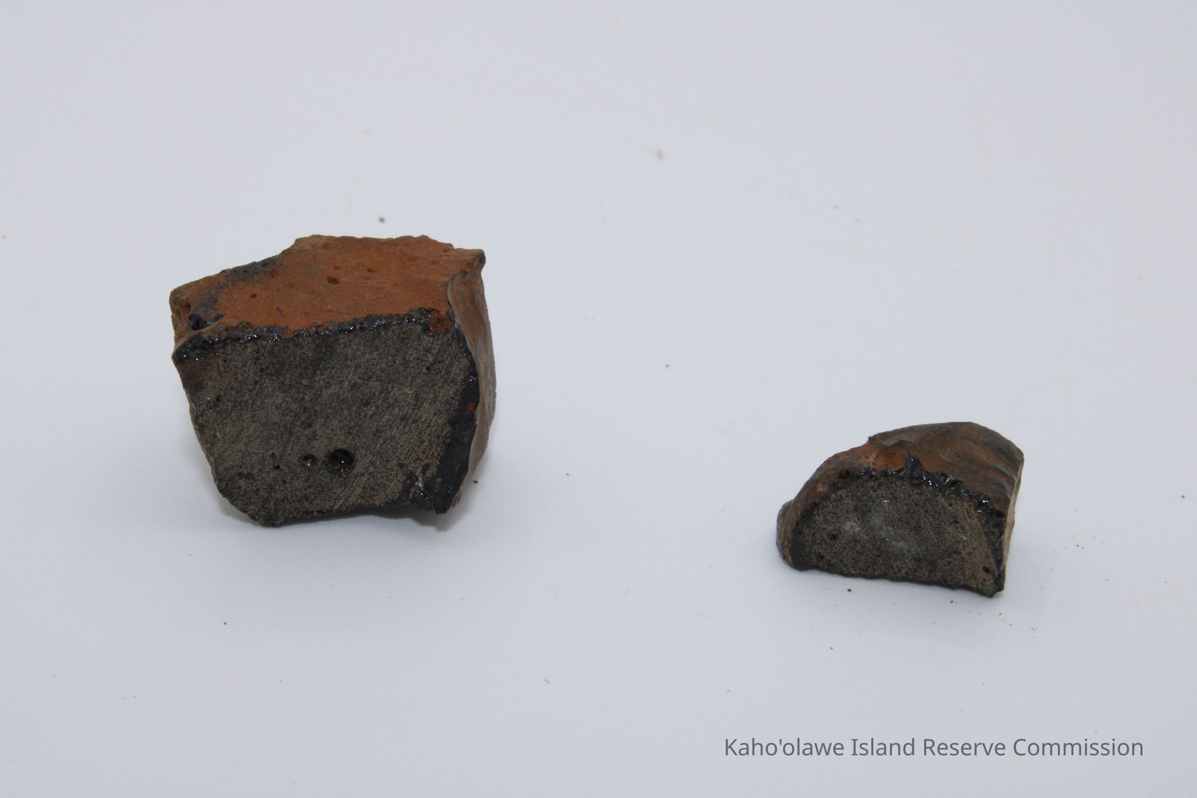 Two irregularly shpaed cores of basaltic glass. The piecess seem to be unrelated. Both were collected at 11:30 am with soil temperature of 26 degree C.Collection