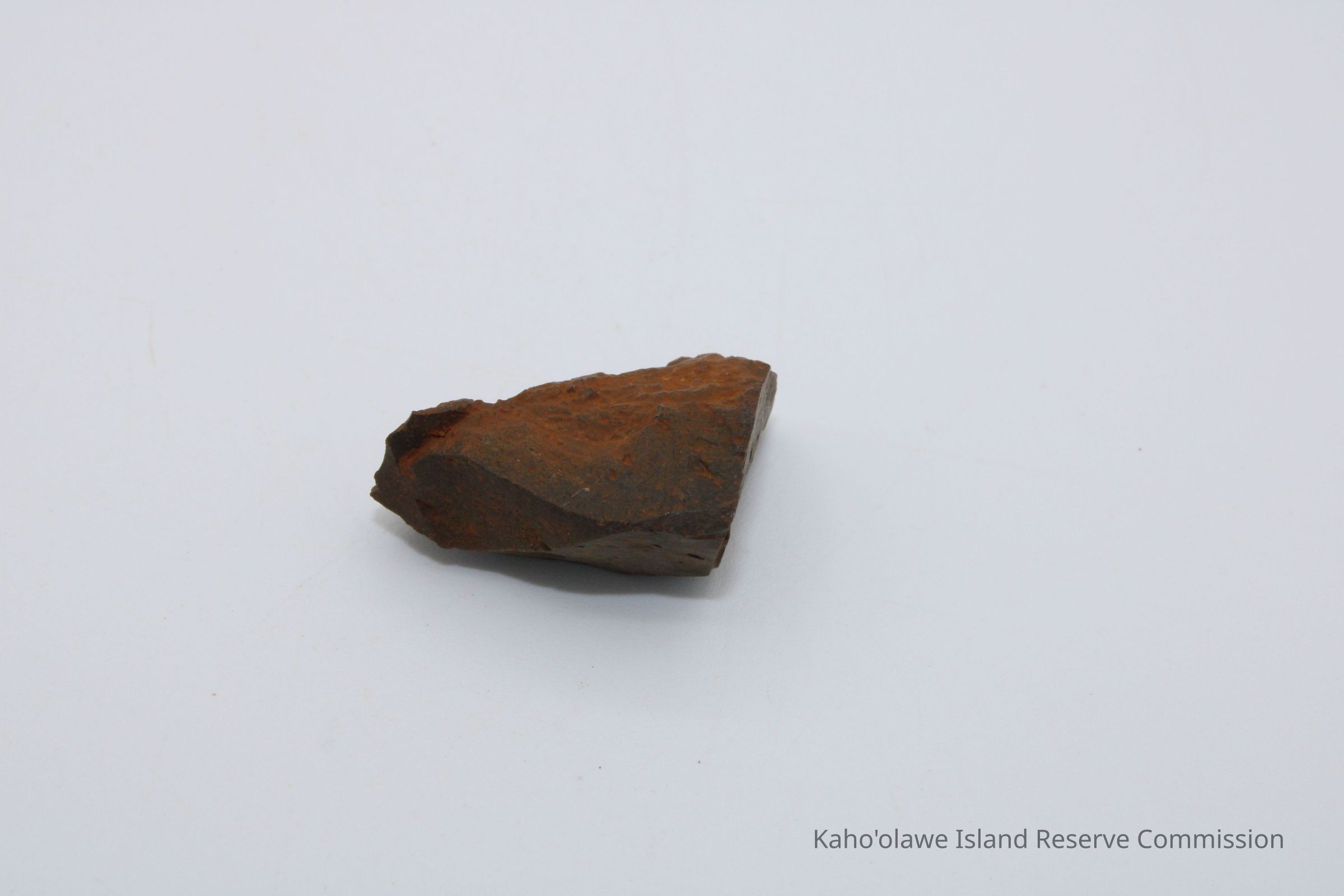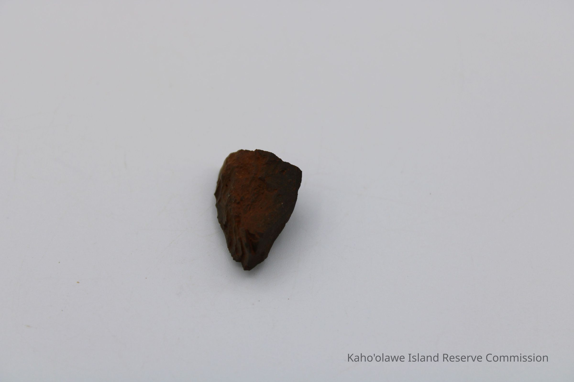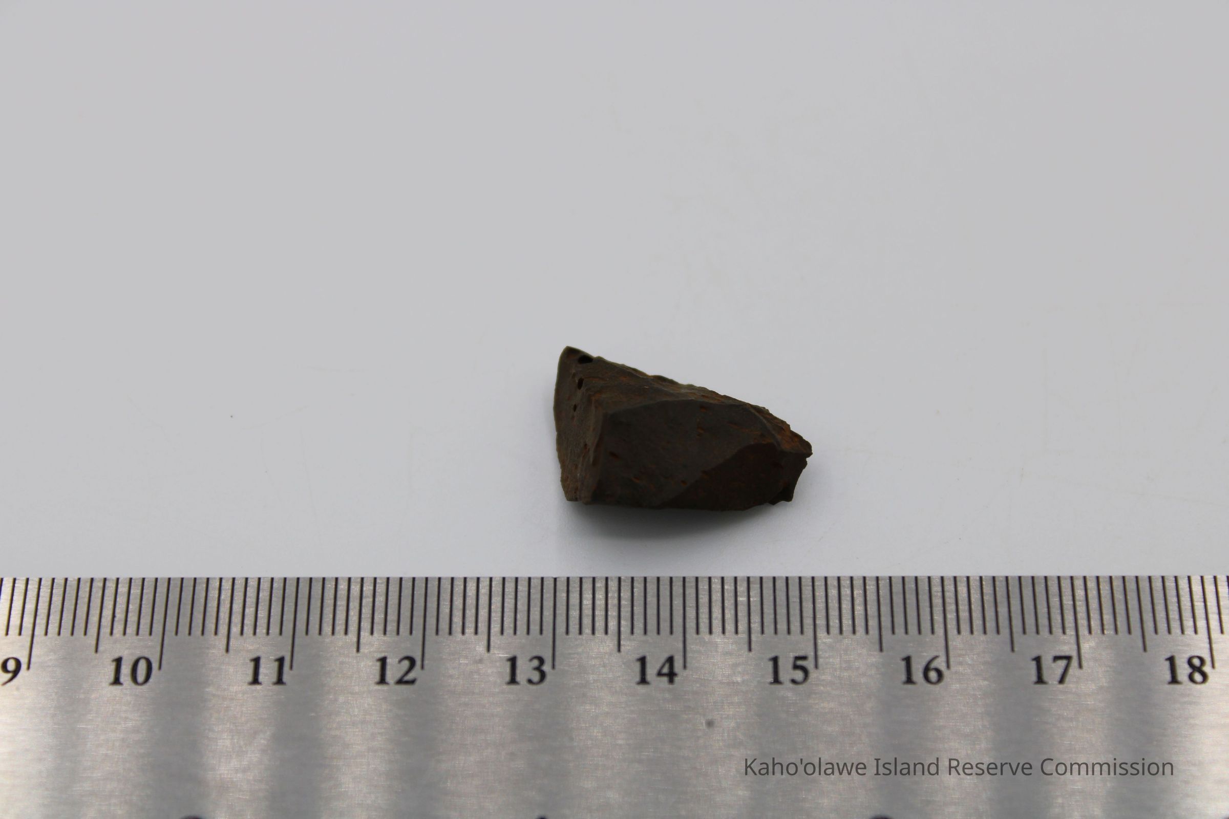 Small triangular core of basaltic glass with sharp tip; collected at 4:30 pm with unknown soil temperature per Sample Collection Record, [Hawai'i] State Historic Preservation Office.Collection
