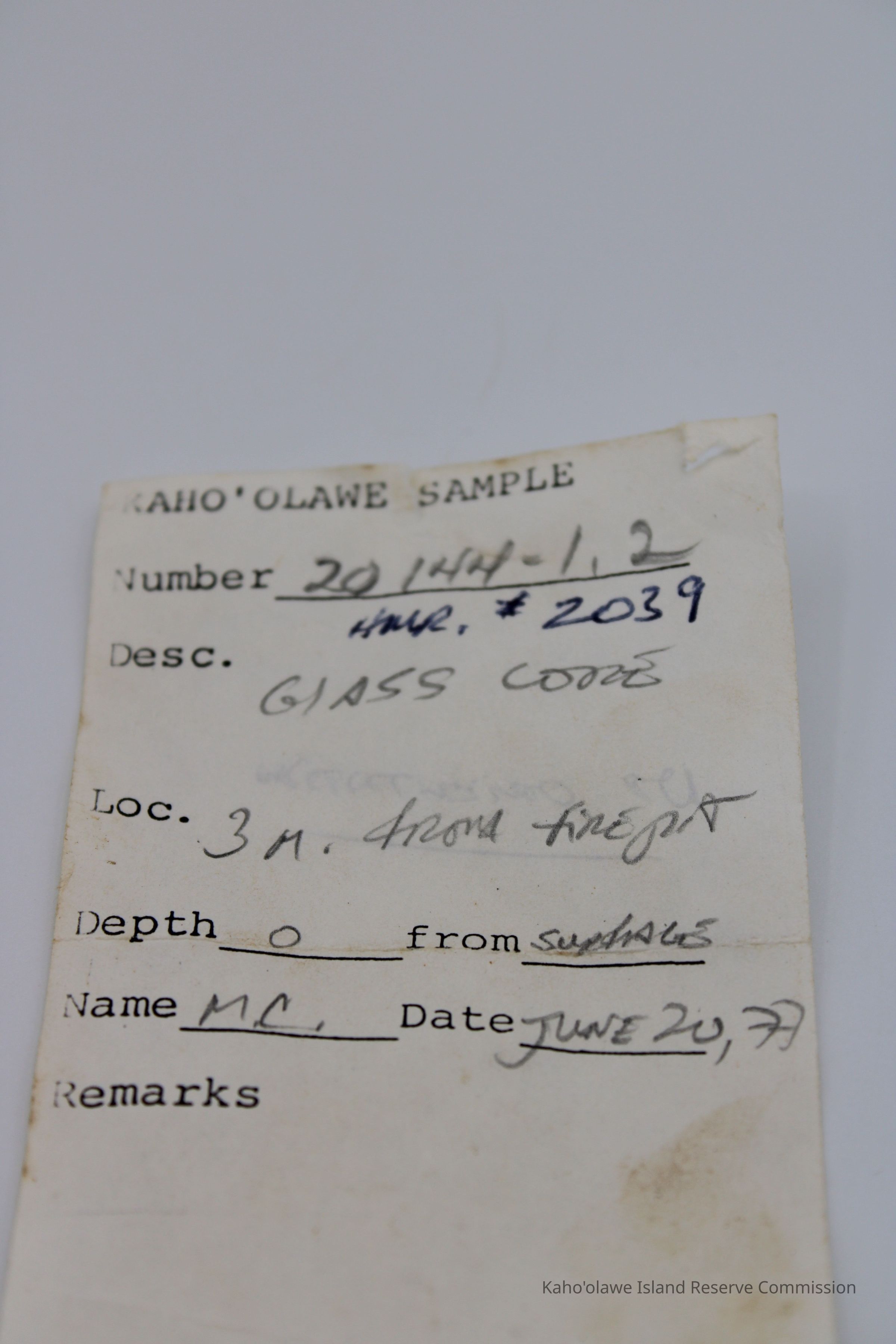 Task Order 15; Task Order 7, Kaho 1 for Site 144; Sample Collection Record (Box 54)