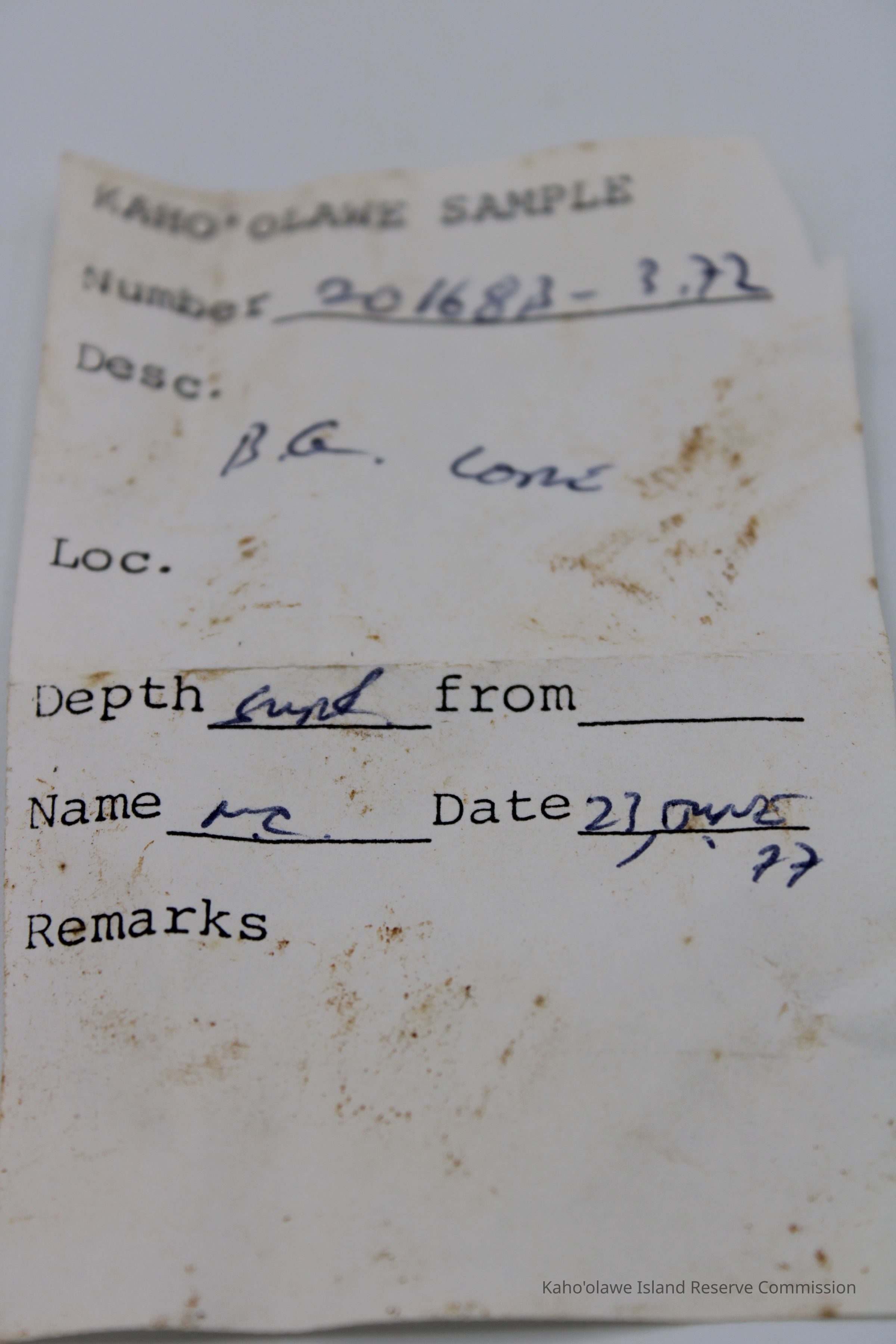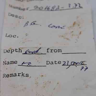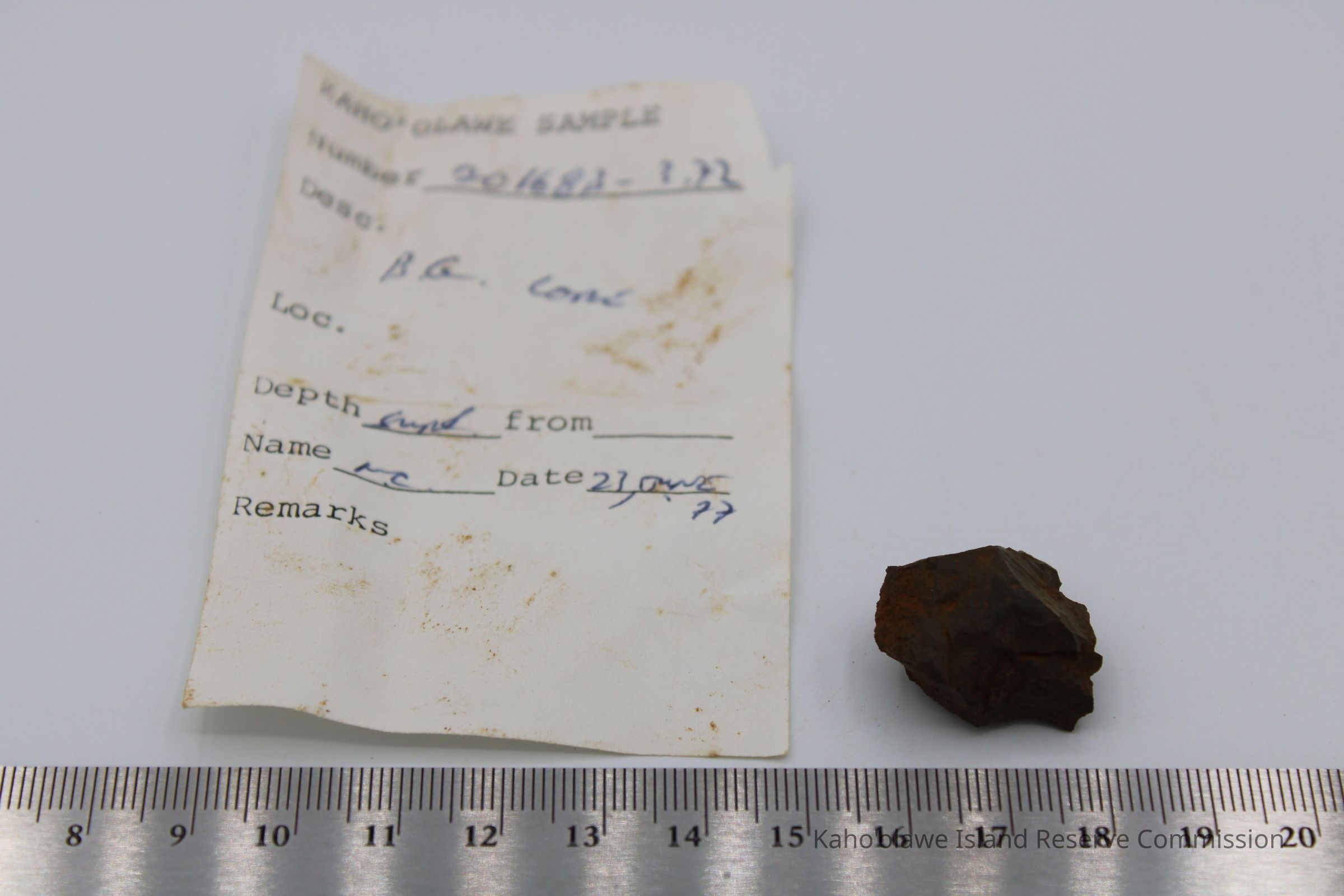 Small; irregularly shaped core of basaltic glass.Collection