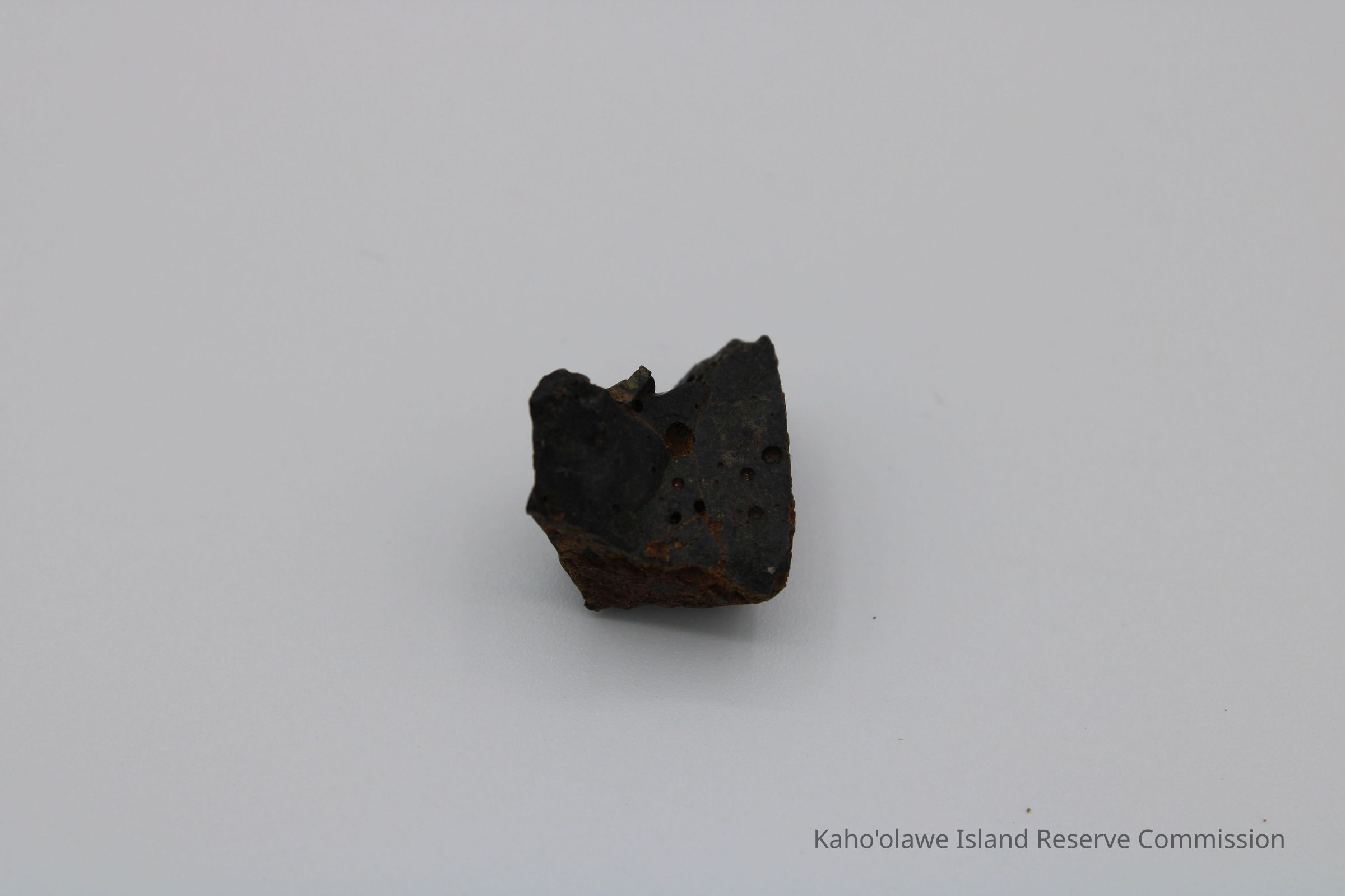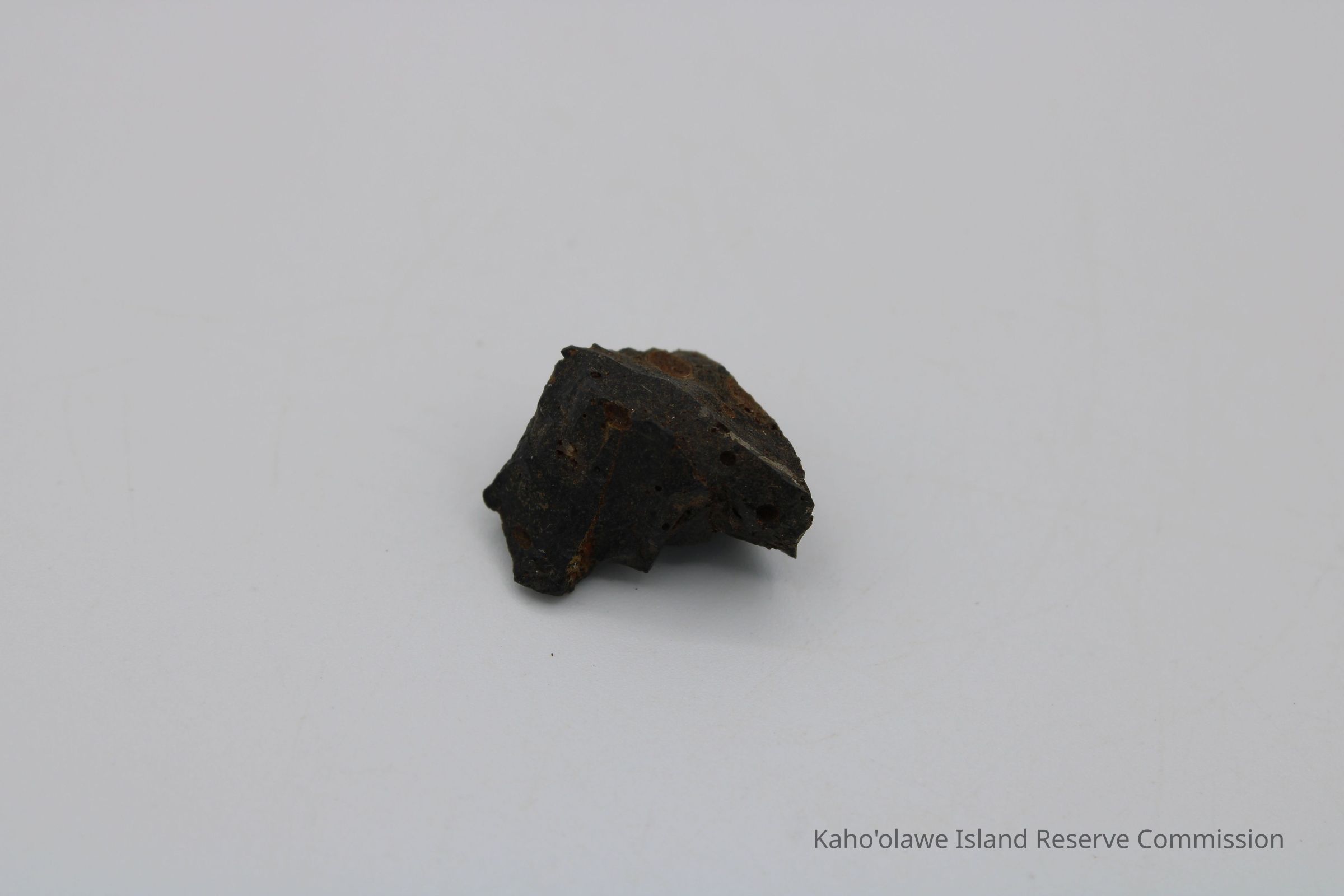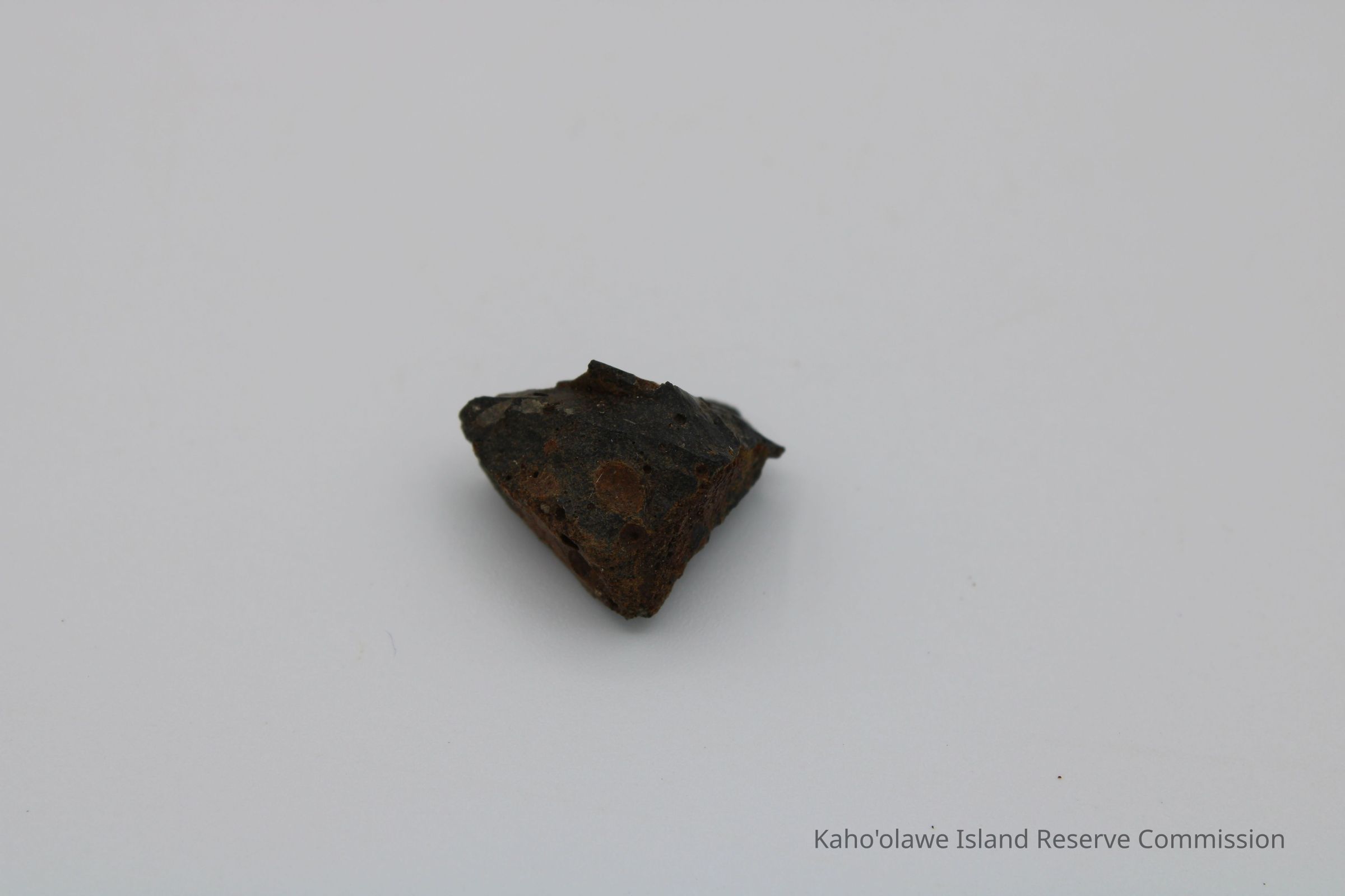 Small, triangular-shaped core of basaltic glass; collected at D.H.P.10:00 am=25.3 C per Sample Collection Record, [Hawai'i] State Historic Preservation Office.Collection