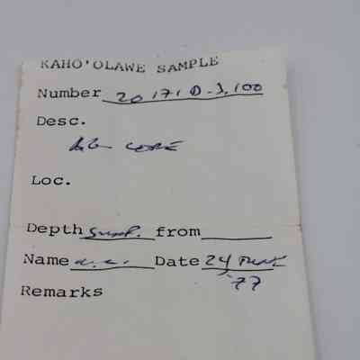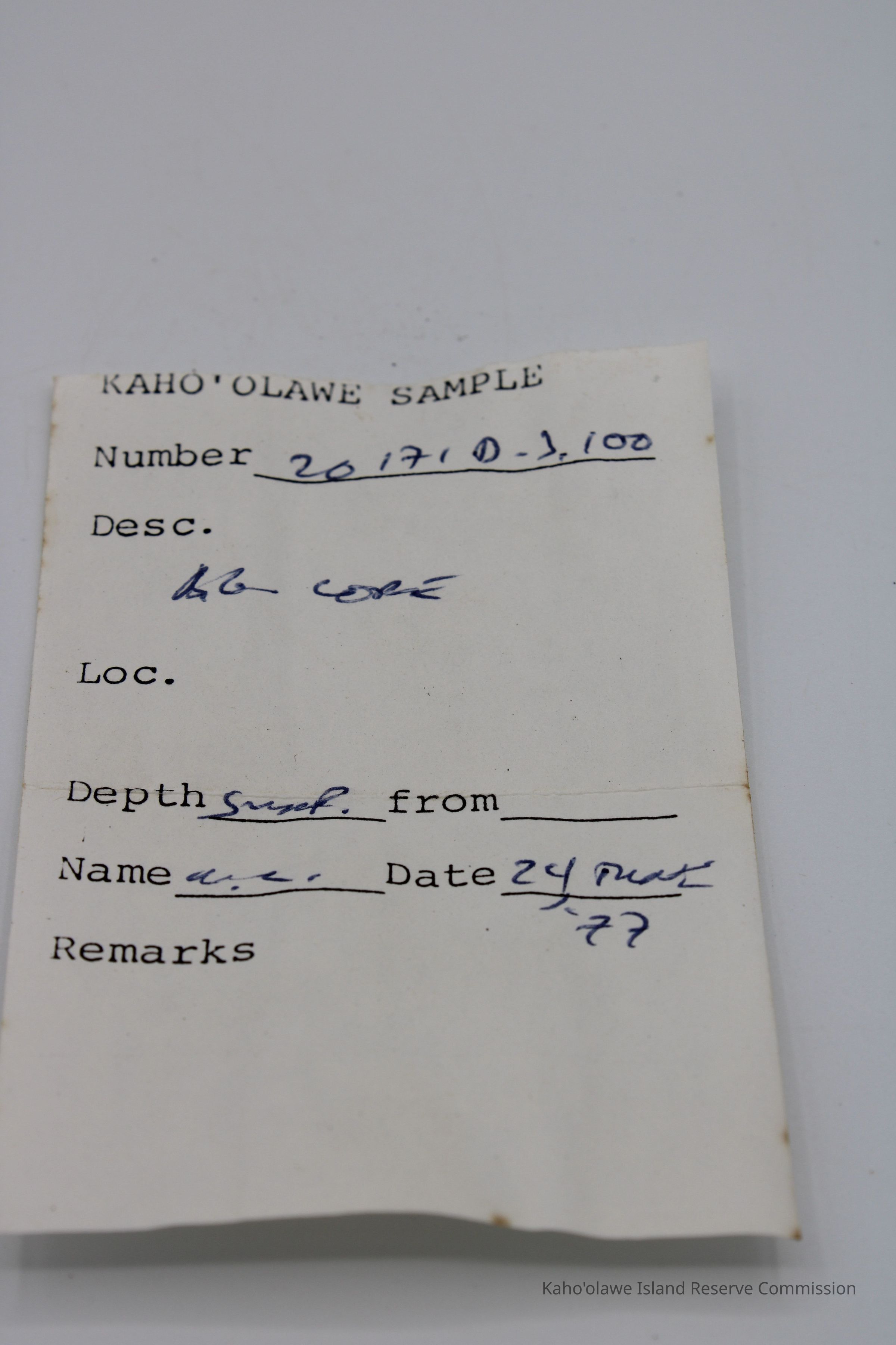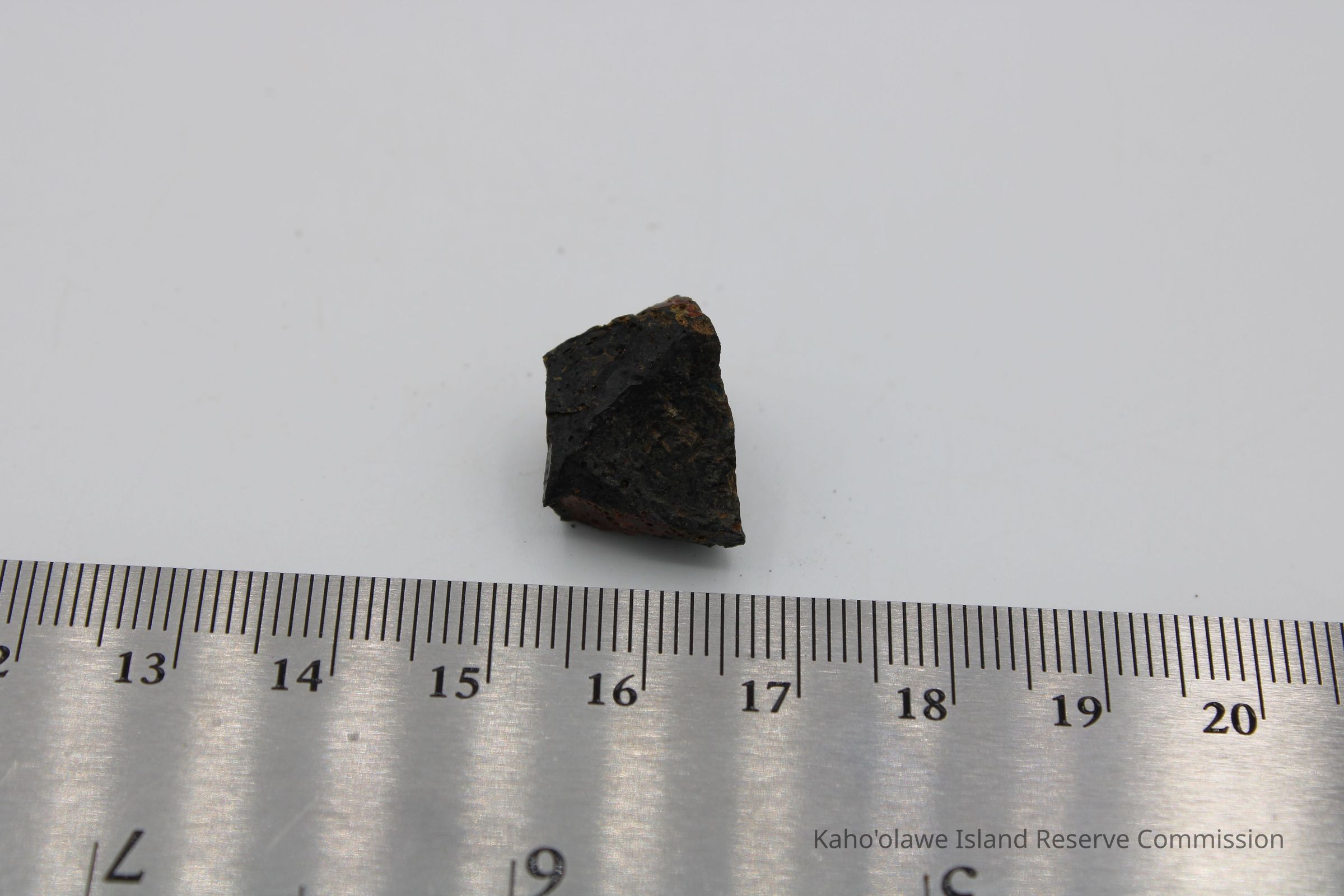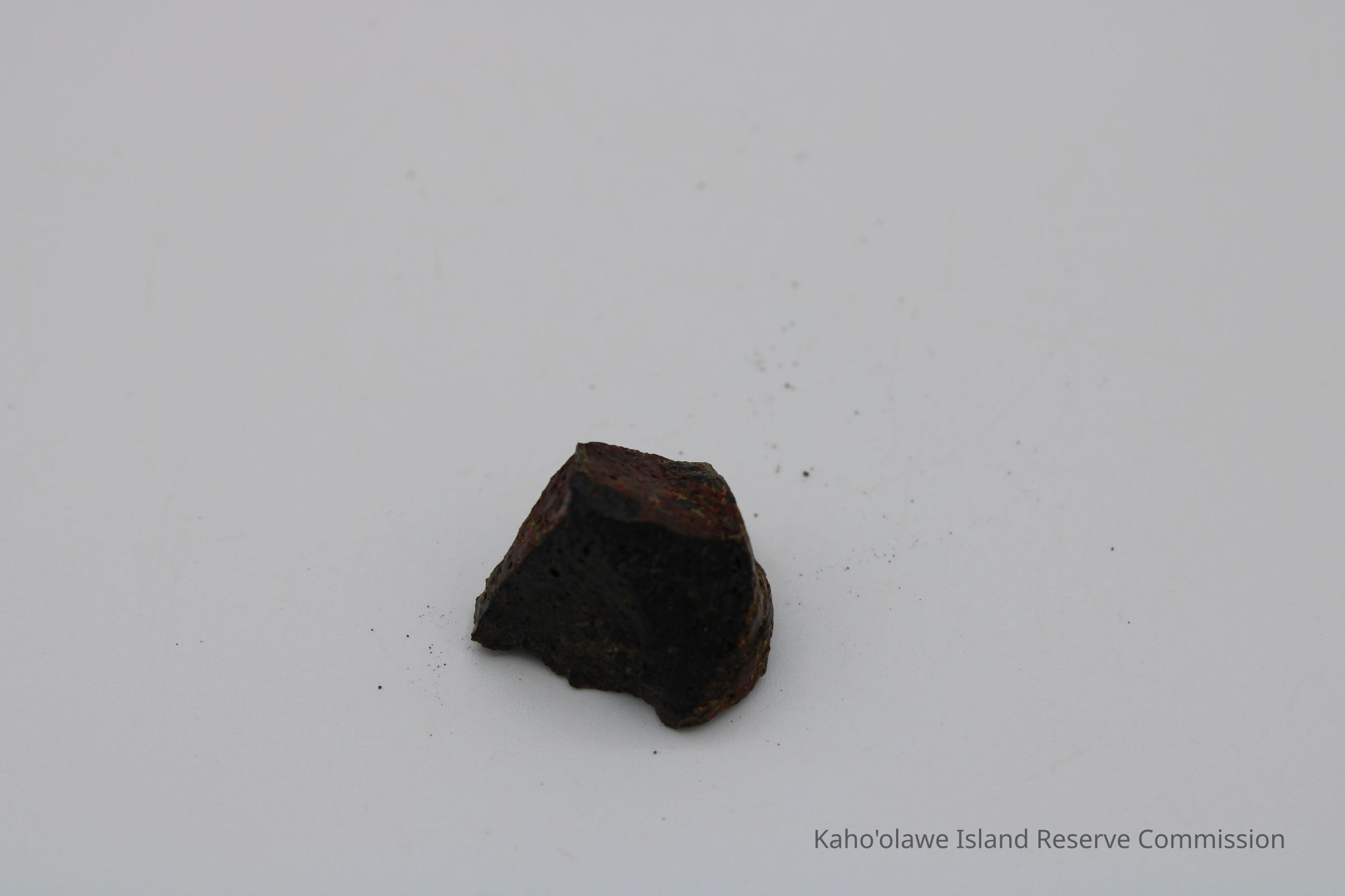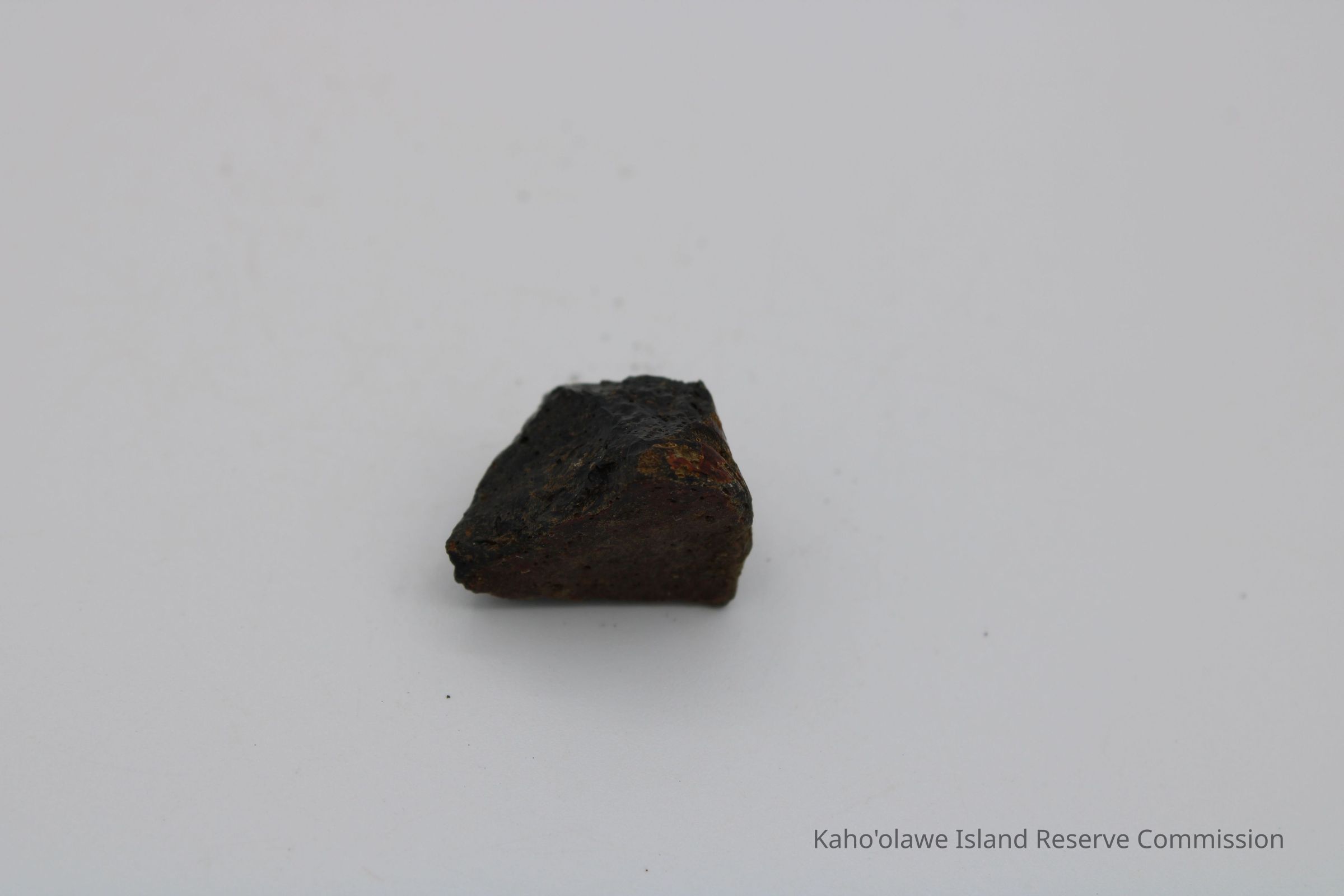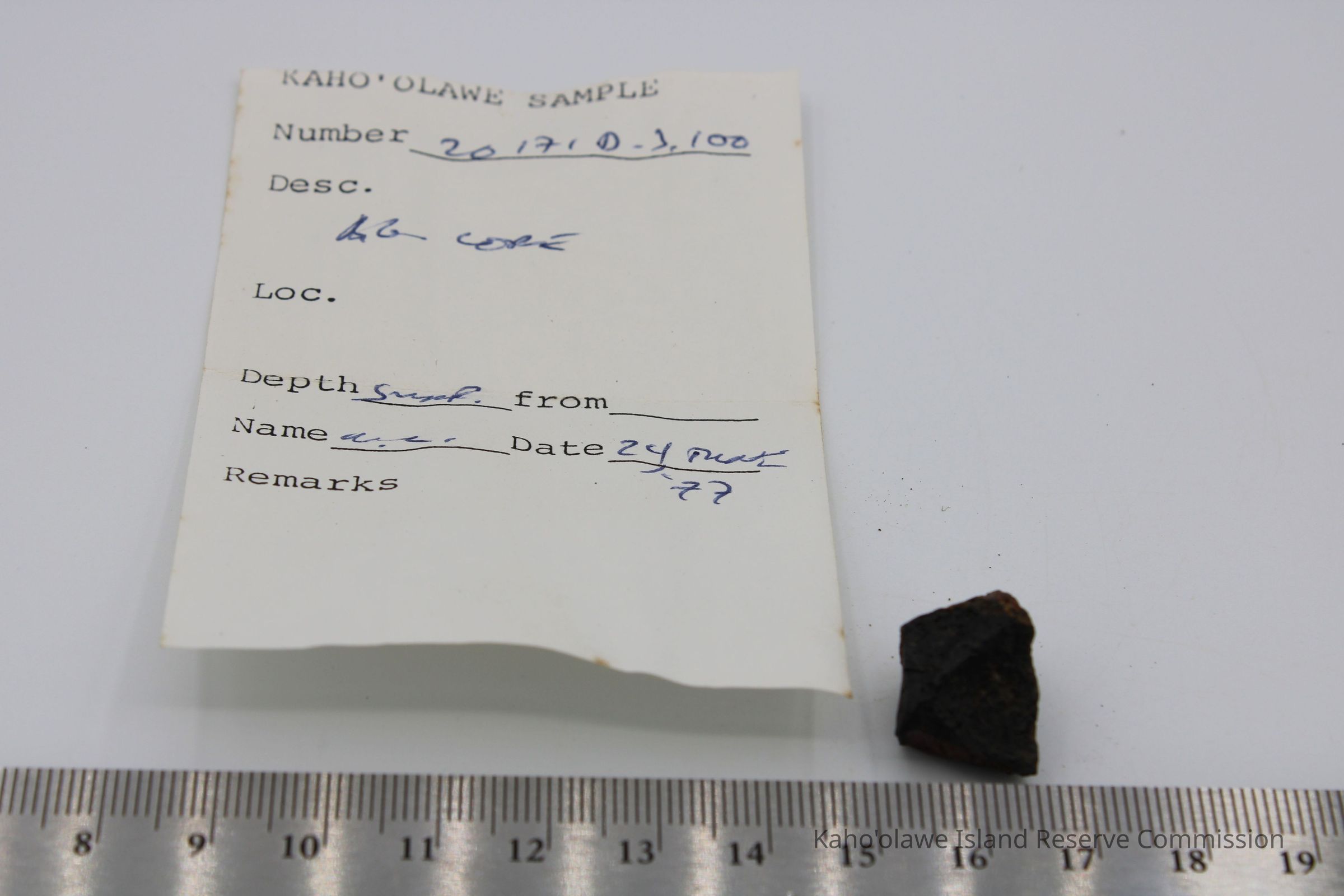 Small, irregularly-shaped core of basaltic glass. May have been collected at D.H.P. 1045 am=25.4 C per Sample Collection Record, [Hawai'i] State Historic Preservation Office.Collection