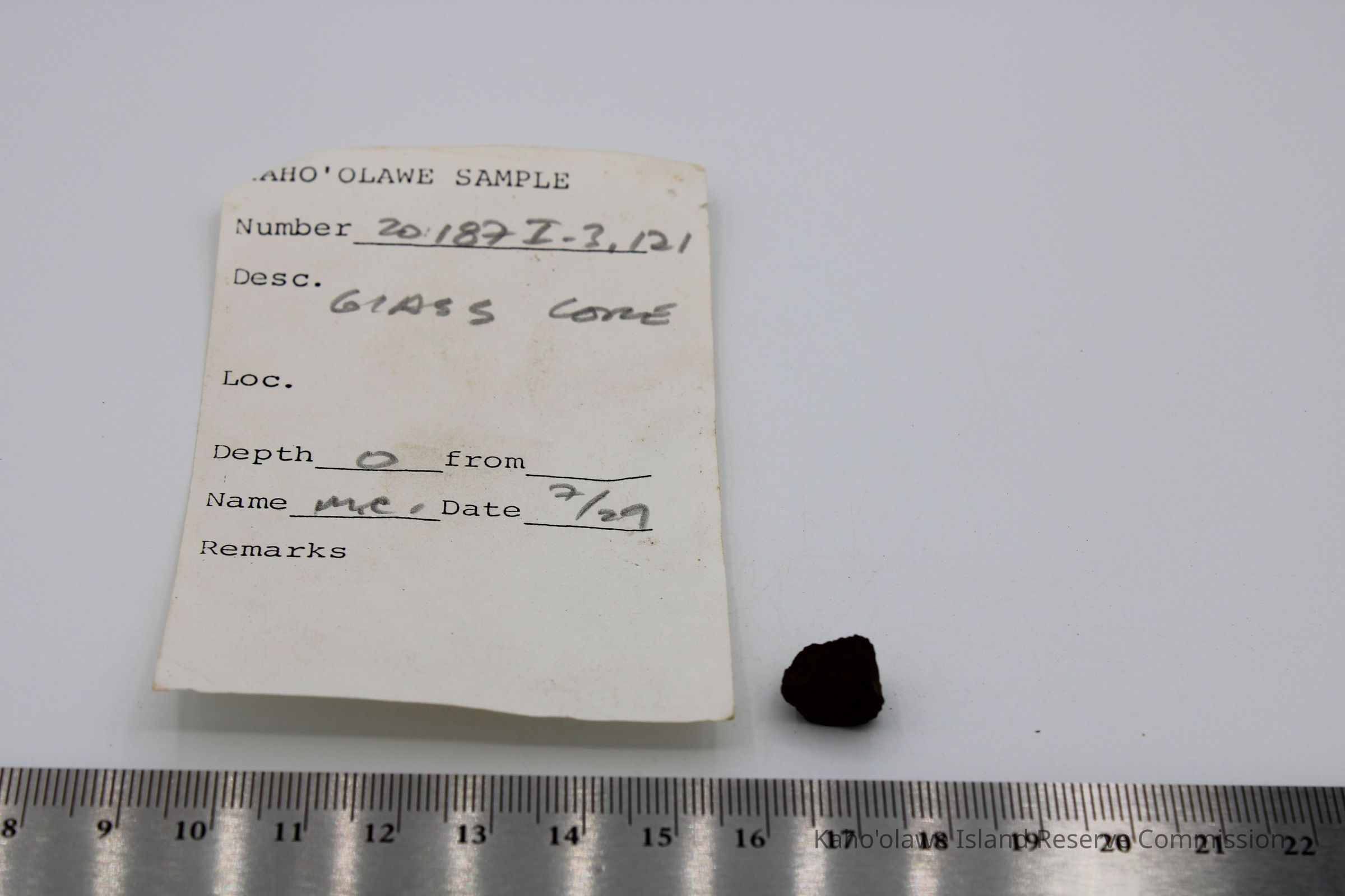 Tiny, roughly wedge-shaped core of basaltic glass.Collection